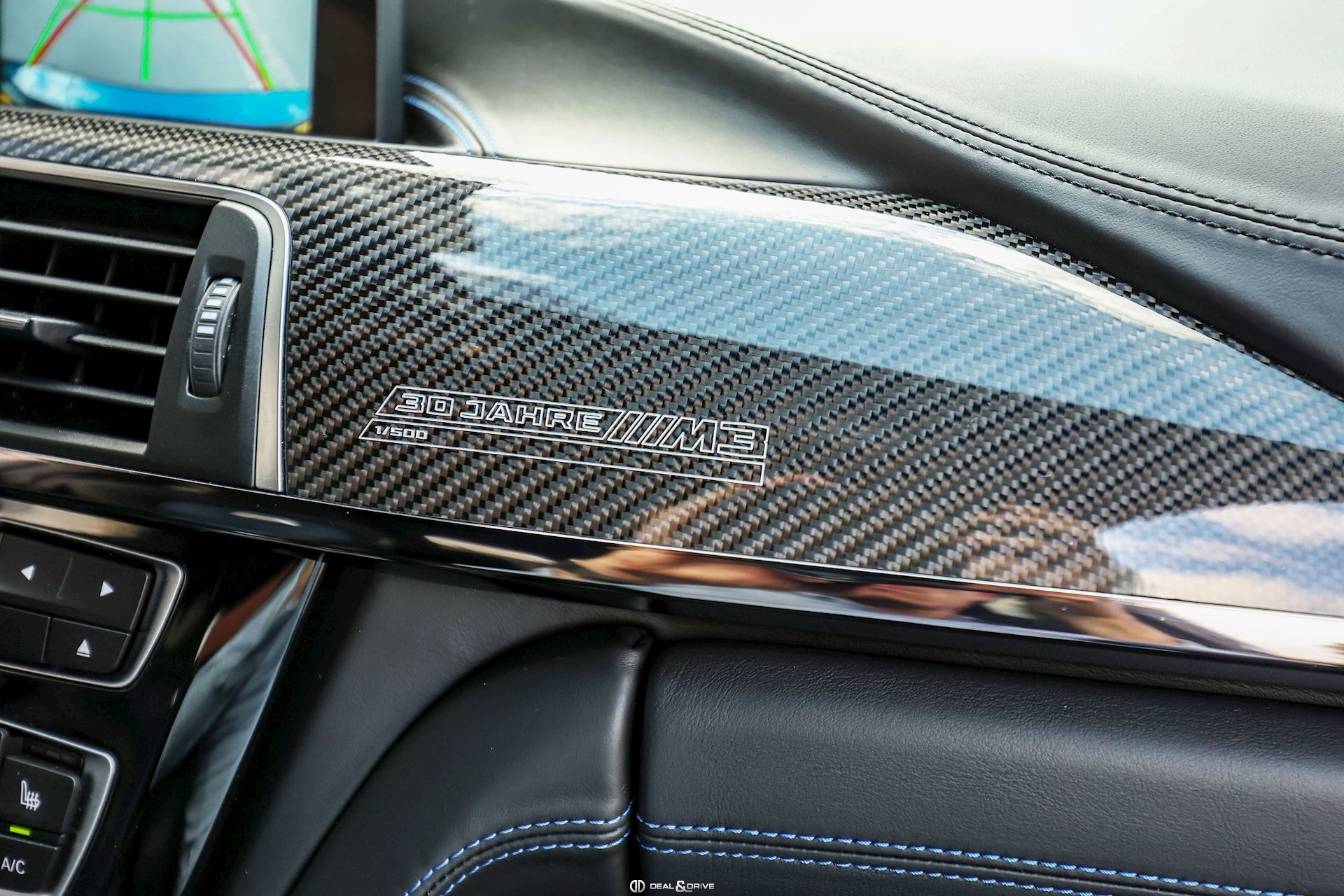 INTÉRIEUR Inserts en Carbone Sellerie en cuir Individual Merino Sièges avant Sport M Sièges avant chauffants Ceintures de sécurité M Climatisation automatique 2 zones Plafonnier BMW Individual en Noir Volant en cuir M, multifonctions Tapis de sol Seuils de porte avec inscription 30 Jahre Edition Inscription 30 Jahre Edition brodé sur les sièges
