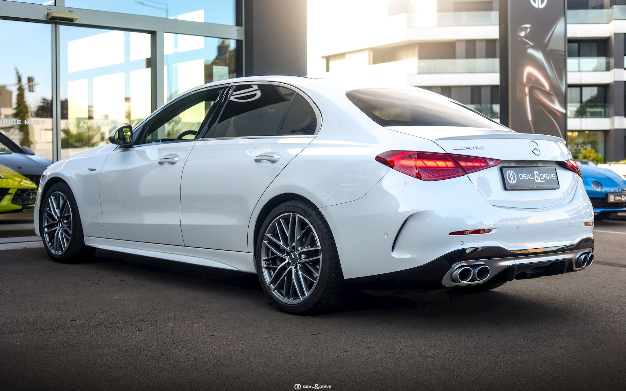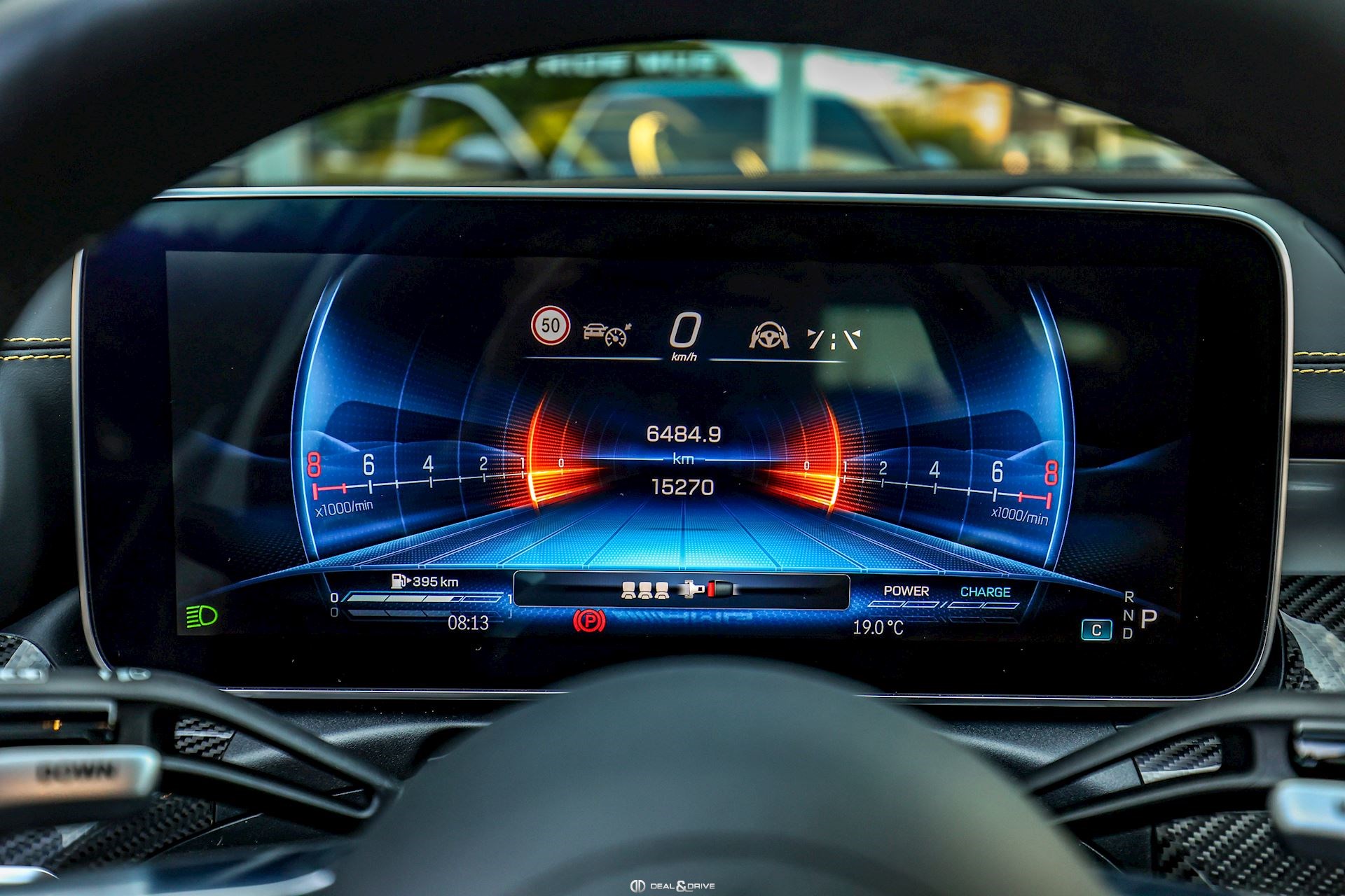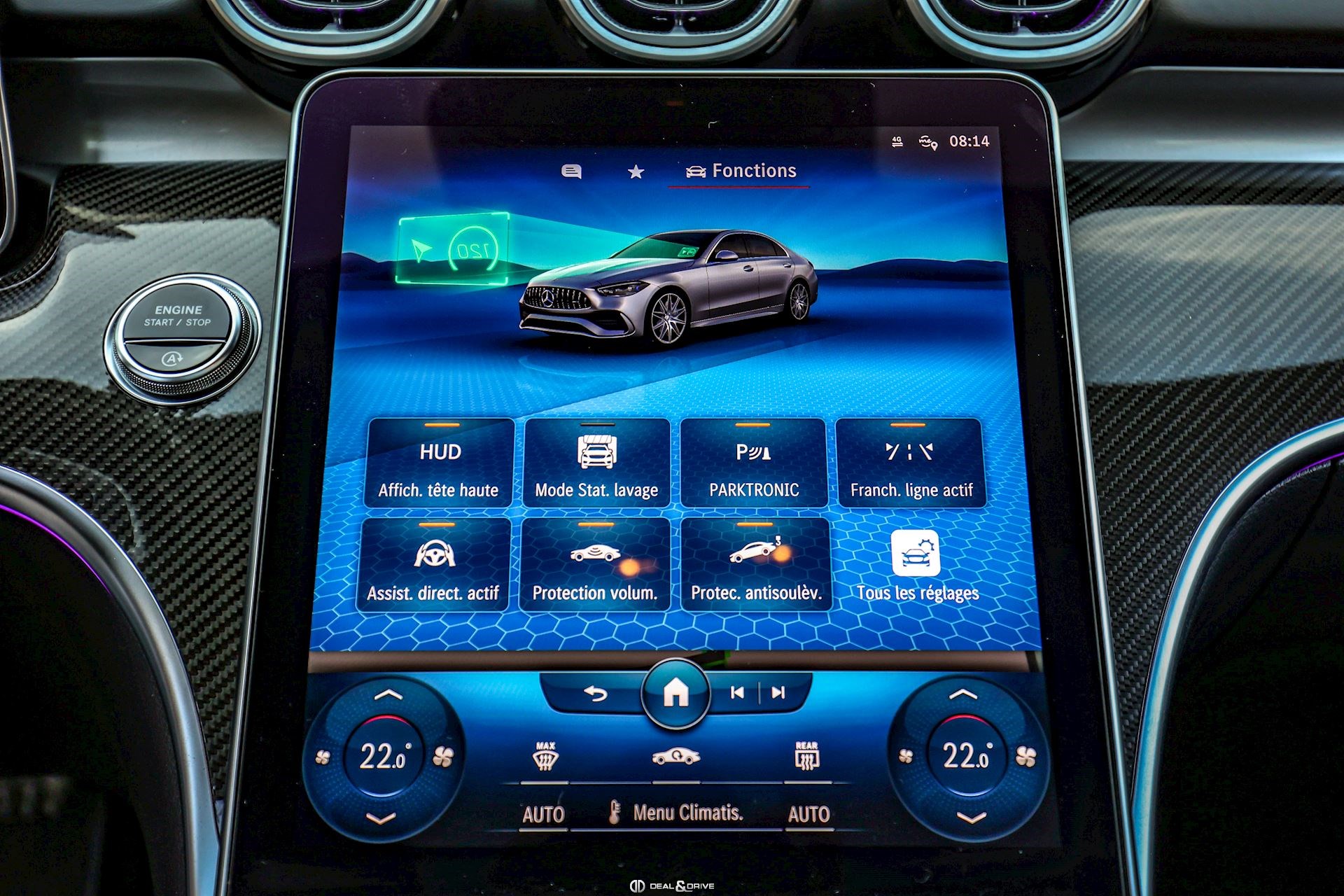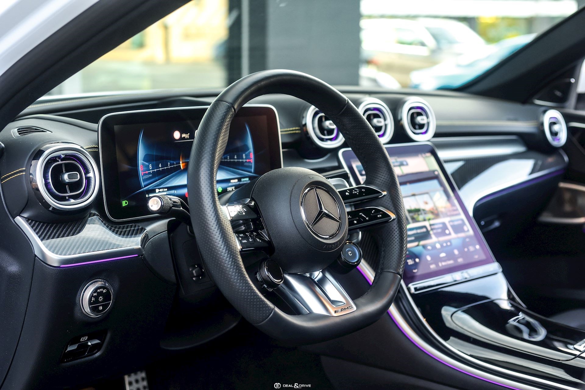 INTÉRIEUR Inserts en Carbone AMG Sellerie en cuir Nappa Noir Surpiqûres jaunes Sièges avant Sport Sièges avant électriques Sièges avant avec fonction mémoire Sièges avant chauffants Sièges avant ventilés Appuie-lombaires électriques Plafonnier Noir Planche de bord au simili-cuir Artico Seuils de porte en Aluminium, éclairés Tapis de sol AMG Pédalier en Acier inox Design Sport Volant AMG Performance en cuir, Nappa, multifonctions Volant réglable électriquement Climatisation automatique 4 zones