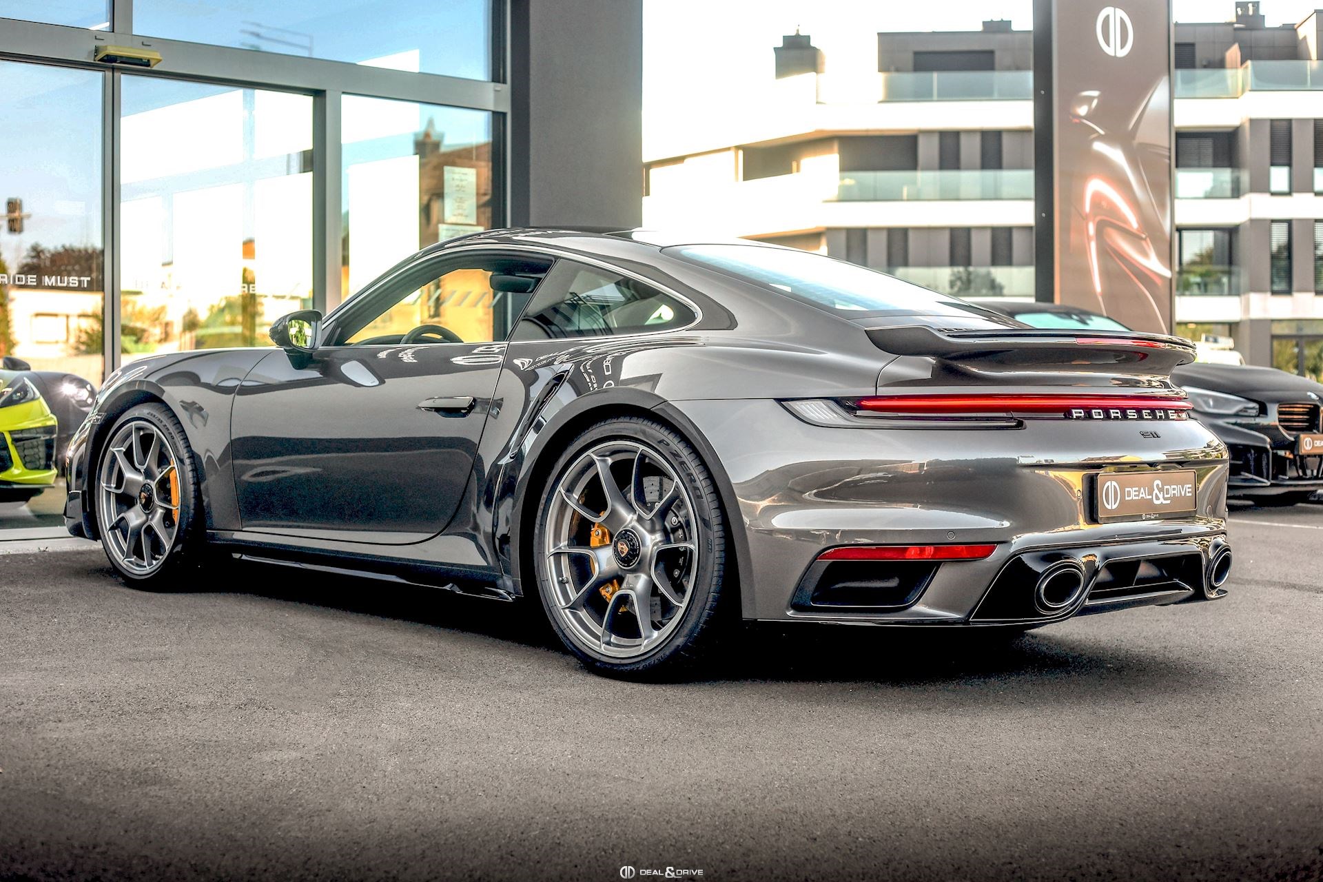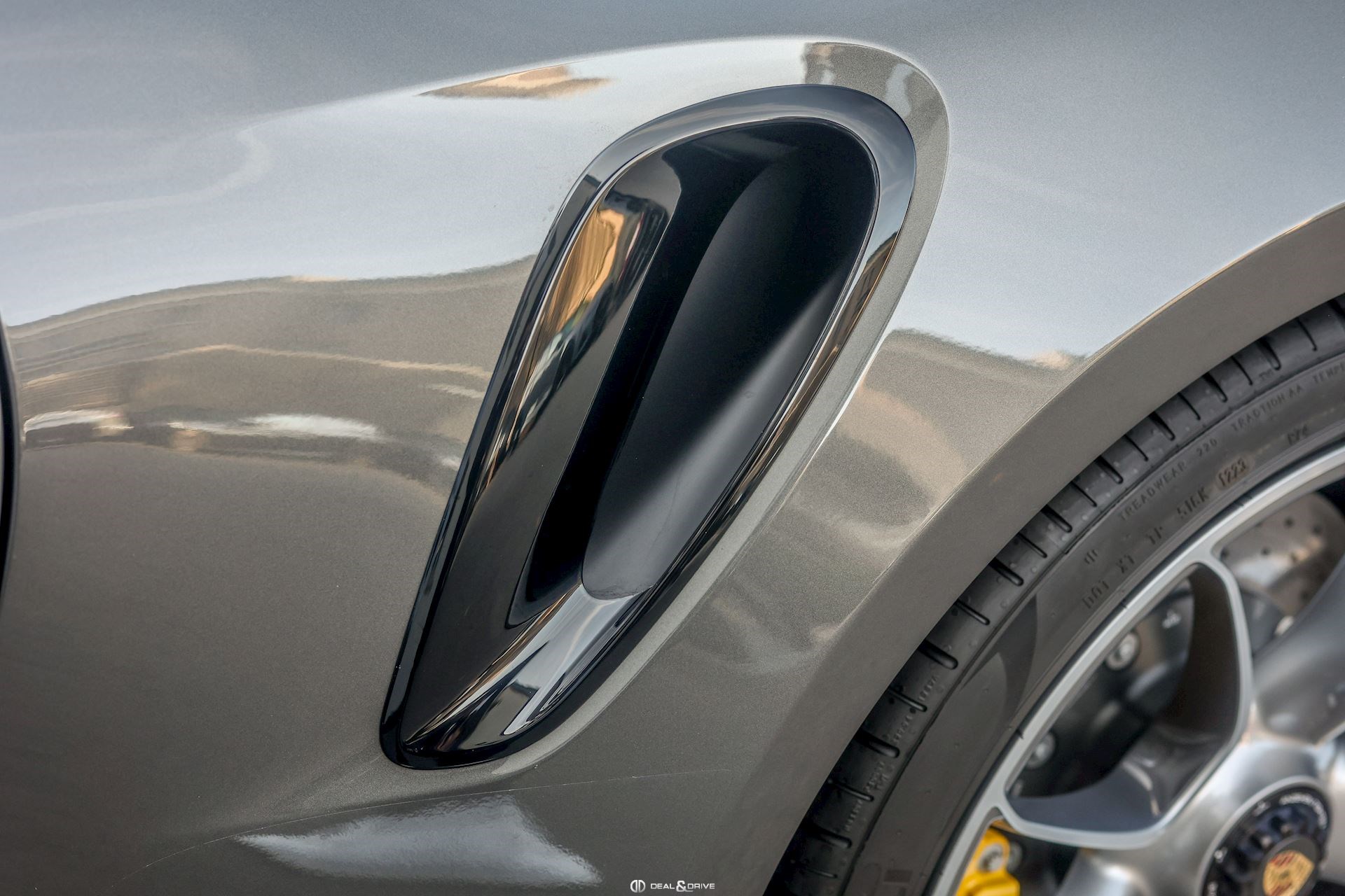 Pare-brise teinté, dégradé Rétroviseurs extérieurs électriques Rétroviseurs extérieurs rabattables électriquement Caches moyeux Porsche en couleur Étriers de frein en Jaune