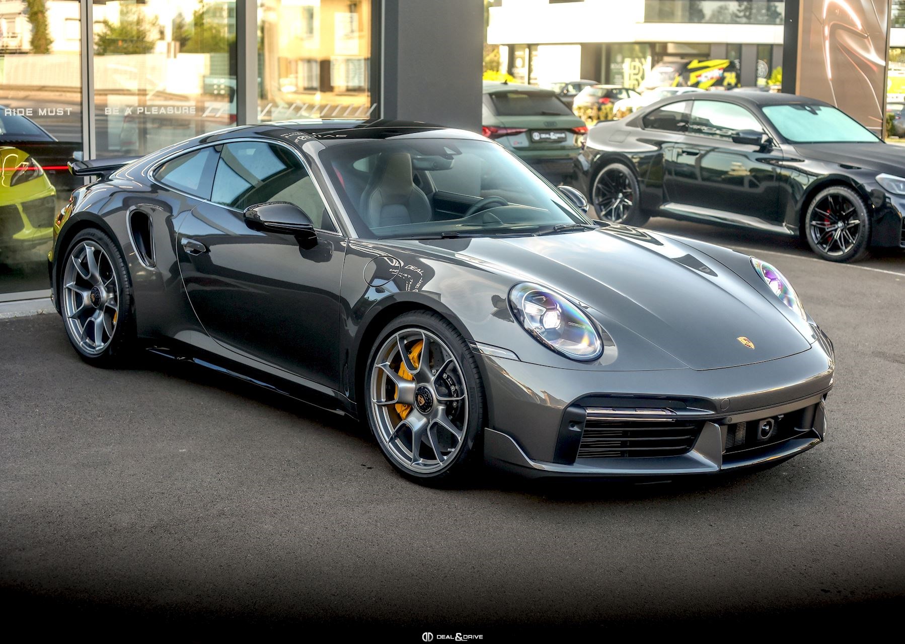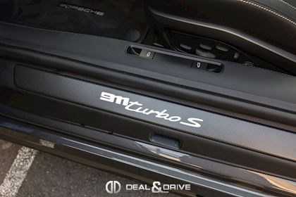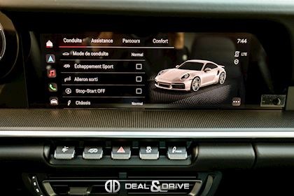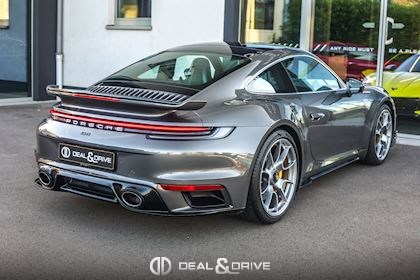 EXTÉRIEUR 3FE Toit ouvrant panoramique 6FQ Partie supérieure des rétroviseurs en Carbone - Porsche Exclusive Manufaktur QJ2 Contours des vitres latérales en Aluminium VK2 Entrées d’air latérales peintes en Noir brillant - Porsche Exclusive Manufaktur 2RB Monogramme arrière 911 peint en Noir brillant - Porsche Exclusive Manufaktur 2W6 Bouchon de réservoir Exclusive Design - Porsche Exclusive Manufaktur 3S4 Pré-équipement pour système de transport de toit 46U Jantes alliage léger 20’’ / 21’’ 911 Turbo S Exclusive Design - Porsche Exclusive Manufaktur