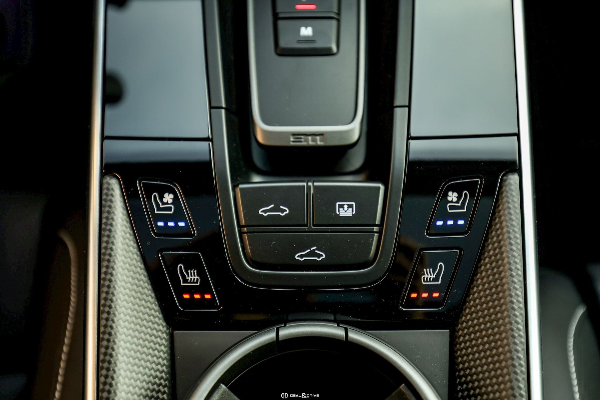 INTÉRIEUR Q1J Sièges Sport Plus adaptatifs, 18 voies avec pack mémoire pour le conducteur 4A3 Sièges avant chauffants 4D3 Sièges avant ventilés 8LU Chronographe Porsche Design - Porsche Exclusive Manufaktur FZ1 Ceintures de sécurité en Rouge Indien - Porsche Exclusive Manufaktur 7V3 Fond compte-tours en Blanc - Porsche Exclusive Manufaktur ATG Contour des seuils de porte en cuir Noir - Porsche Exclusive Manufaktur 7M8 Seuils de porte en Carbone satiné, illuminés avec désignation du modèle - Porsche Exclusive Manufaktur 2PF Volant Sport GT en cuir, chauffant avec éléments en Carbone - Porsche Exclusive Manufaktur