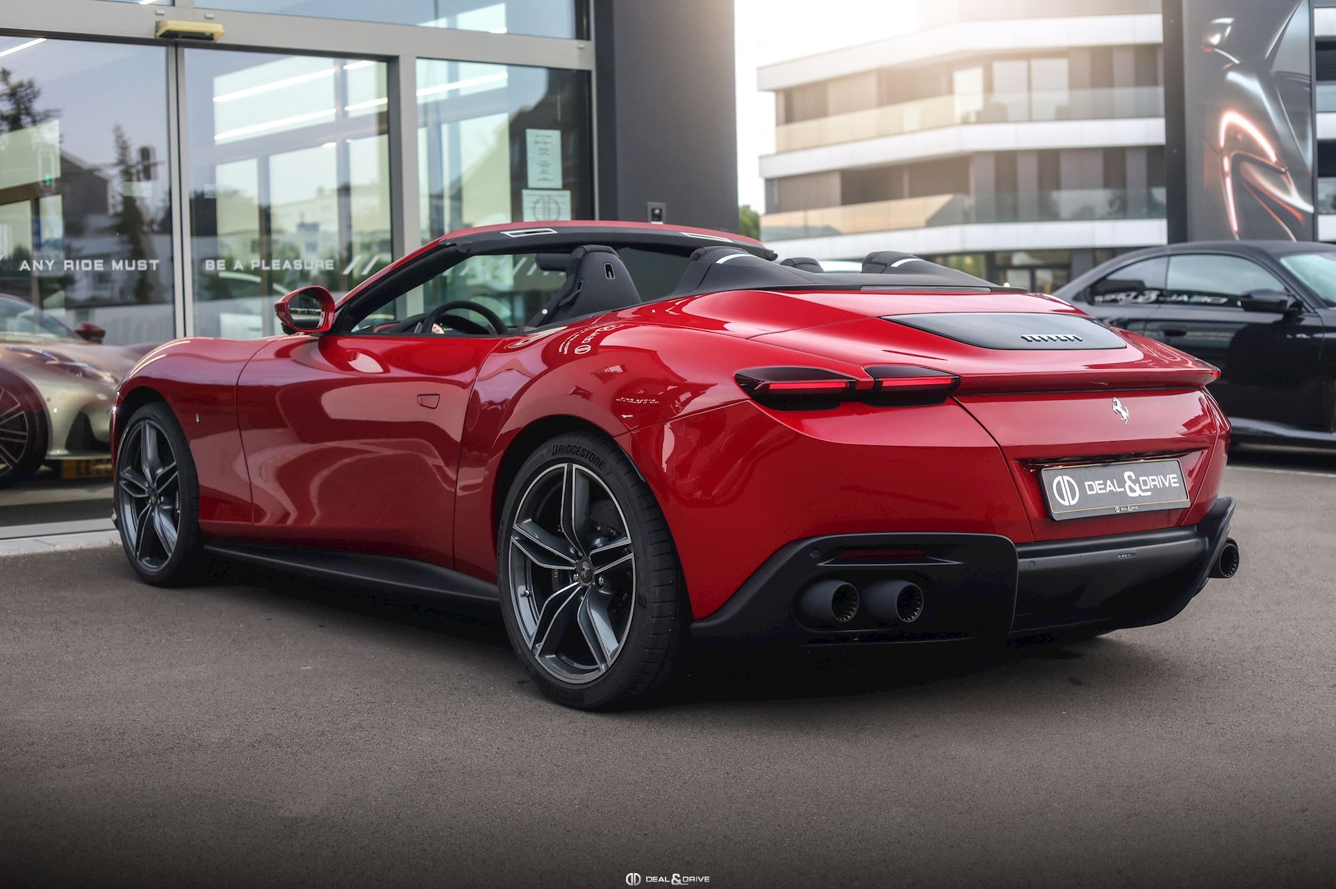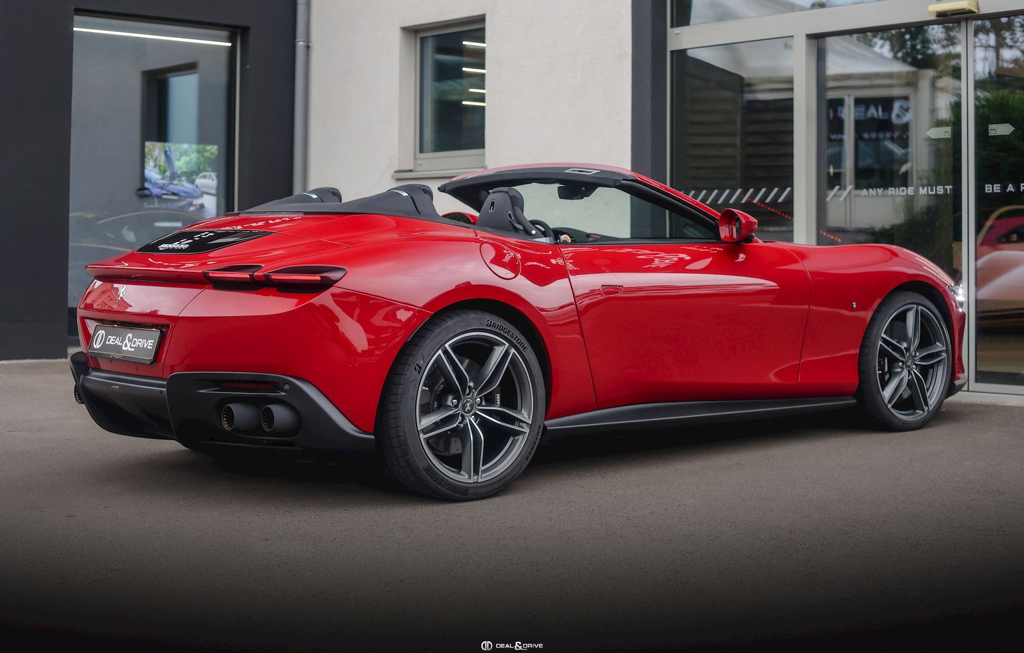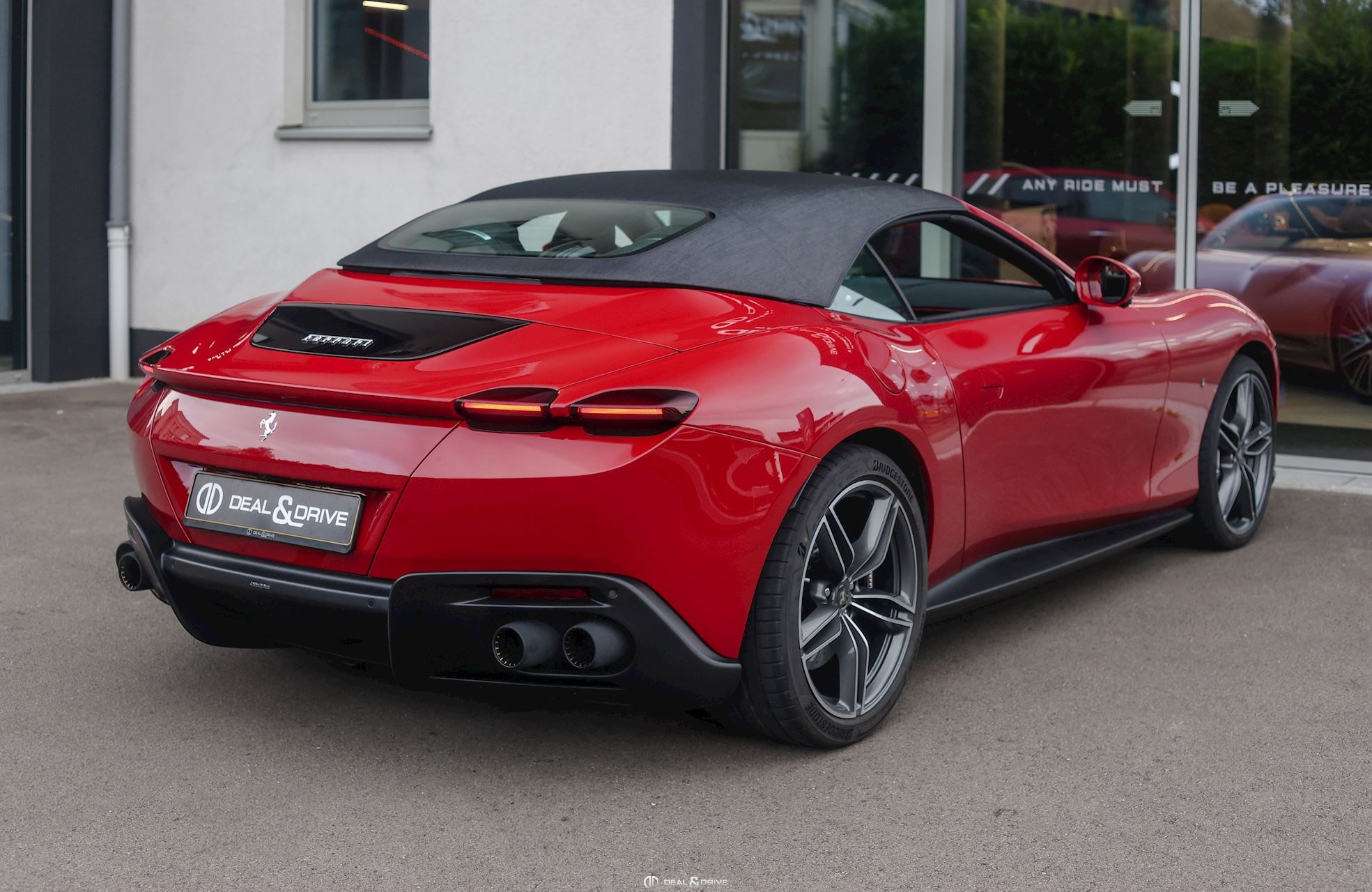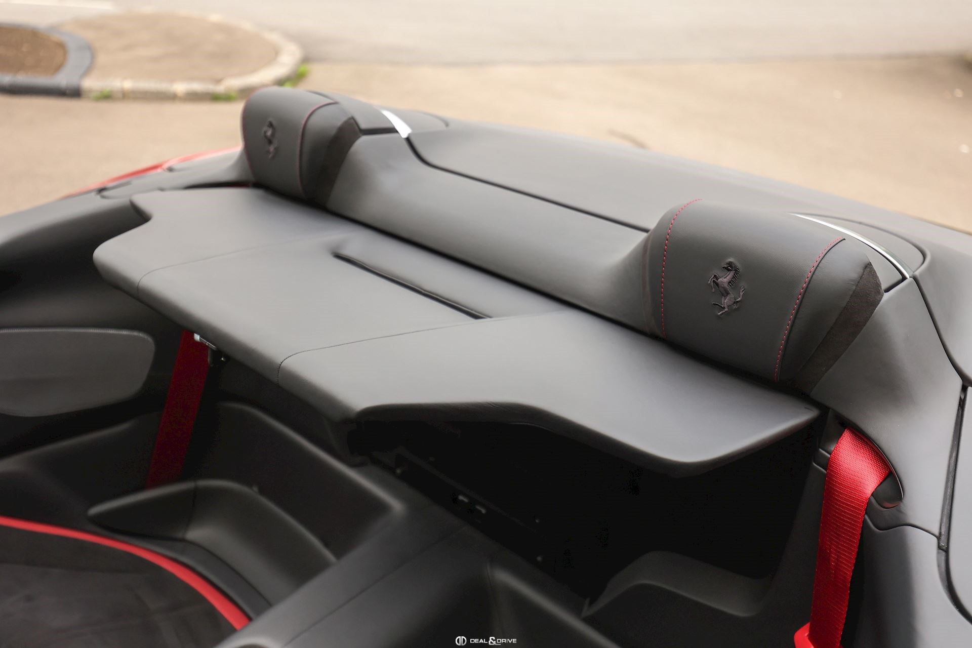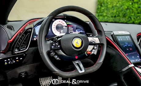 EXTÉRIEUR CALB Étriers de frein en Noir CPWC Caches moyeux Ferrari en Carbone EXAB Sorties d’échappement en Noir RSFD Jantes forgées 20’’ Diamond-Polished SOFT Capote en Noir Tailoring Fabric