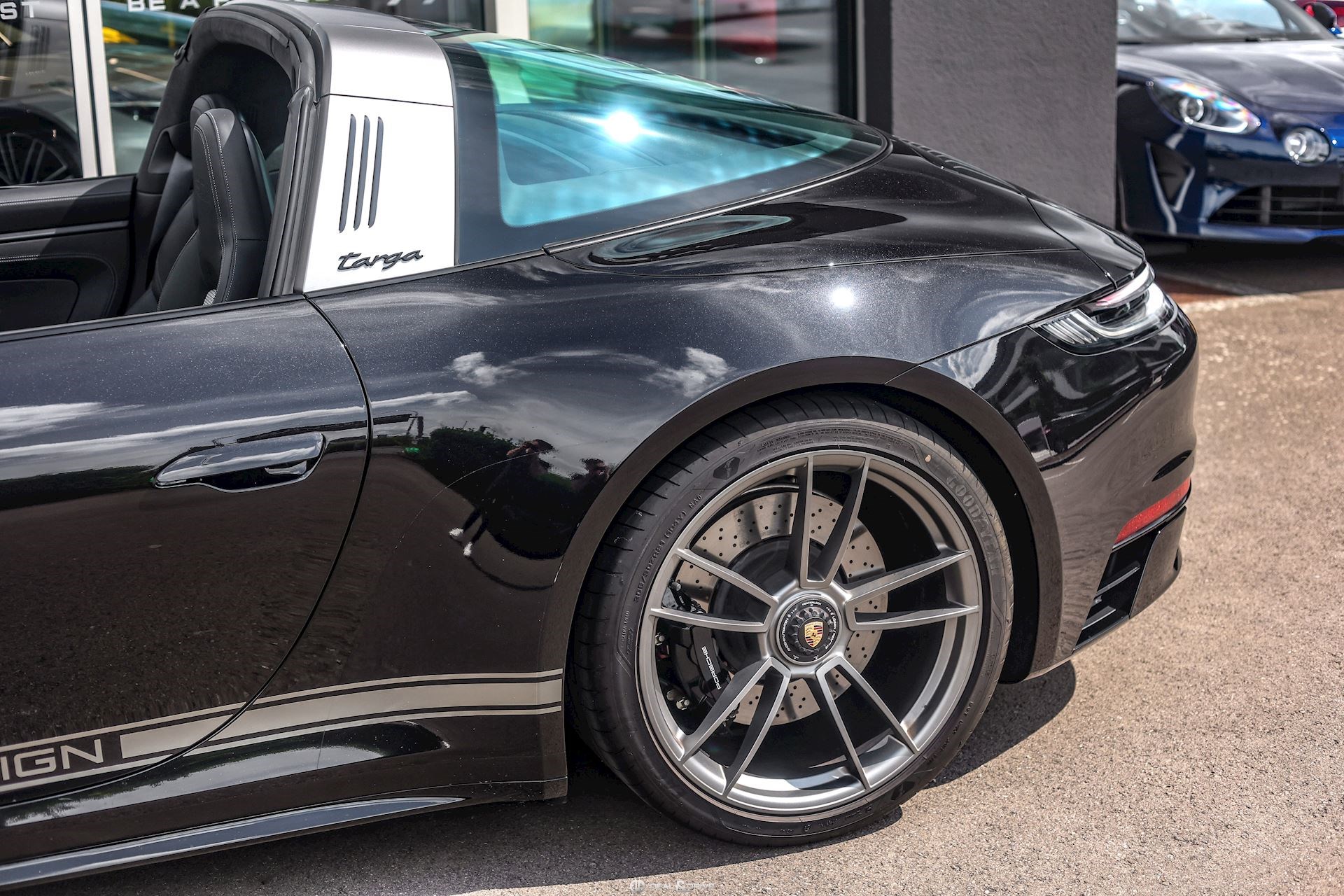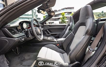 EXTÉRIEUR Capote en Noir Jantes alliage léger 20’’ / 21’’ Turbo S en Platinum Satiné Étriers de frein en Noir Caches moyeux Porsche en couleur Rétroviseurs extérieurs peints Rétroviseurs extérieurs électriques Rétroviseurs extérieurs rabattables électriquement Rétroviseurs extérieurs et intérieur avec fonction anti-éblouissement et capteur de pluie Bandes latérales décoratives Porsche Design