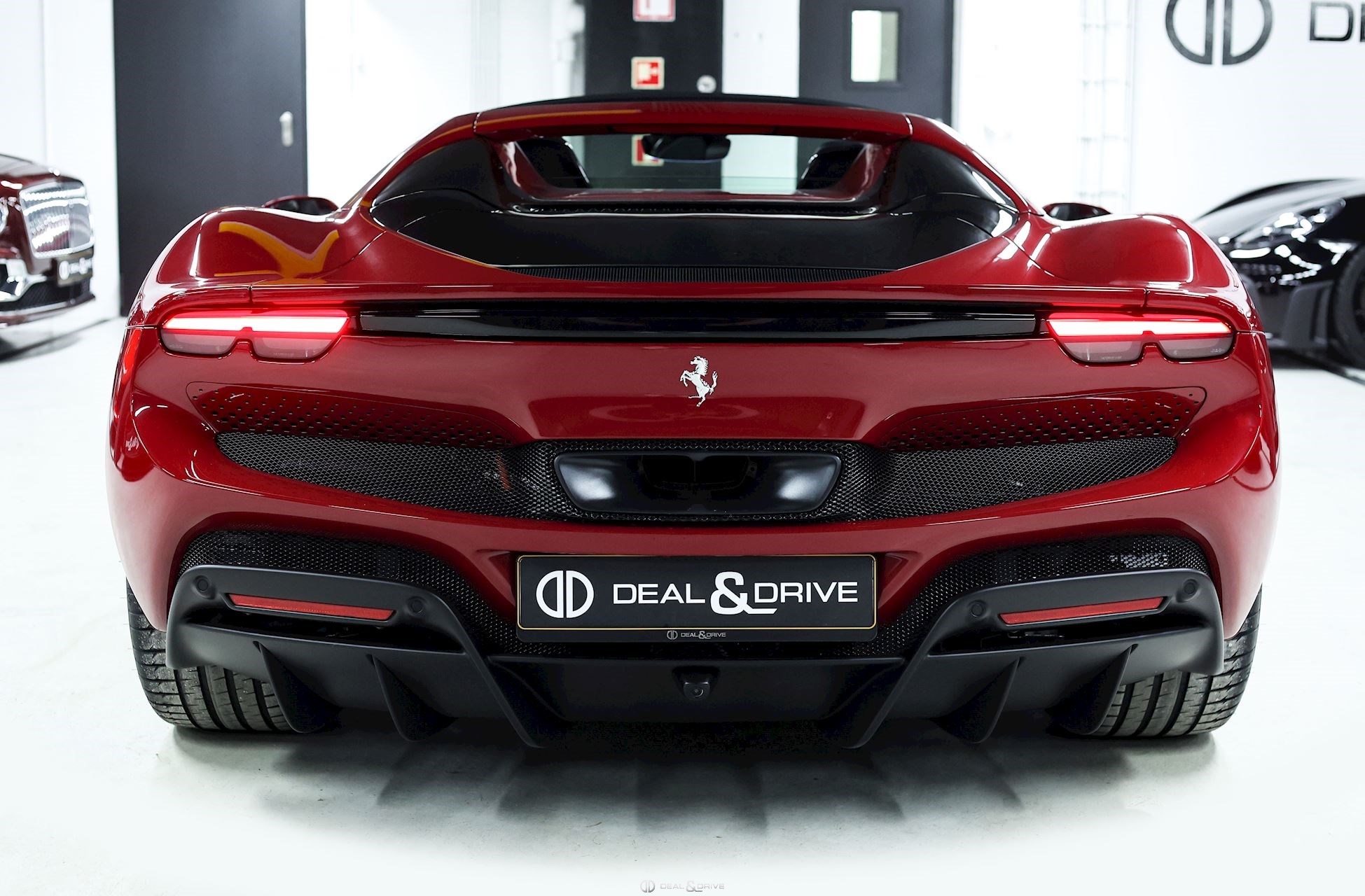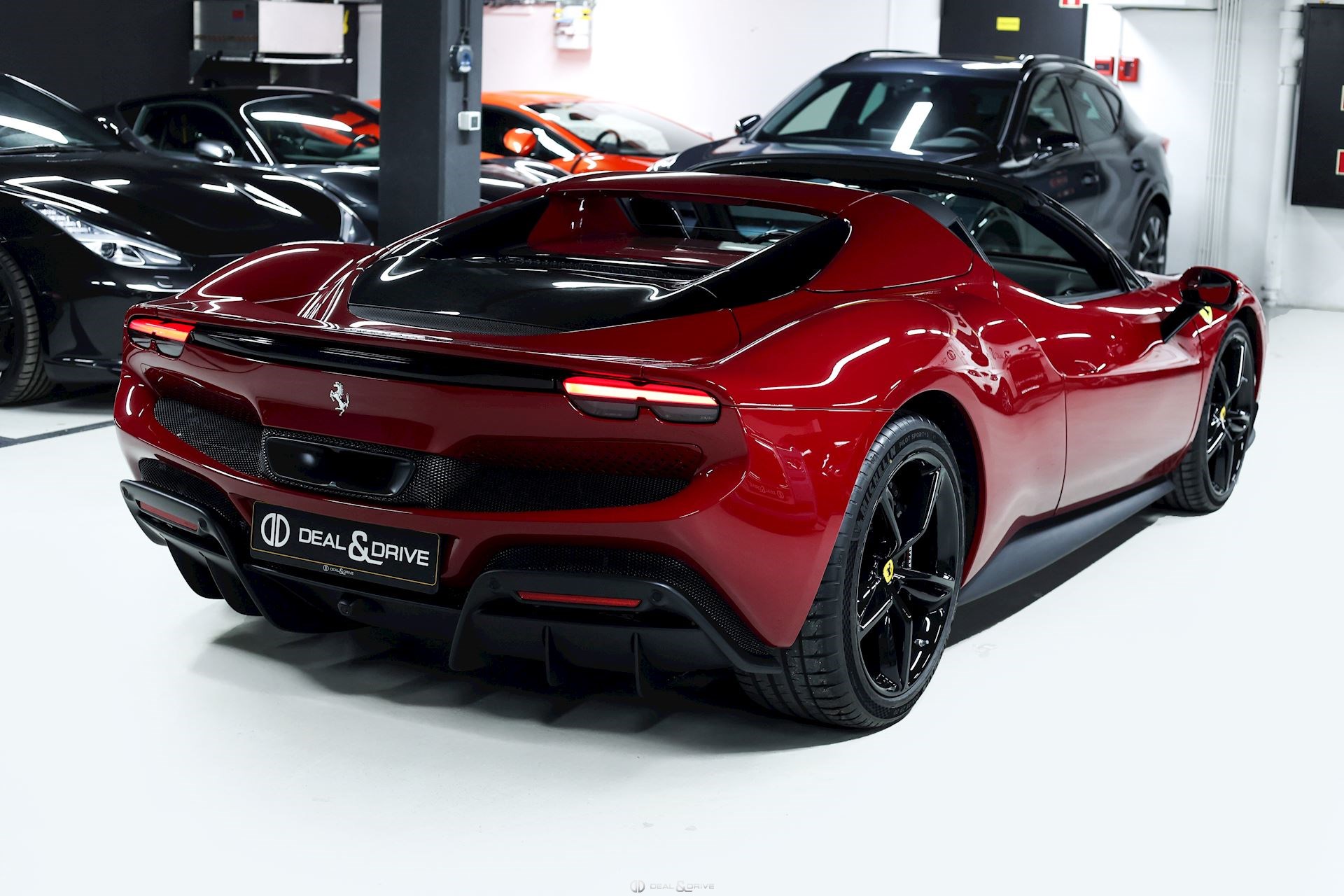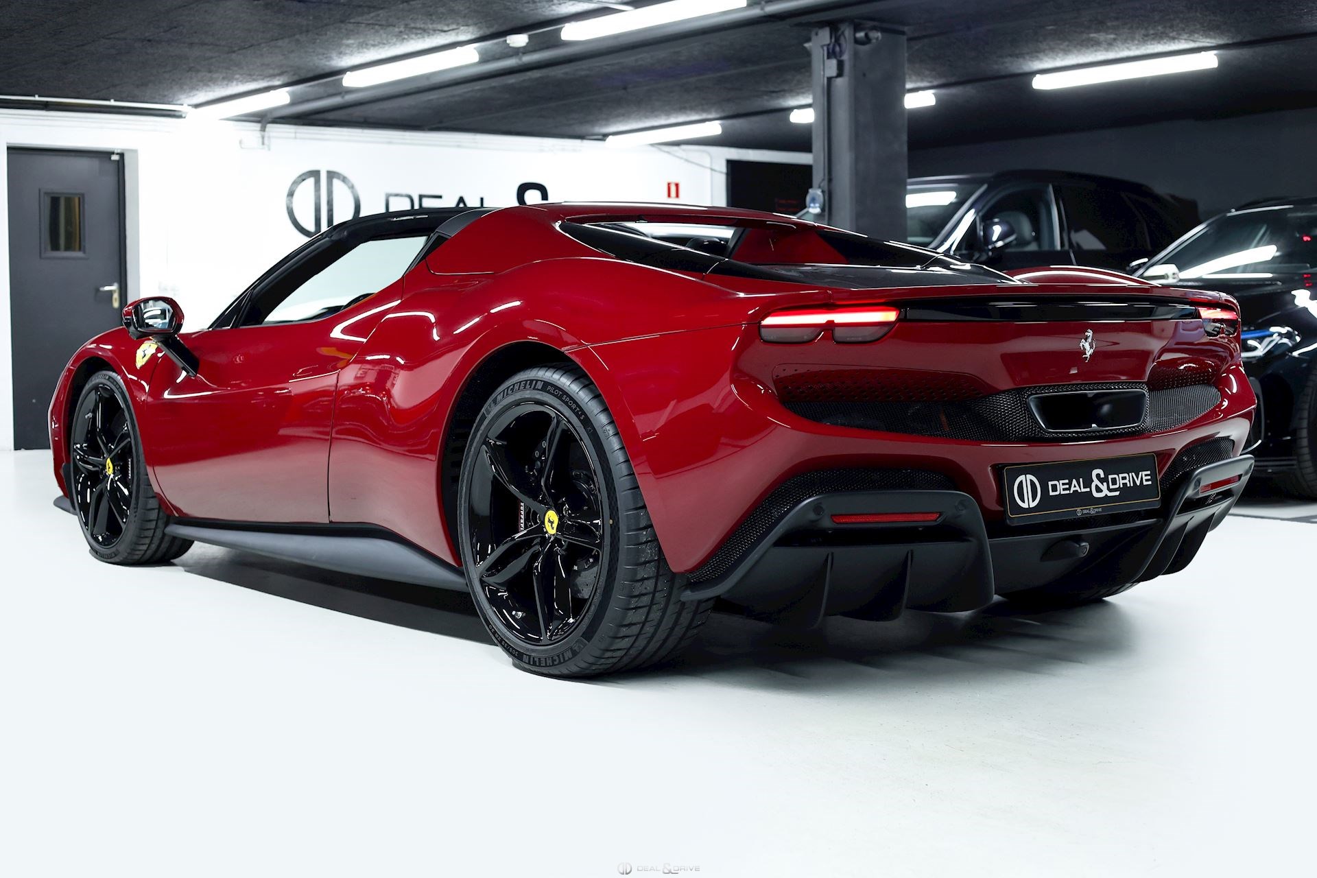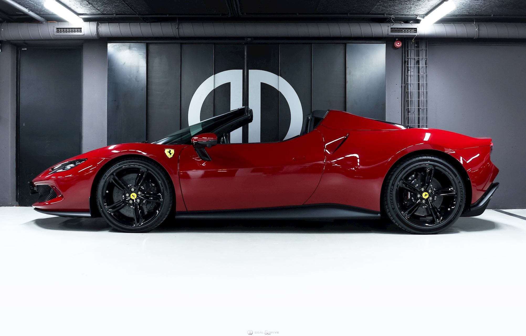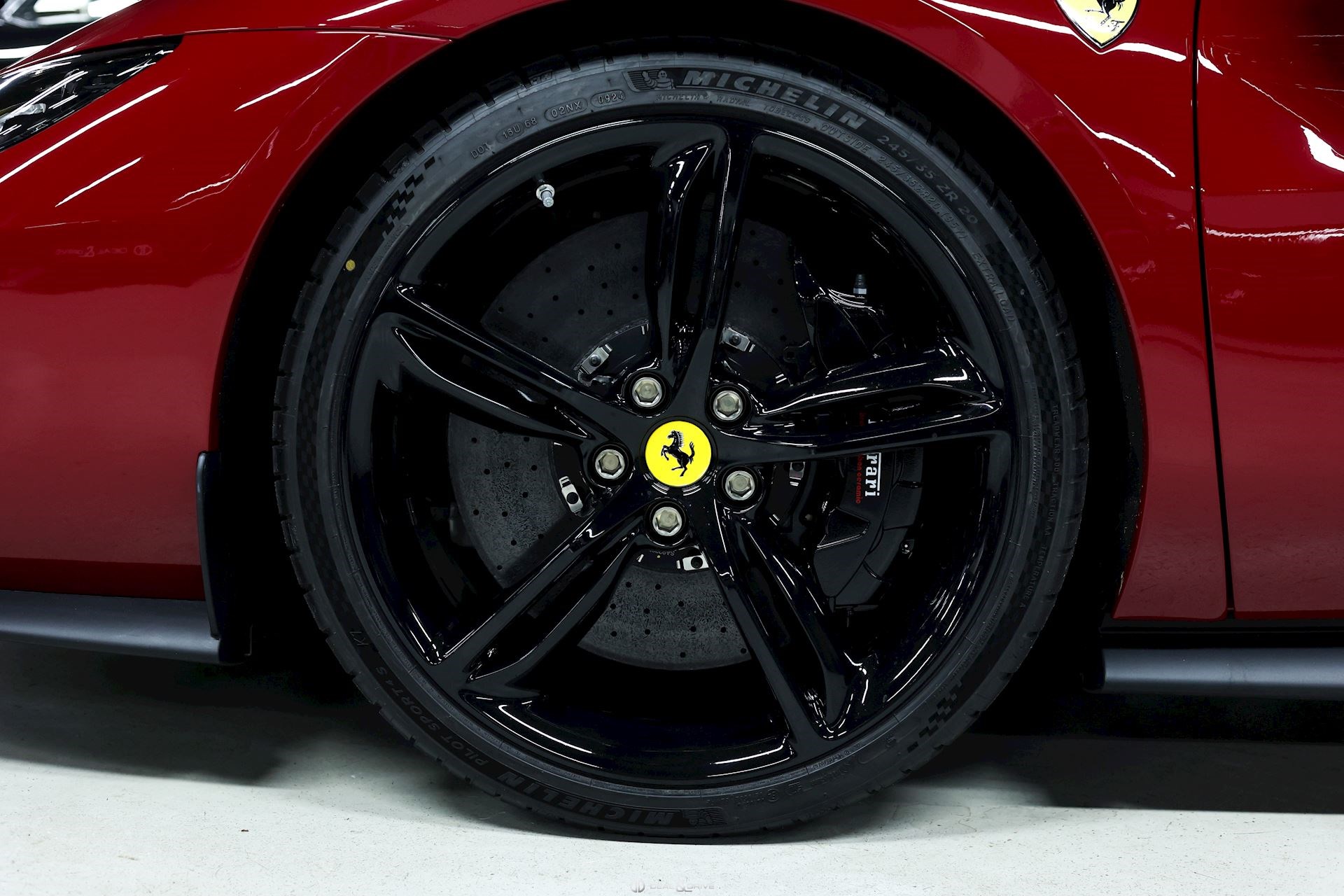 EXTÉRIEUR BIC2 Carrosserie bicolore – Rosso Mugello et Nero DS1250 CALB Étriers de frein en Noir brillant EXAB Sorties des échappements en Noir LOGO Emblème « SCUDERIA FERRARI » sur les ailes avant RMSV Jantes forgées 20’’ TIWN Boulons en Titane