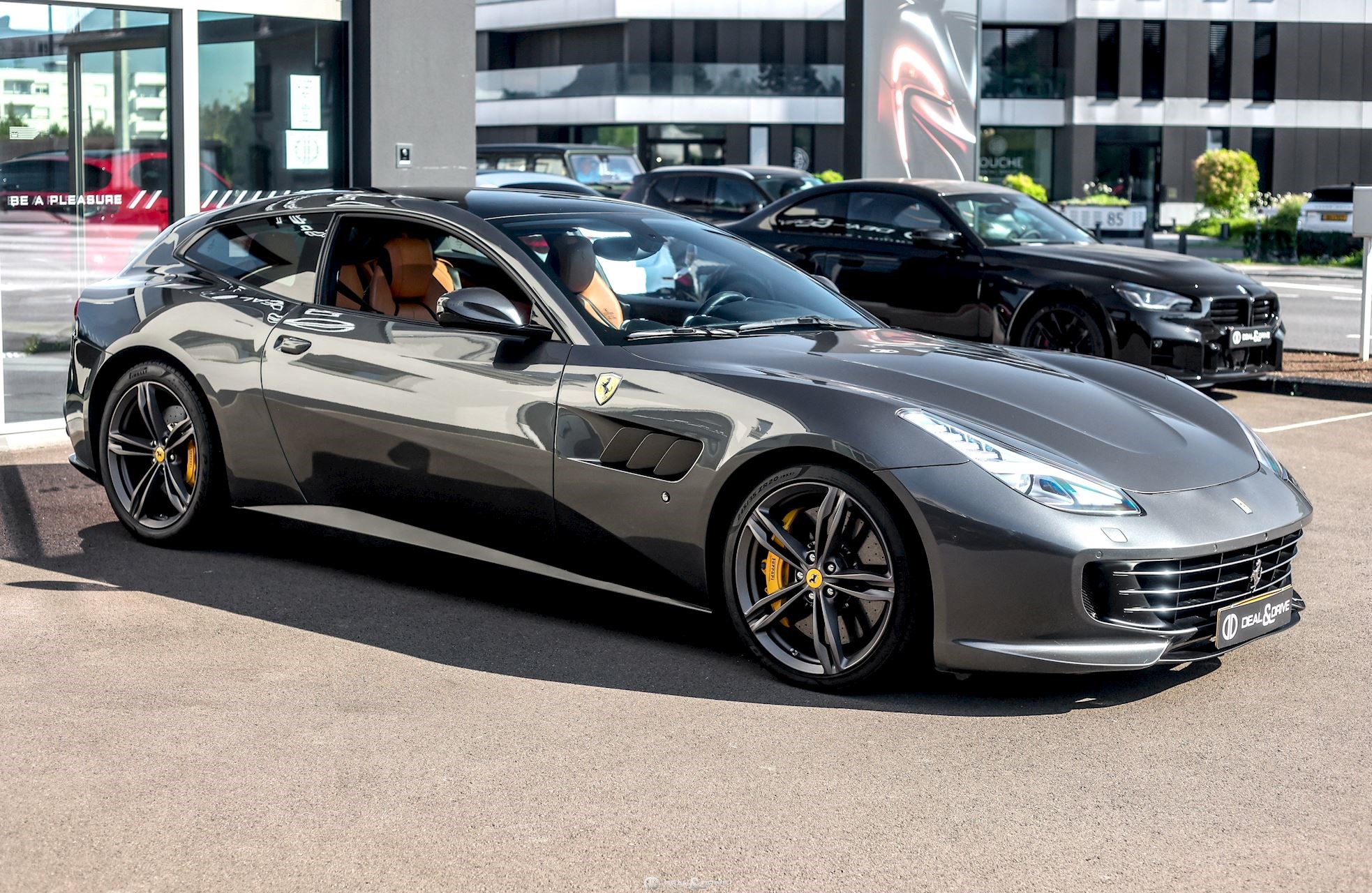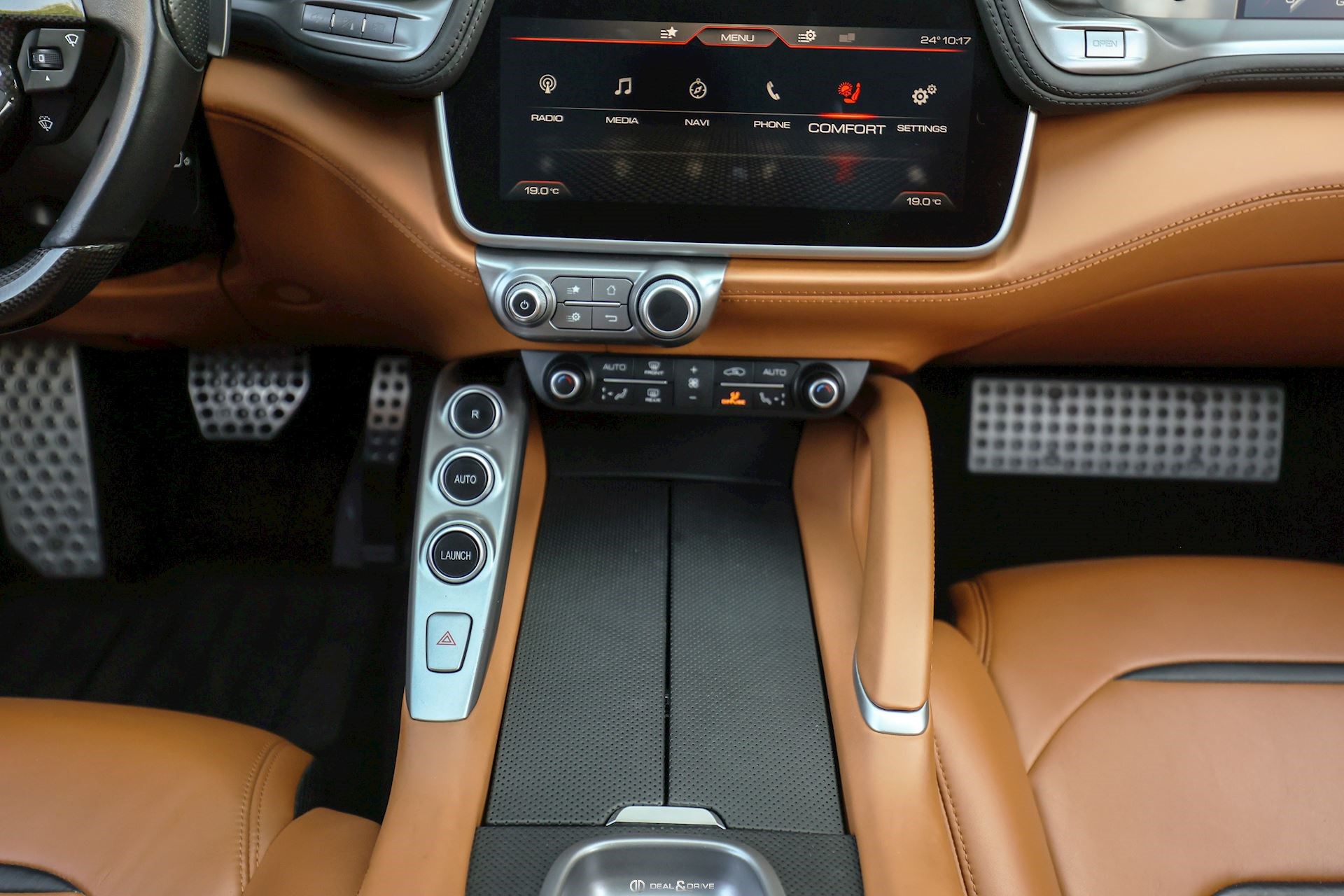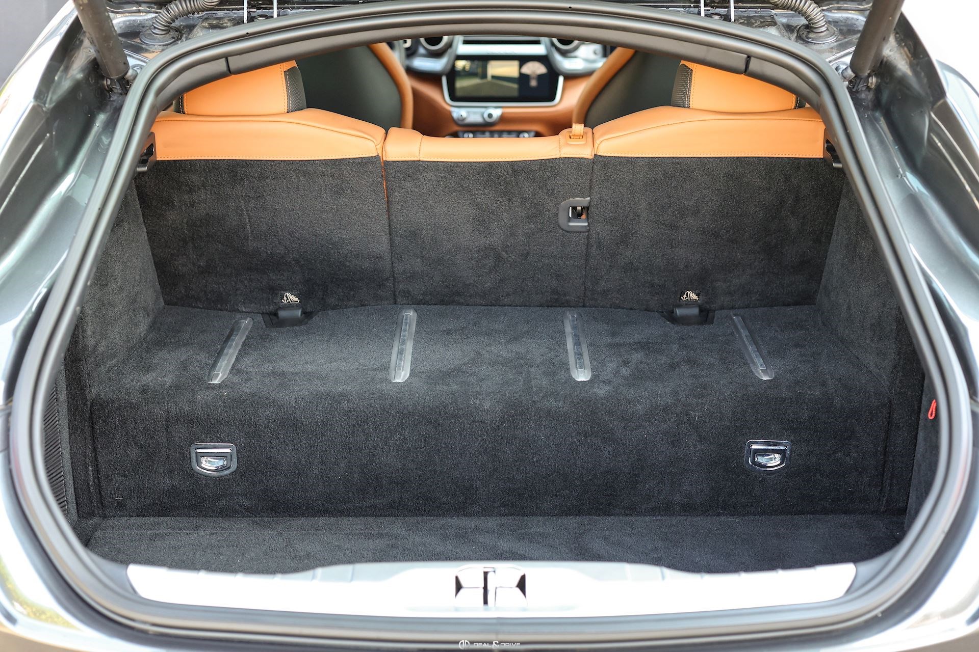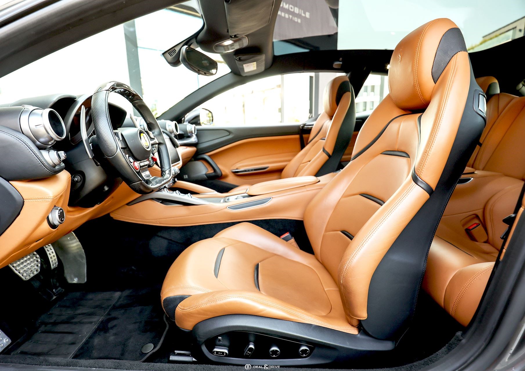 Équipements spéciaux : FLMA Tapis en Noir, sangles et inserts en cuir Cuoio et logo du véhicule brodé en fil Cuoio