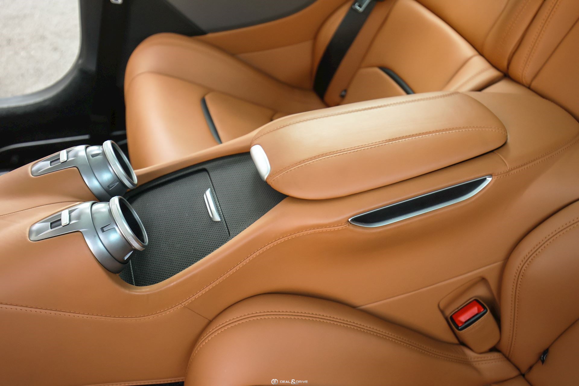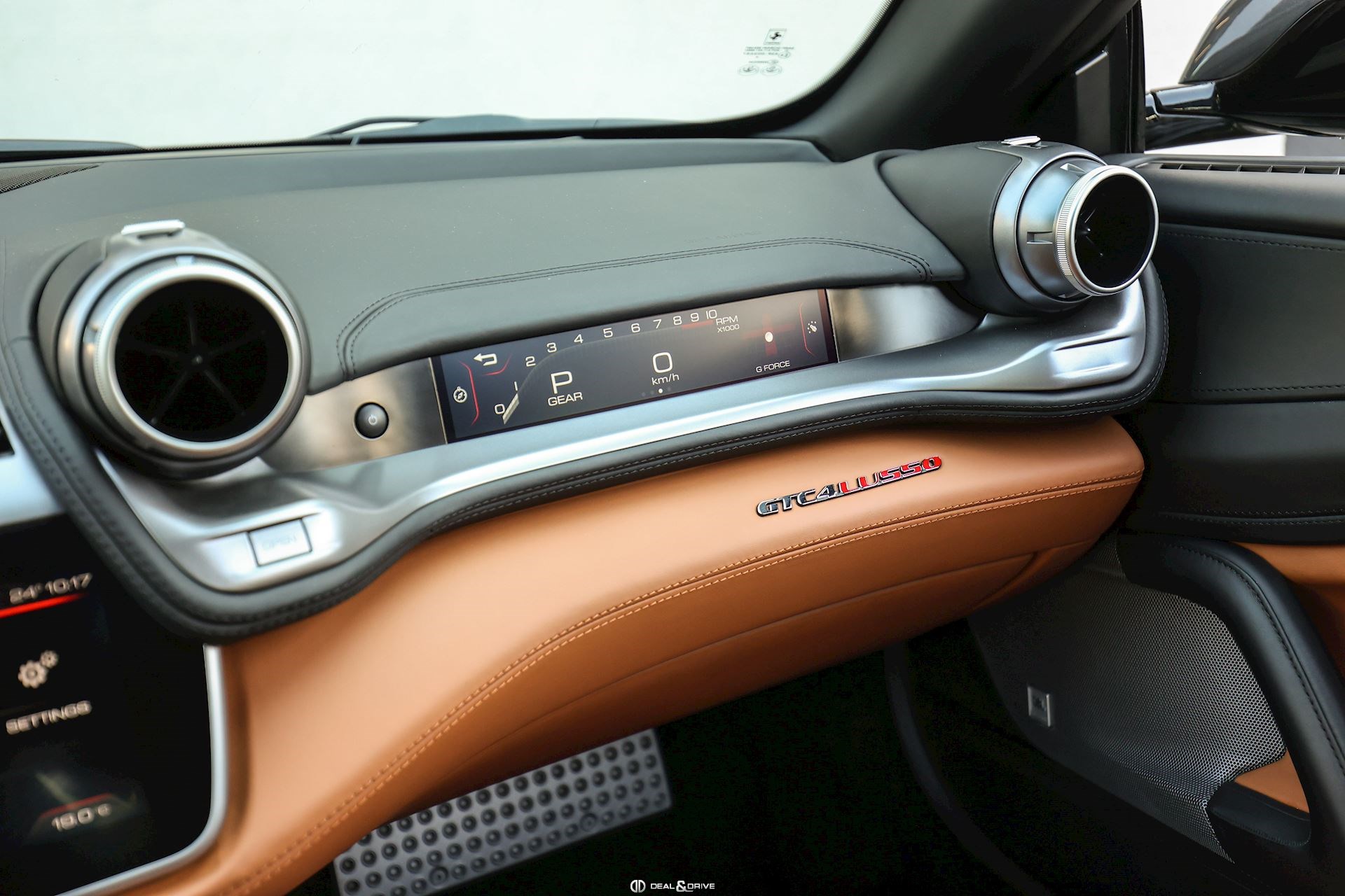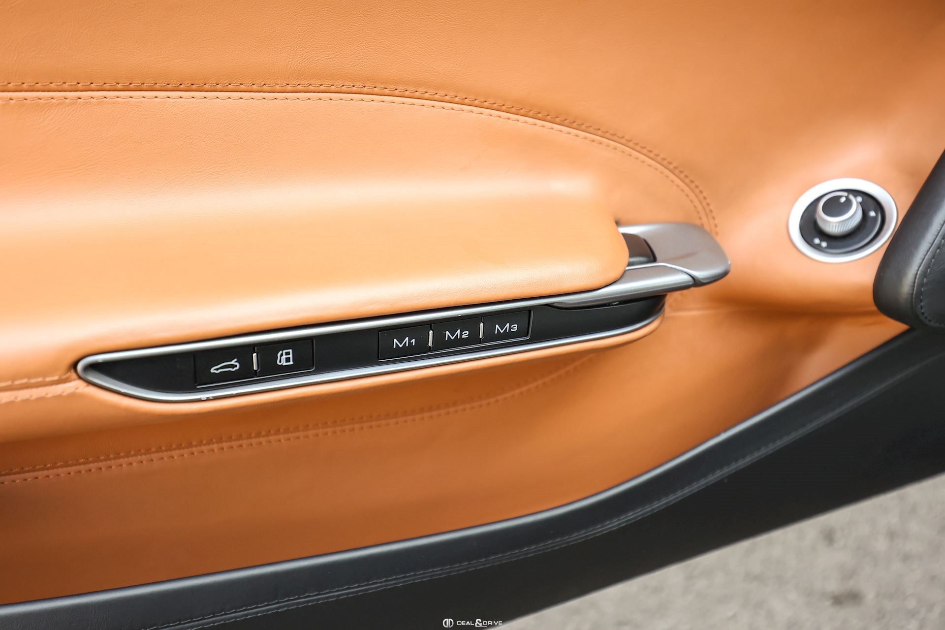 Équipements spéciaux : FLMA Tapis en Noir, sangles et inserts en cuir Cuoio et logo du véhicule brodé en fil Cuoio