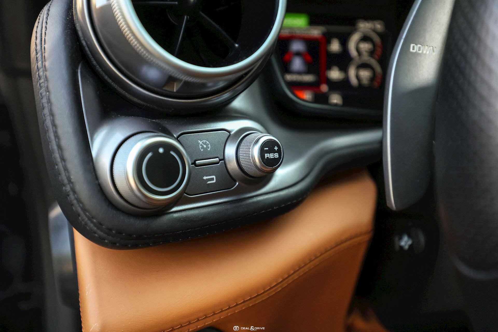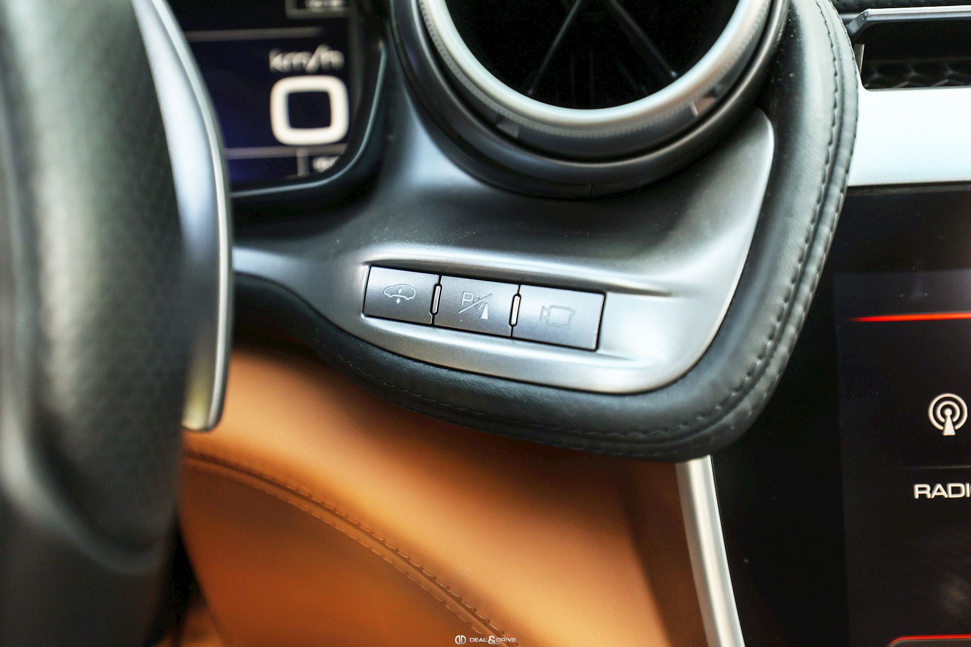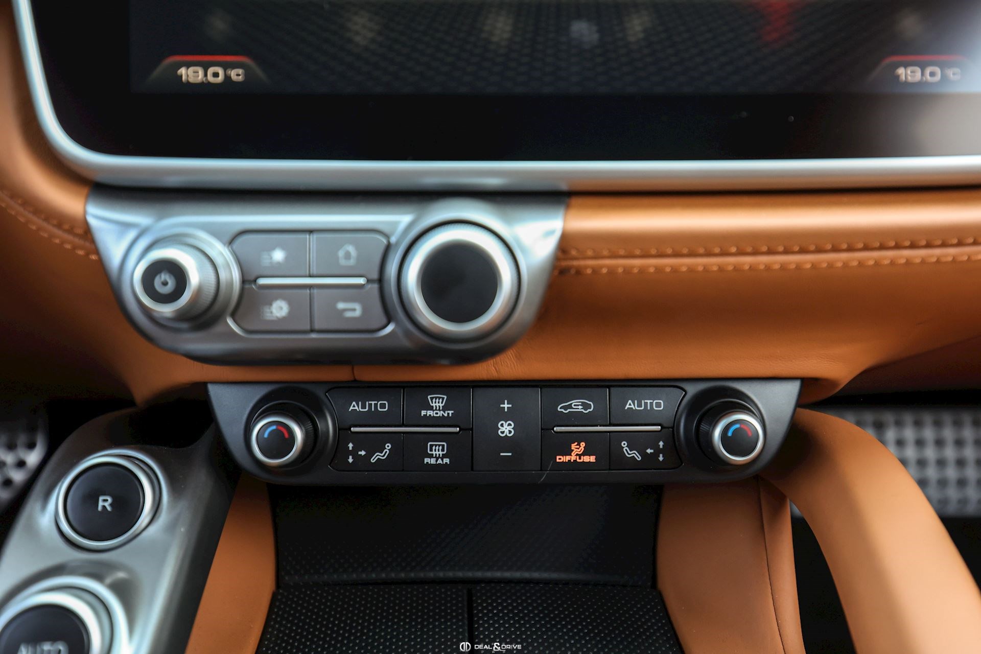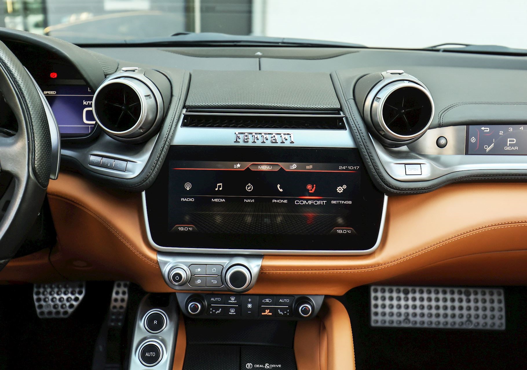 Équipements spéciaux : FLMA Tapis en Noir, sangles et inserts en cuir Cuoio et logo du véhicule brodé en fil Cuoio