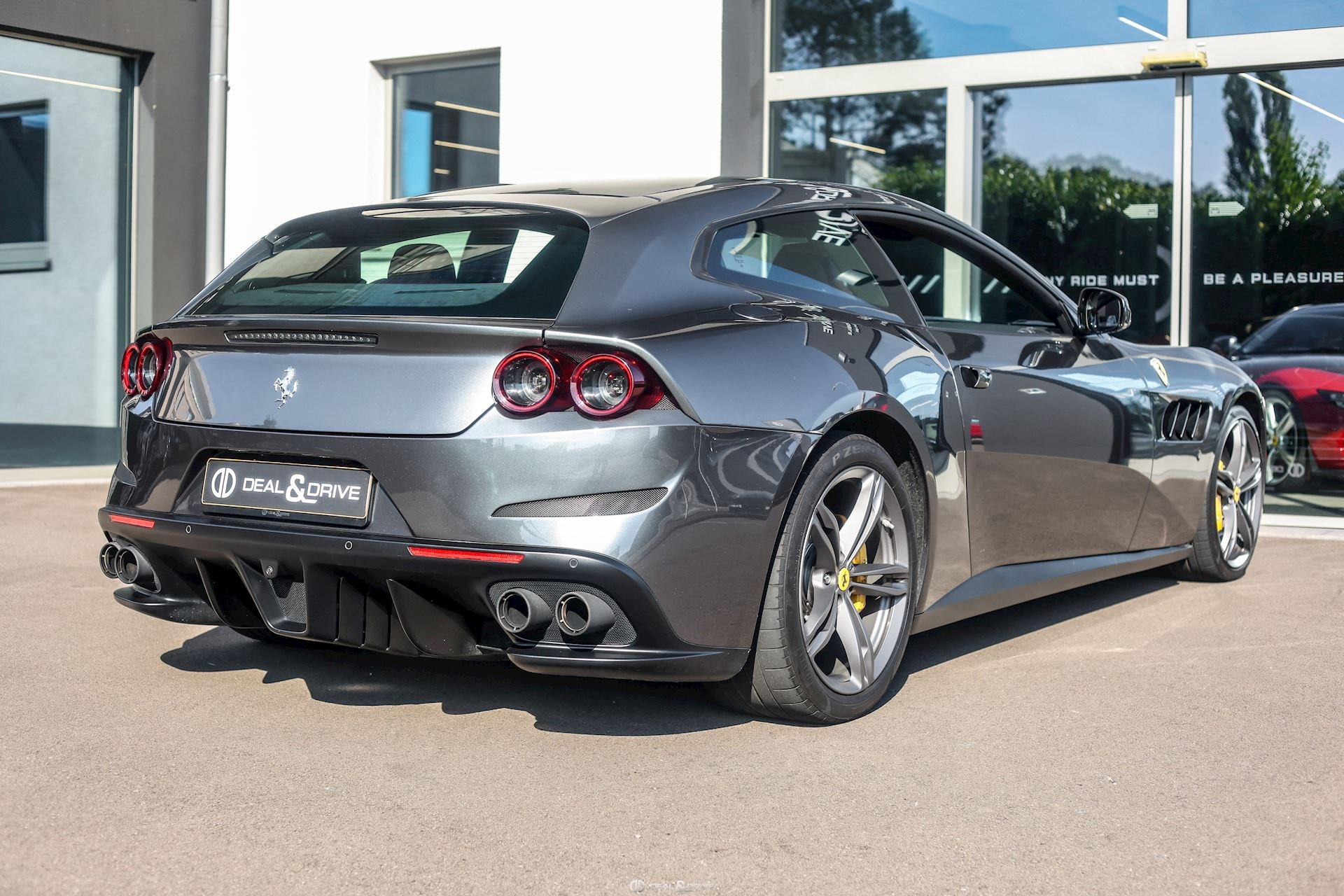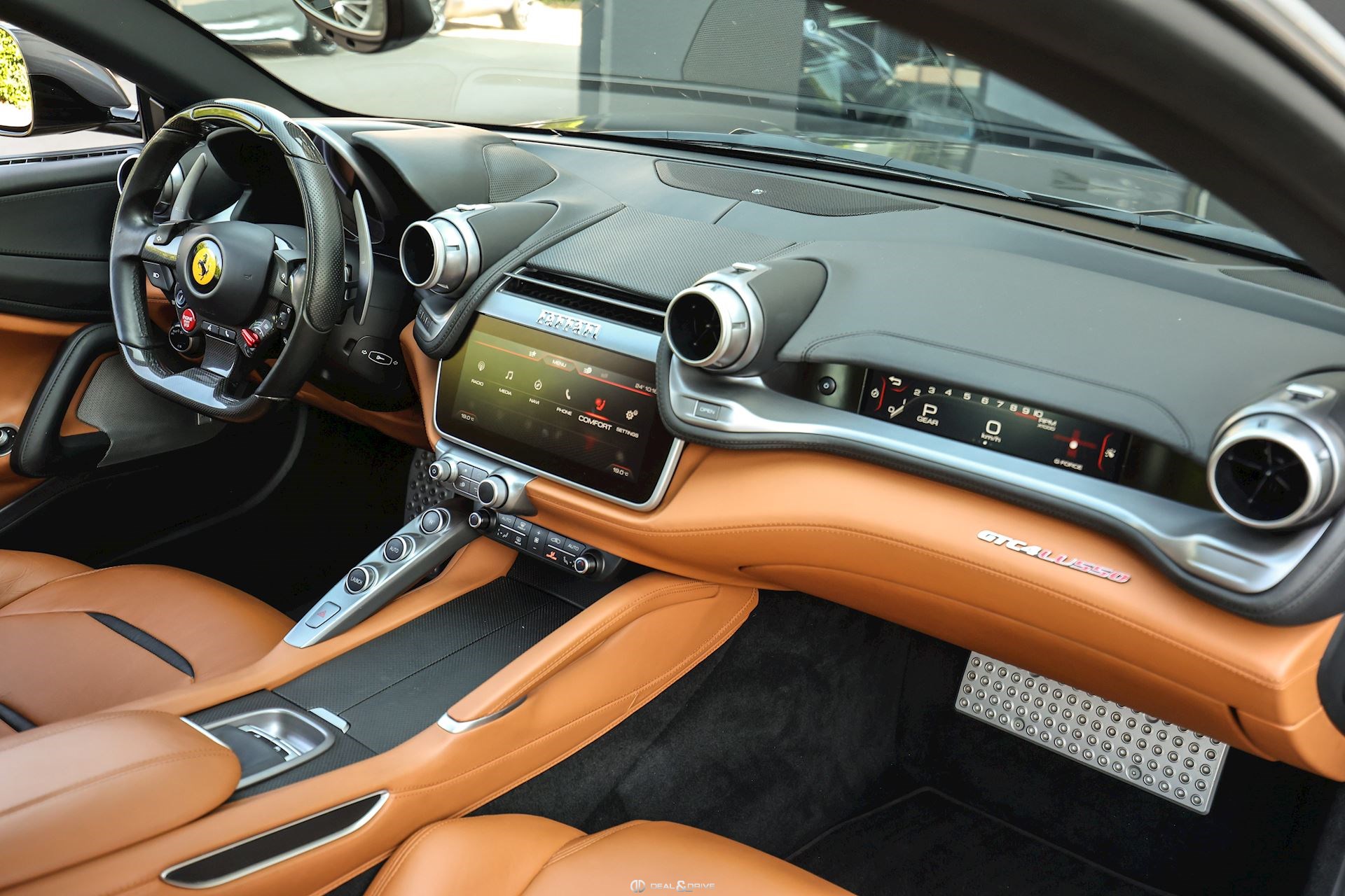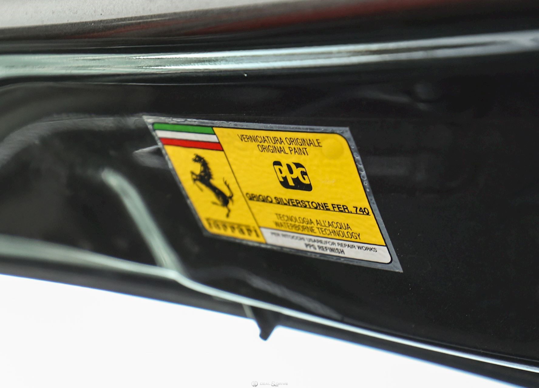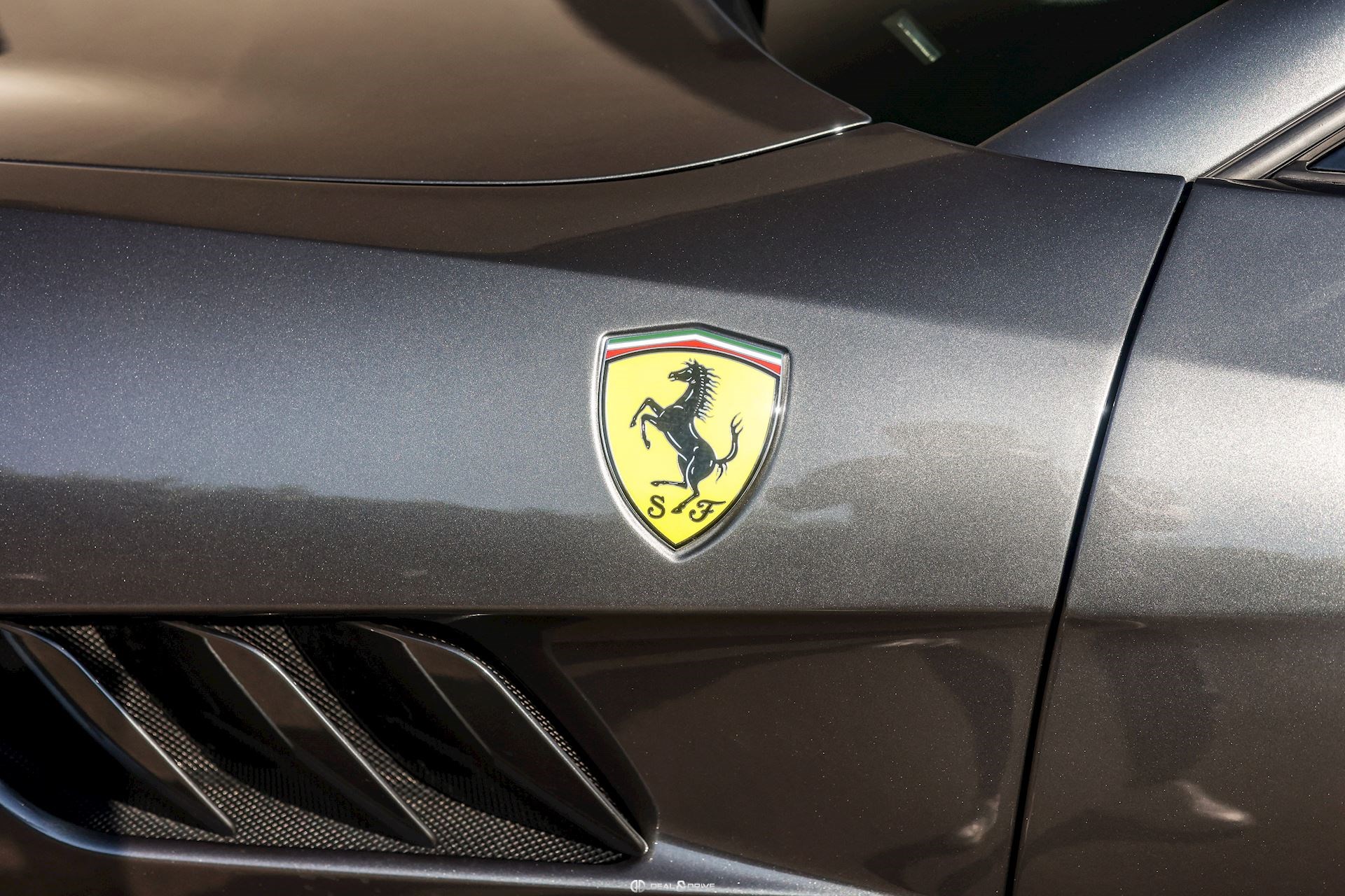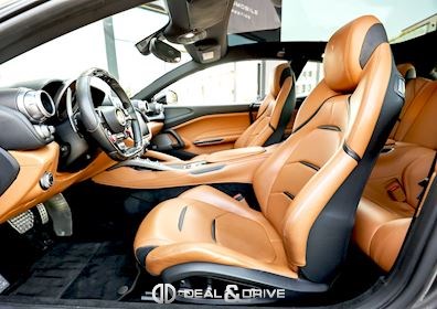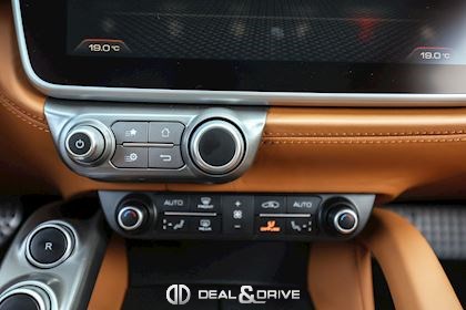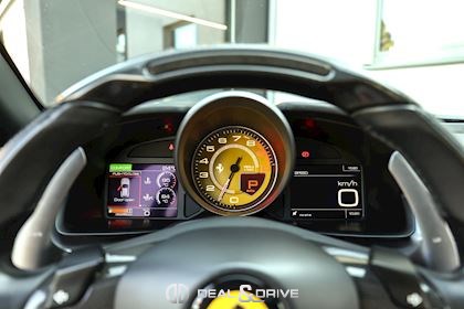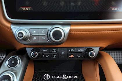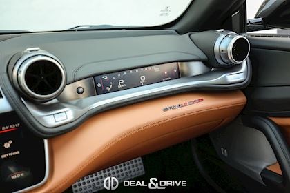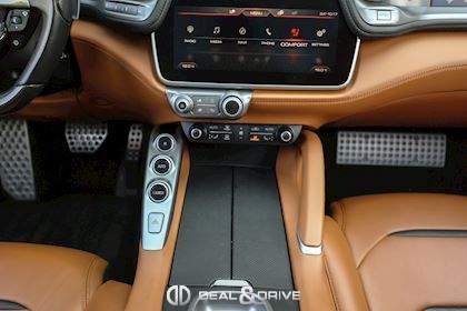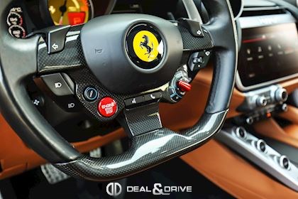 EXTÉRIEUR CALY Étriers de frein en Jaune CFG1 Grille frontale avec bords chromés CHIP Film de protection sur pare-chocs avant ECRF Toit panoramique LOGO Emblèmes « SCUDERIA FERRARI » sur les ailes avant RMSV Jantes forgées 20’’ peintes RSPA Spoiler du toit panoramique en Nero DS