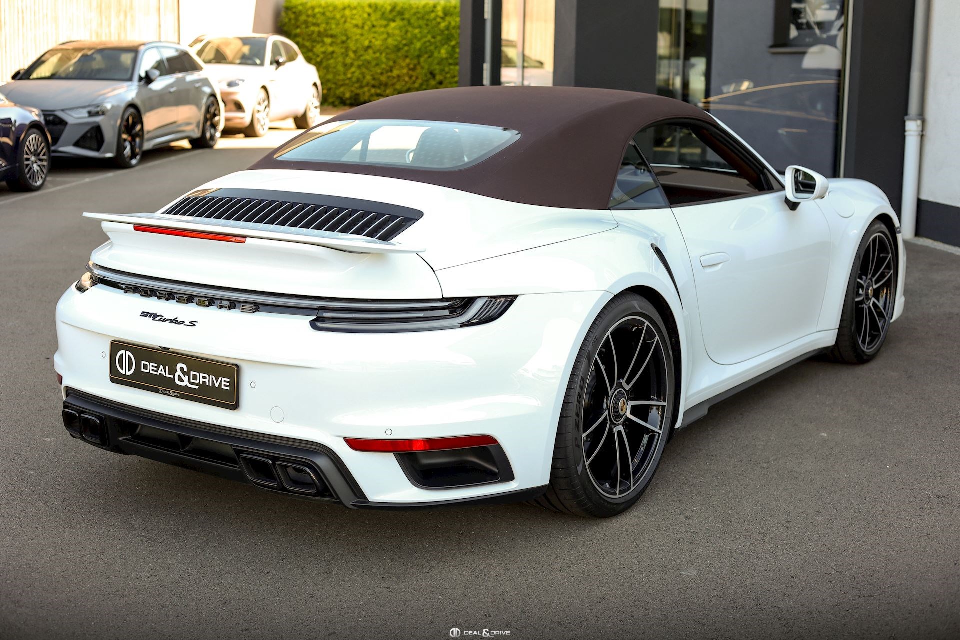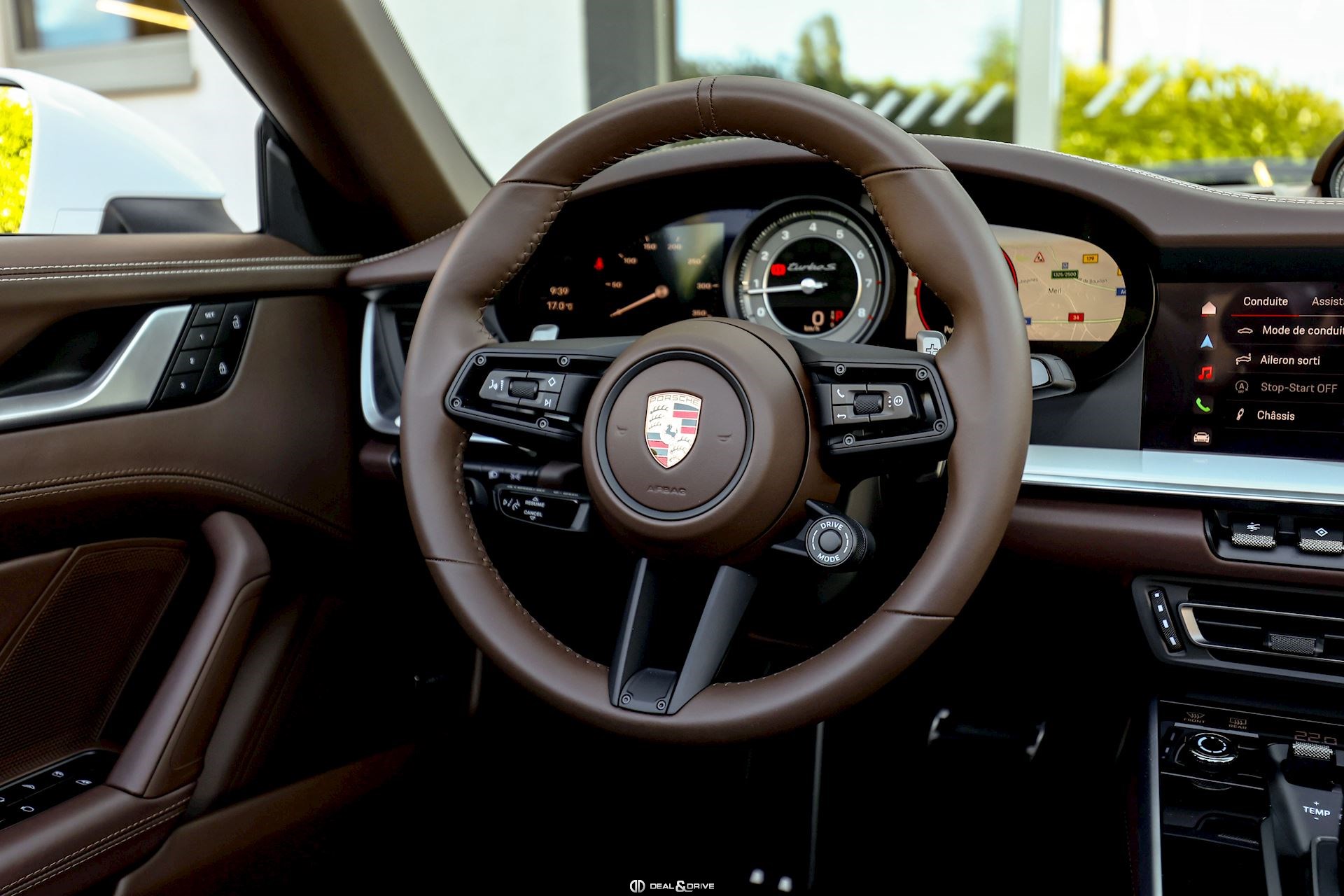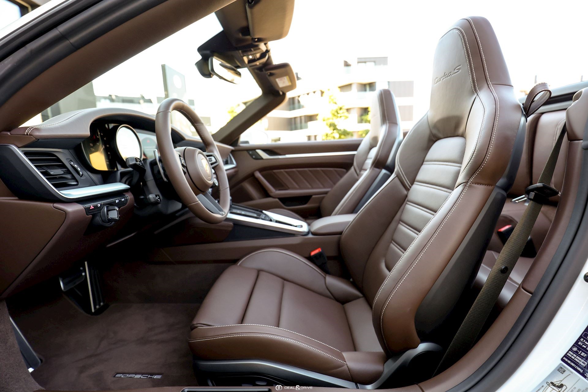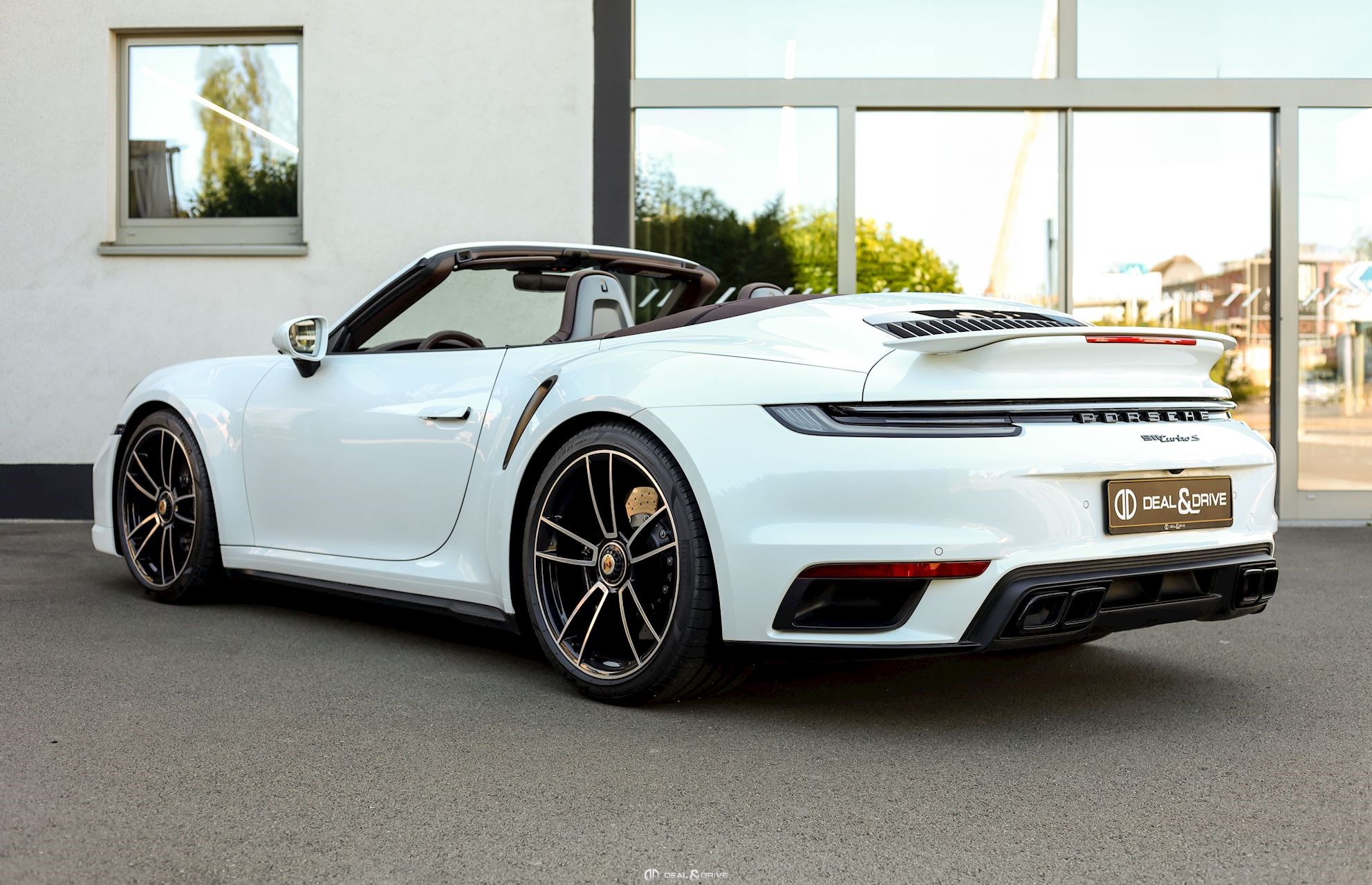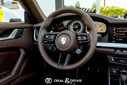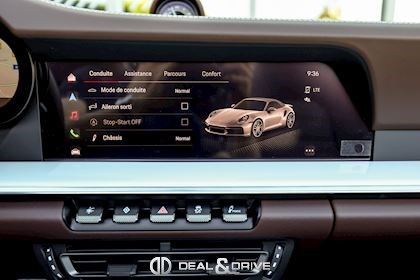 EXTÉRIEUR Jantes alliage léger 20’’ / 21’’ 911 Turbo S Freins céramiques Porsche Ceramic Composite Brake, PCCB Étriers de frein en Noir Caches moyeux Porsche en couleur Bouchon de réservoir Exclusive Design Sorties d’échappement en Noir Rétroviseurs extérieurs électriques Rétroviseurs extérieurs rabattables électriquement Capote en couleur Brun Monogramme Porsche peint en Noir Désignation du modèle peinte en Noir
