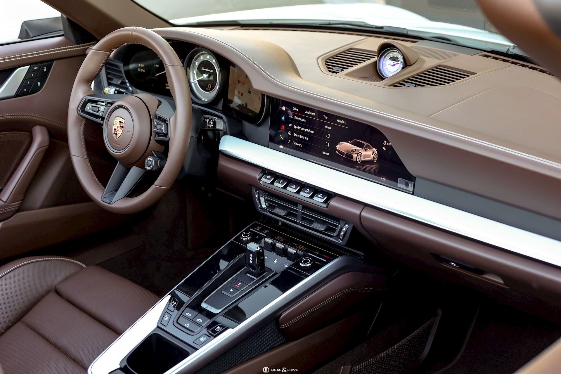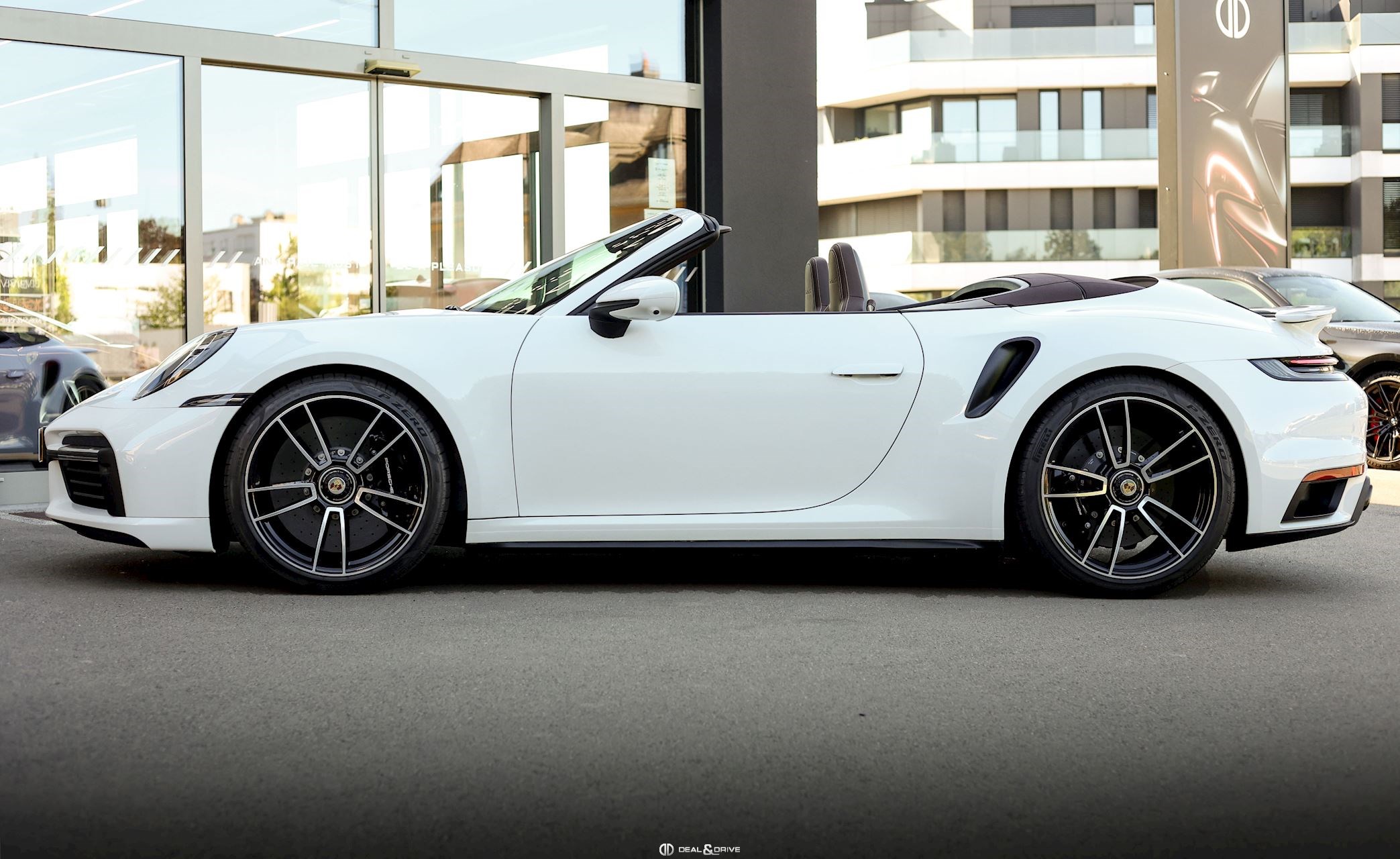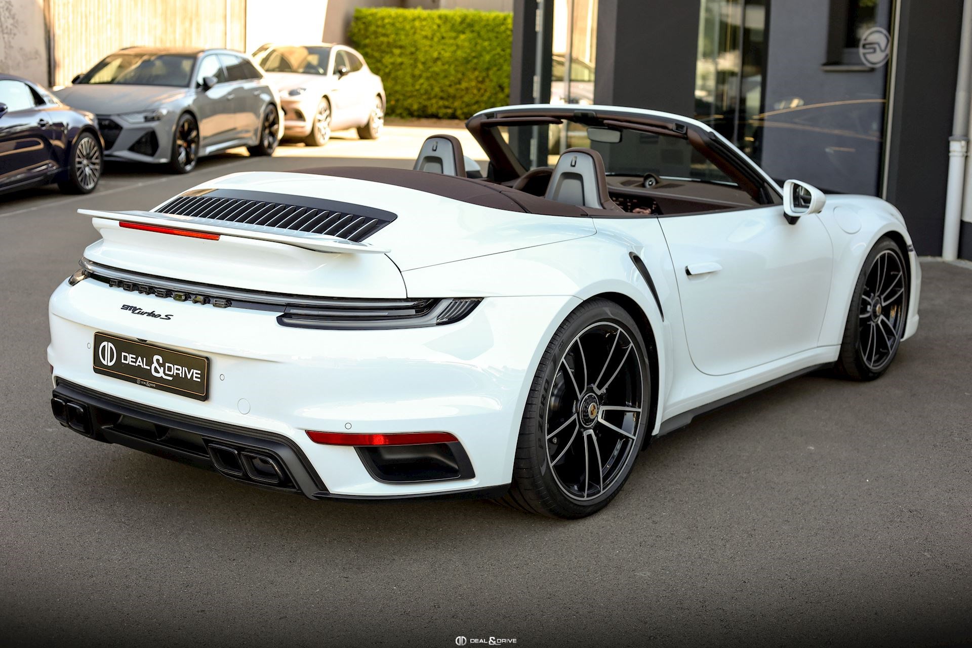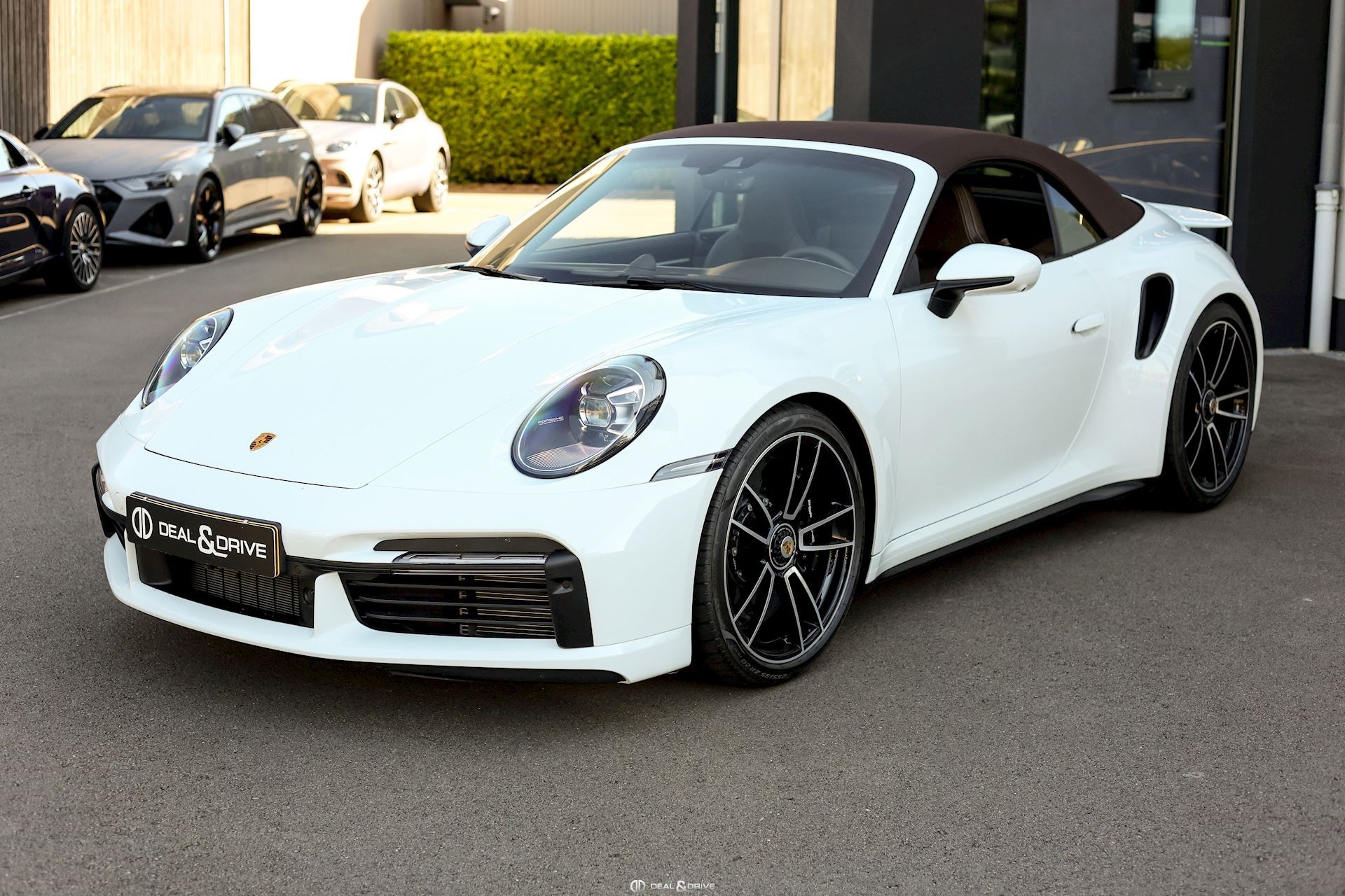 EXTÉRIEUR Jantes alliage léger 20’’ / 21’’ 911 Turbo S Freins céramiques Porsche Ceramic Composite Brake, PCCB Étriers de frein en Noir Caches moyeux Porsche en couleur Bouchon de réservoir Exclusive Design Sorties d’échappement en Noir Rétroviseurs extérieurs électriques Rétroviseurs extérieurs rabattables électriquement Capote en couleur Brun Monogramme Porsche peint en Noir Désignation du modèle peinte en Noir