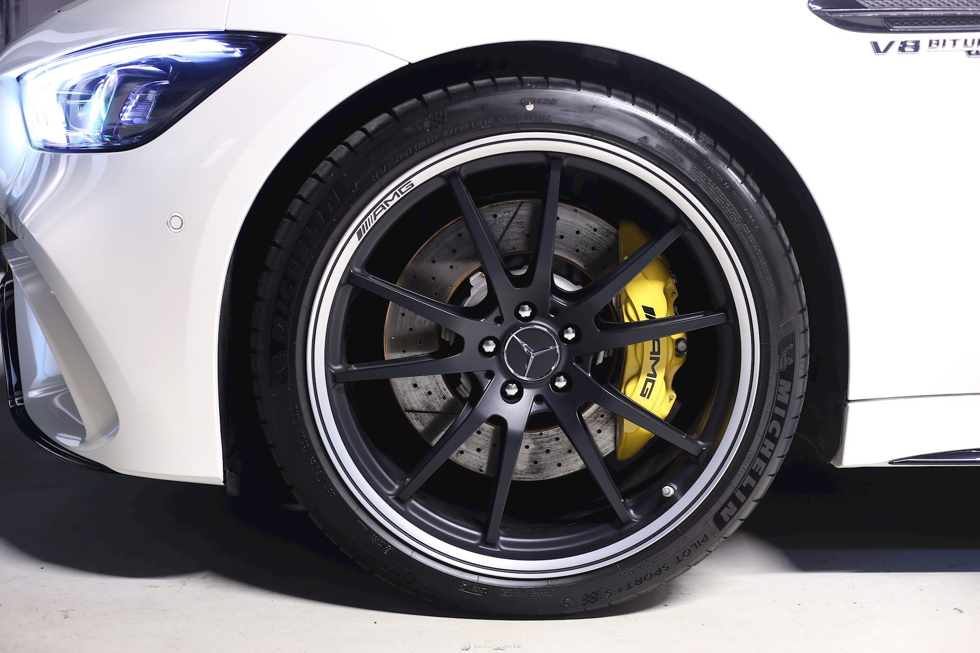 EXTÉRIEUR Jantes alliage léger 21’’ AMG, 5 branches doubles, noir mat Étriers de frein en Jaune Toit ouvrant panoramique Bas de caisse en Noir Diffuseur arrière en Noir