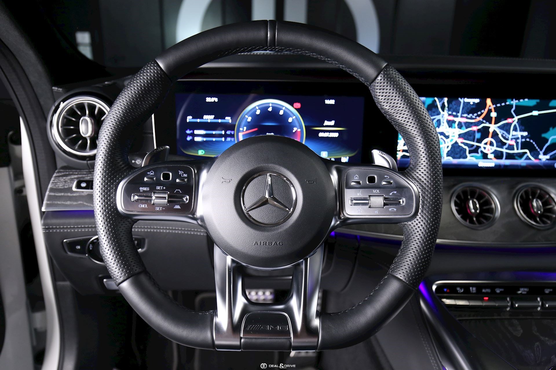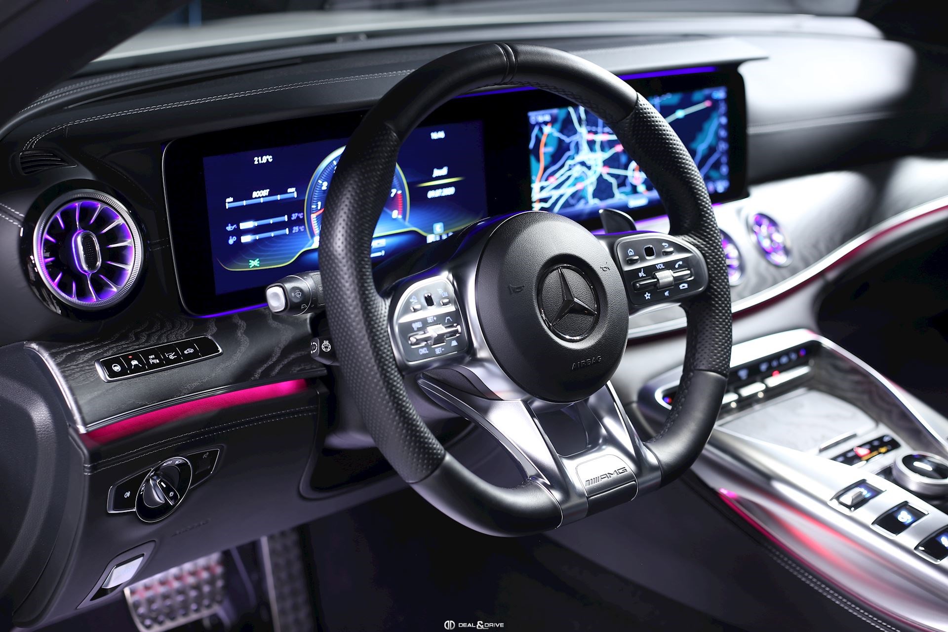 INTÉRIEUR Intérieur Bois précieux Frêne Sièges avant Sport Sièges avant électriques Sièges avant chauffants Appuie-lombaires électriques Volant AMG Performance en cuir, multifonctions Volant chauffant Volant réglable électriquement Tapis de sol AMG Climatisation automatique Confort Thermotronic 3 zones Plafonnier Designo Dinamica