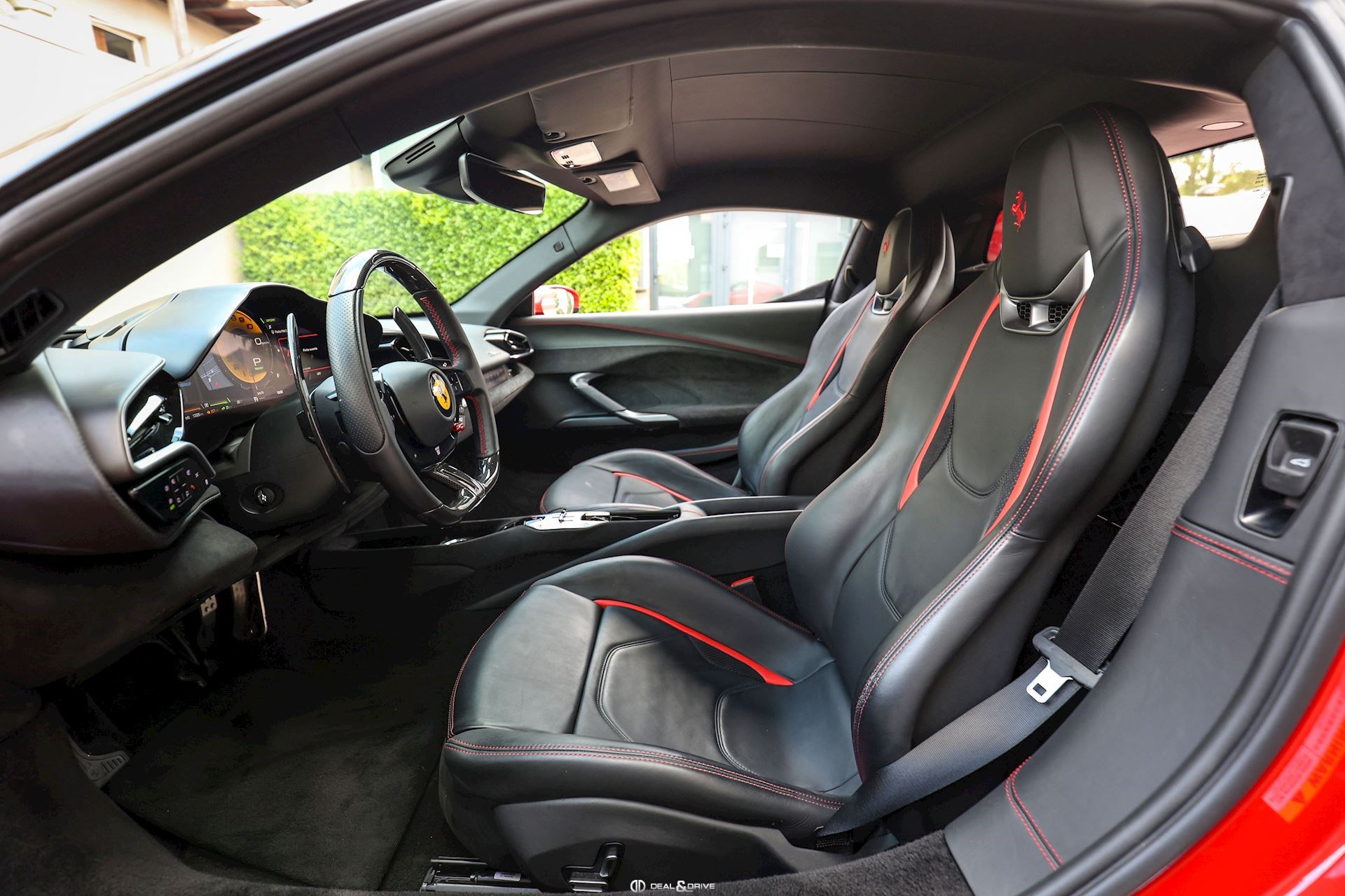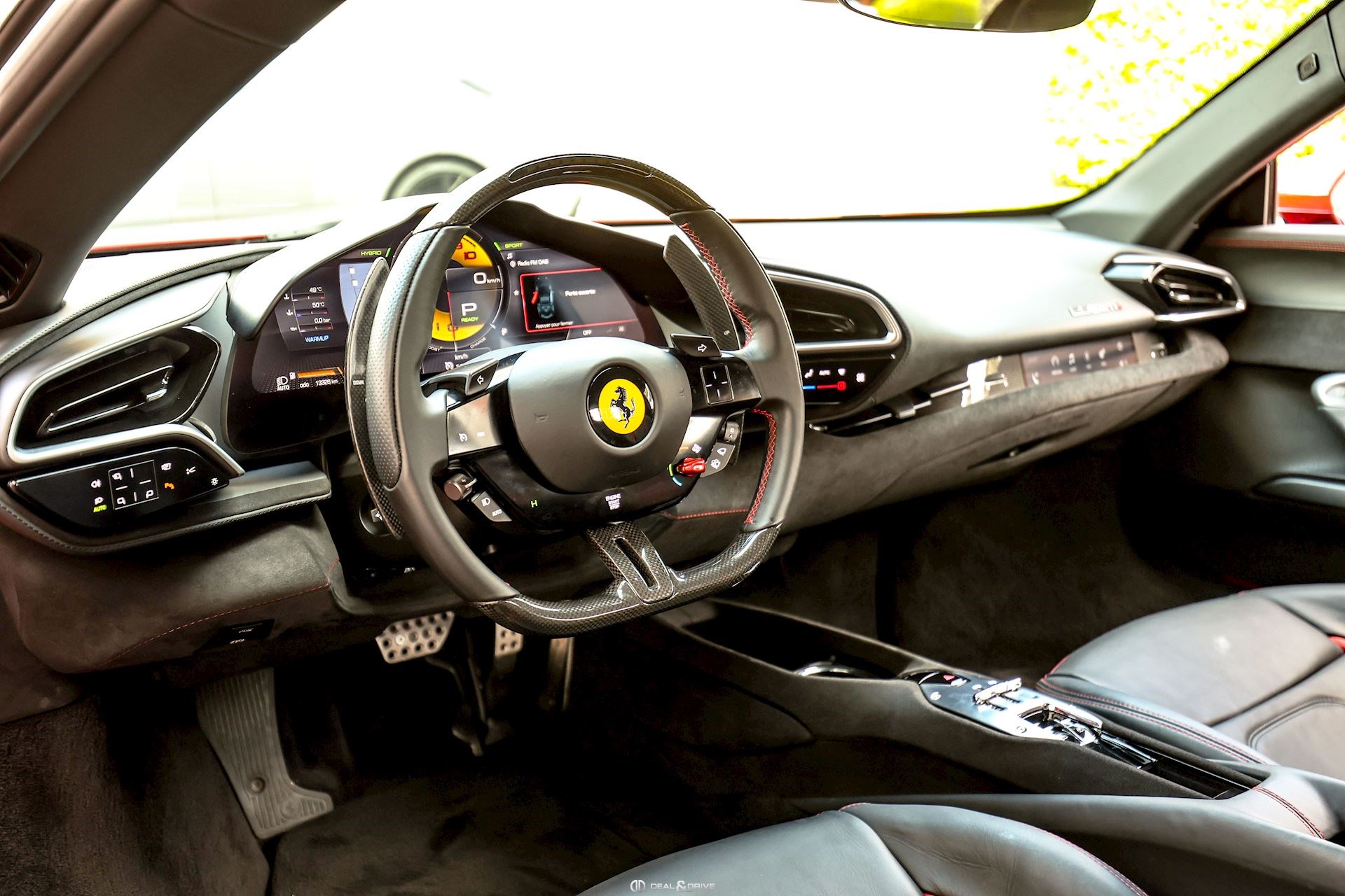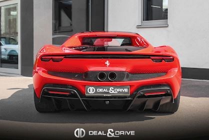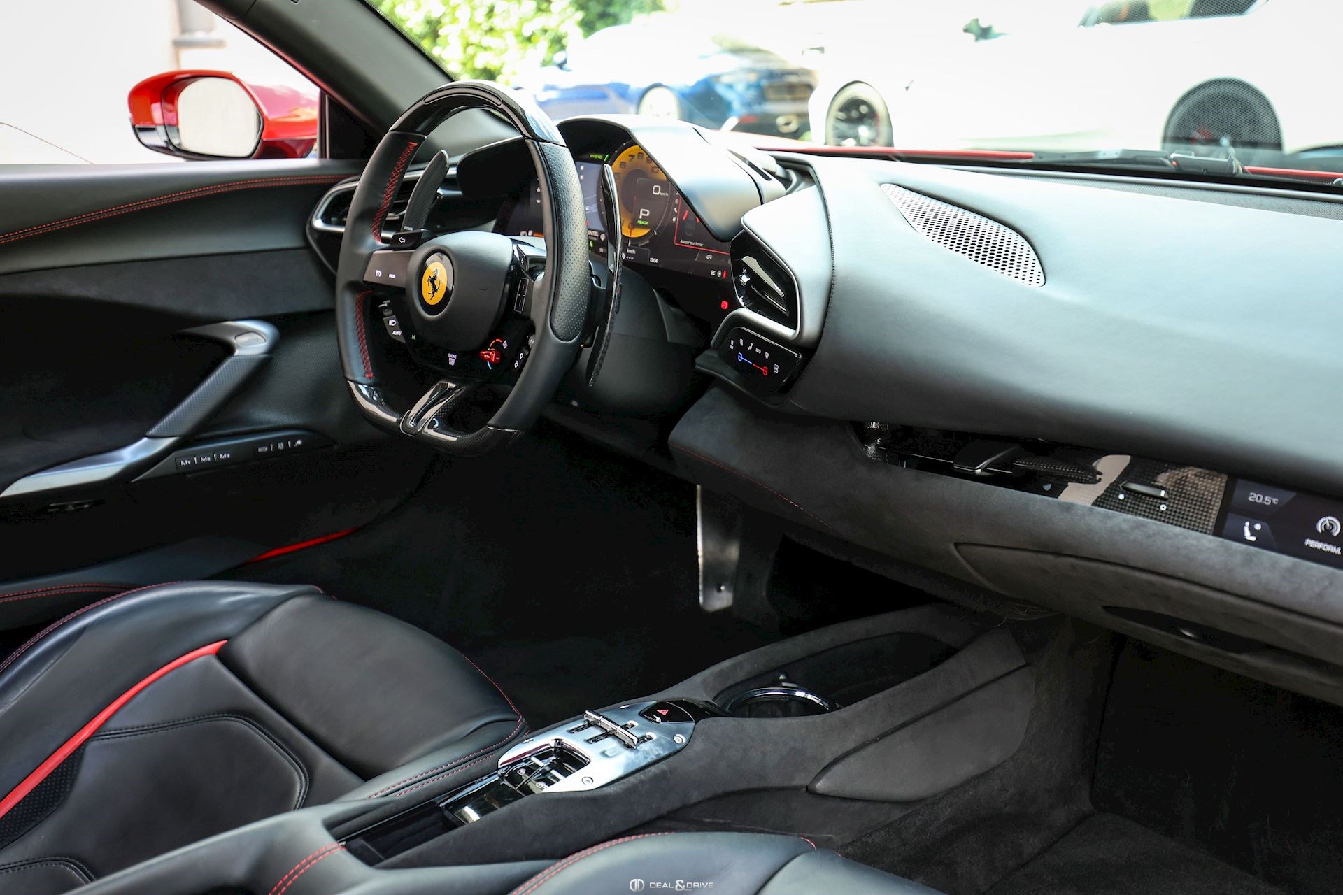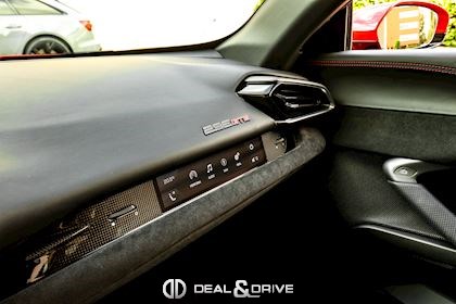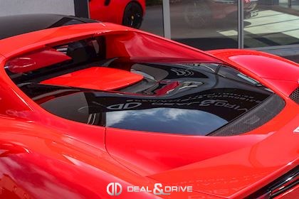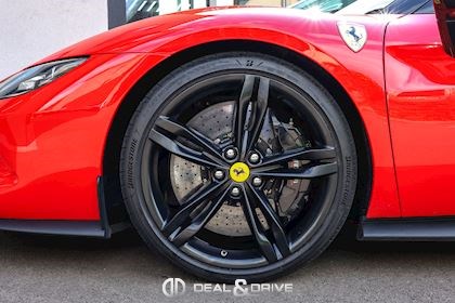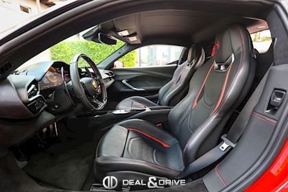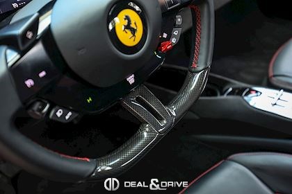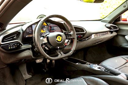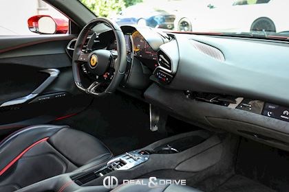 Jantes 20’’ en Noir Satin Freins céramiques Caches moyeux Ferrari en couleur Sièges chauffants Siège conducteur à mémoire Système de reconnaissance des panneaux de signalisation Système d’appel d’urgence Affichage tête haute Système de contrôle de la pression des pneus Accès et démarrage sans clef Régulateur de vitesse Écran côté passager Passenger Display Rétroviseurs extérieurs électriques Rétroviseurs extérieurs rabattables électriquement Feux de croisement automatiques Feux de route automatiques Tapis de sol Climatisation automatique Interface Bluetooth Système de commande vocale Appuie-lombaires électriques Volant réglable électriquement Radio numérique DAB Ports USB