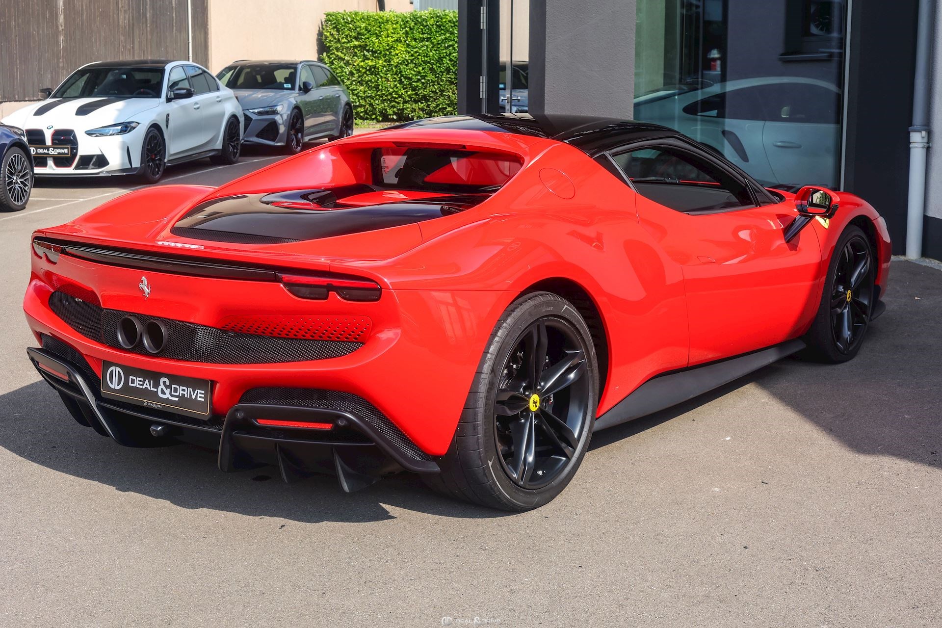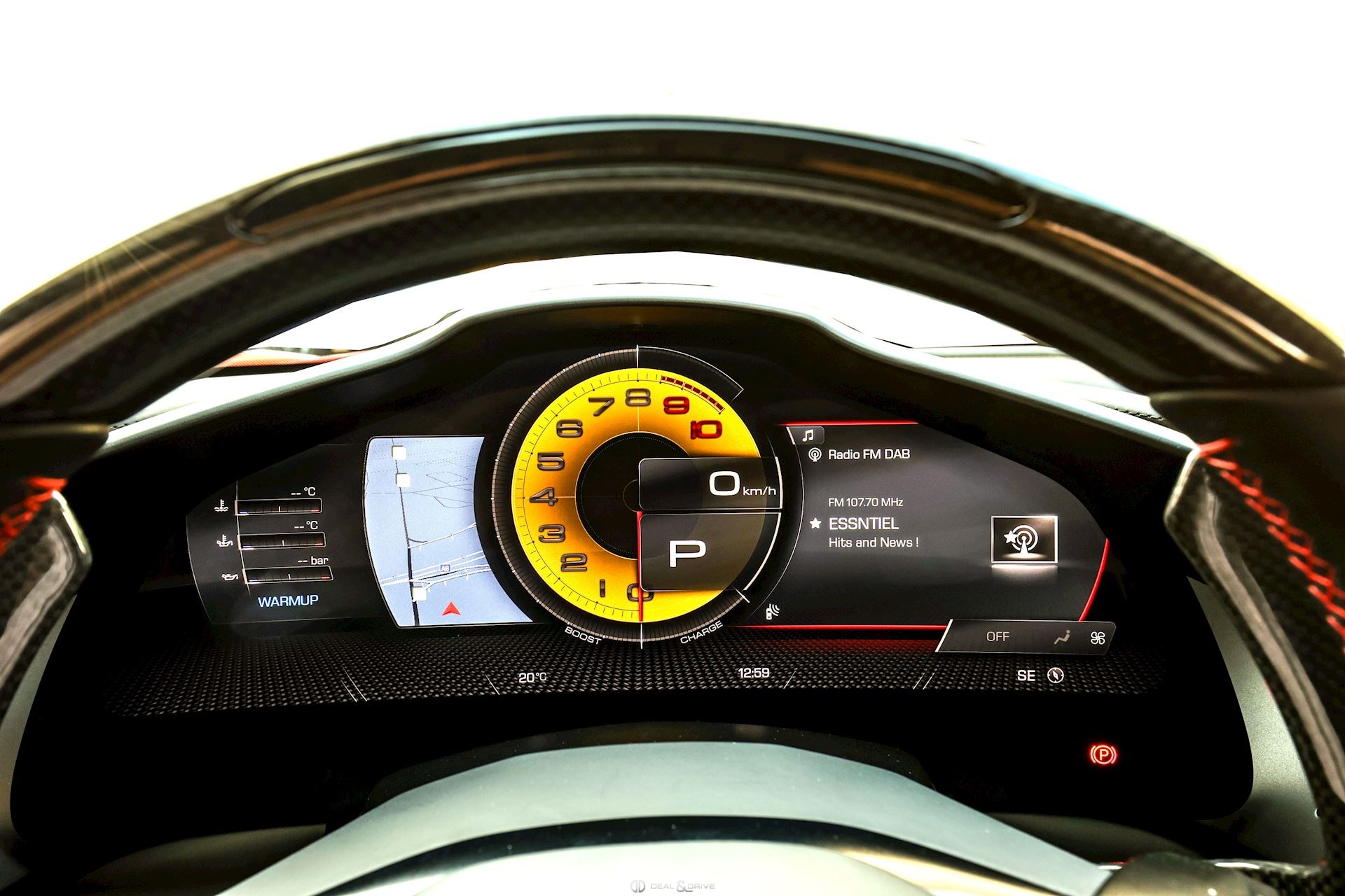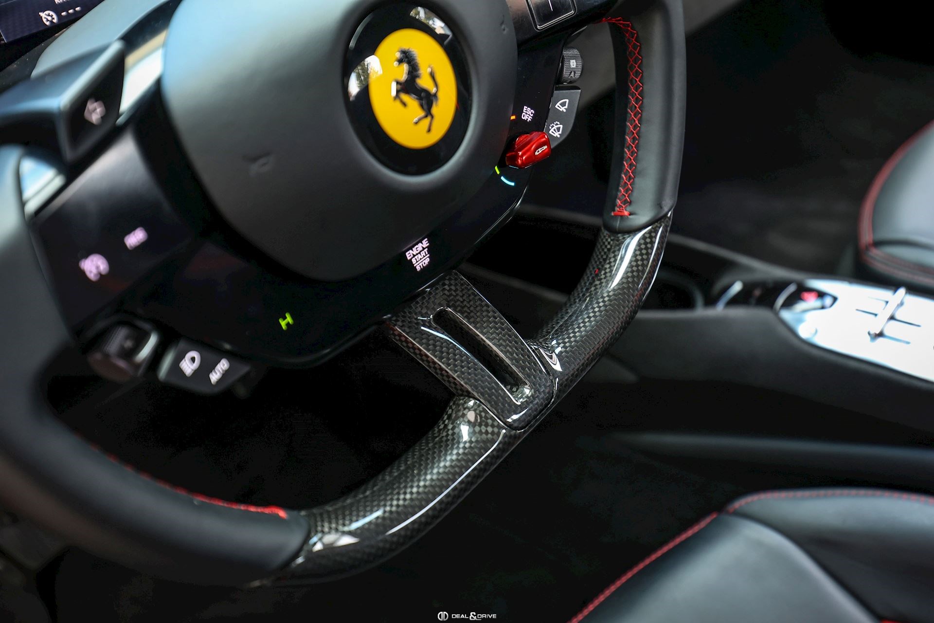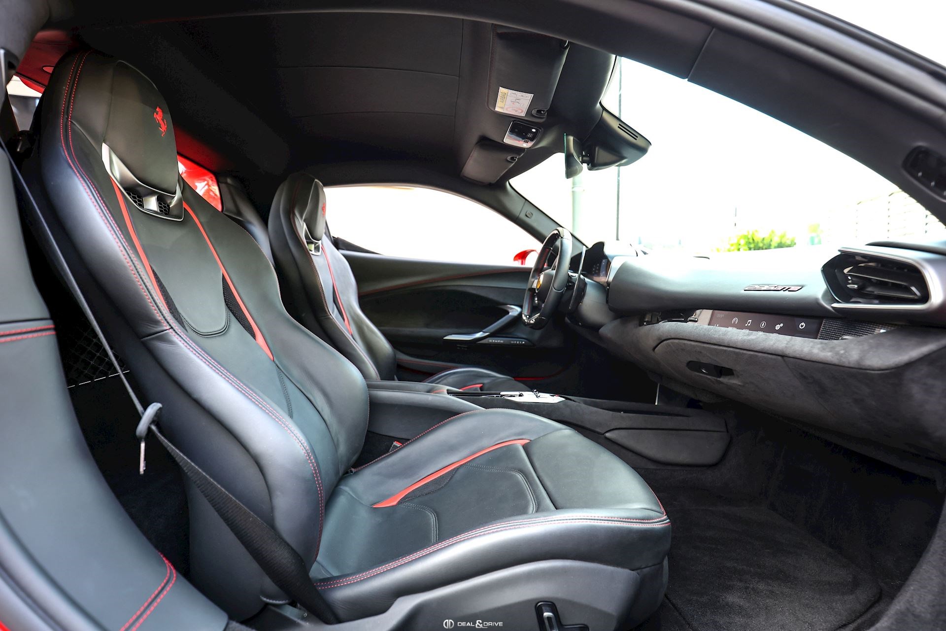 Jantes 20’’ en Noir Satin Freins céramiques Caches moyeux Ferrari en couleur Sièges chauffants Siège conducteur à mémoire Système de reconnaissance des panneaux de signalisation Système d’appel d’urgence Affichage tête haute Système de contrôle de la pression des pneus Accès et démarrage sans clef Régulateur de vitesse Écran côté passager Passenger Display Rétroviseurs extérieurs électriques Rétroviseurs extérieurs rabattables électriquement Feux de croisement automatiques Feux de route automatiques Tapis de sol Climatisation automatique Interface Bluetooth Système de commande vocale Appuie-lombaires électriques Volant réglable électriquement Radio numérique DAB Ports USB