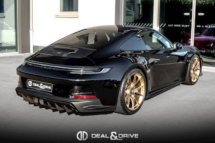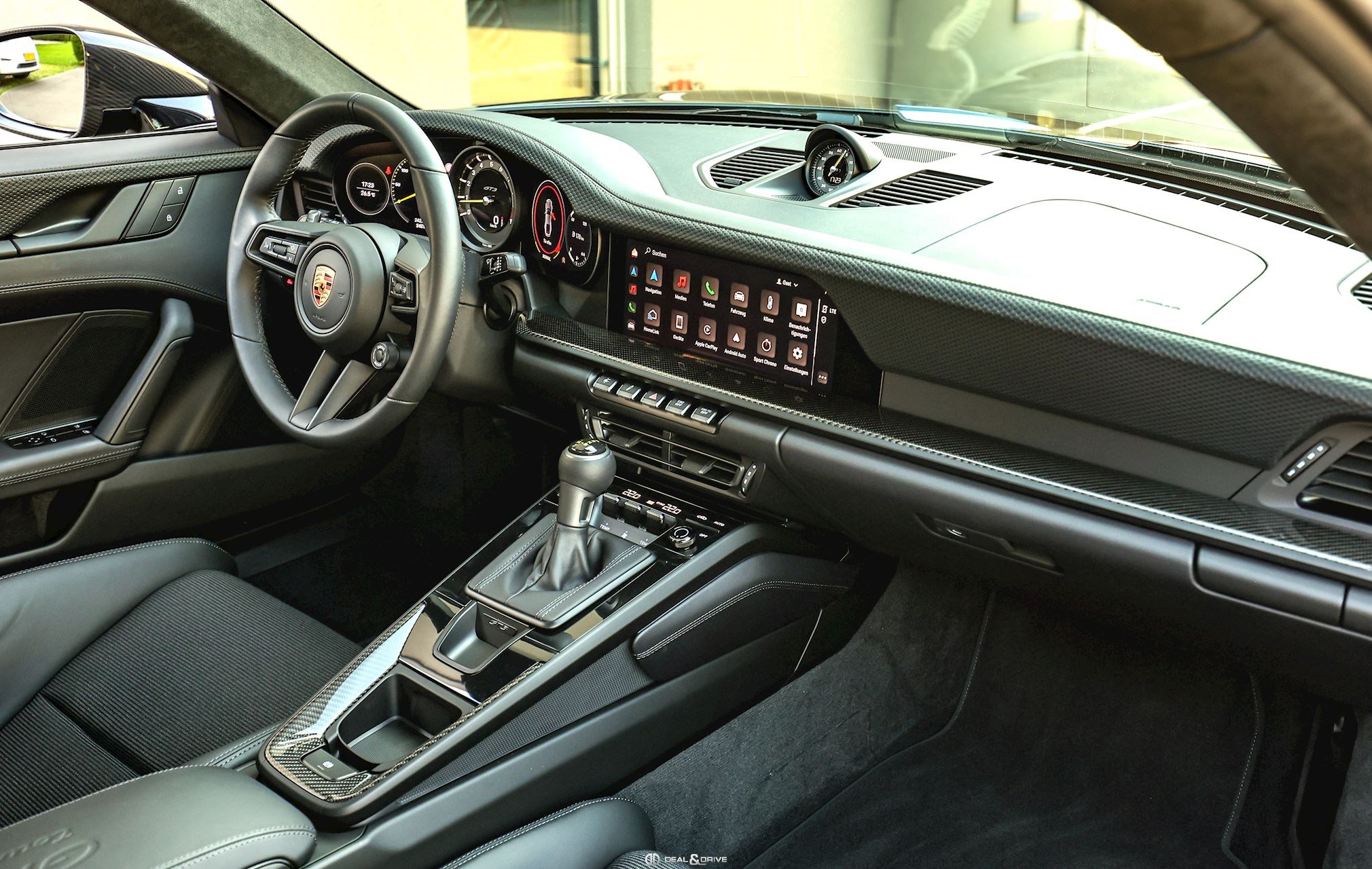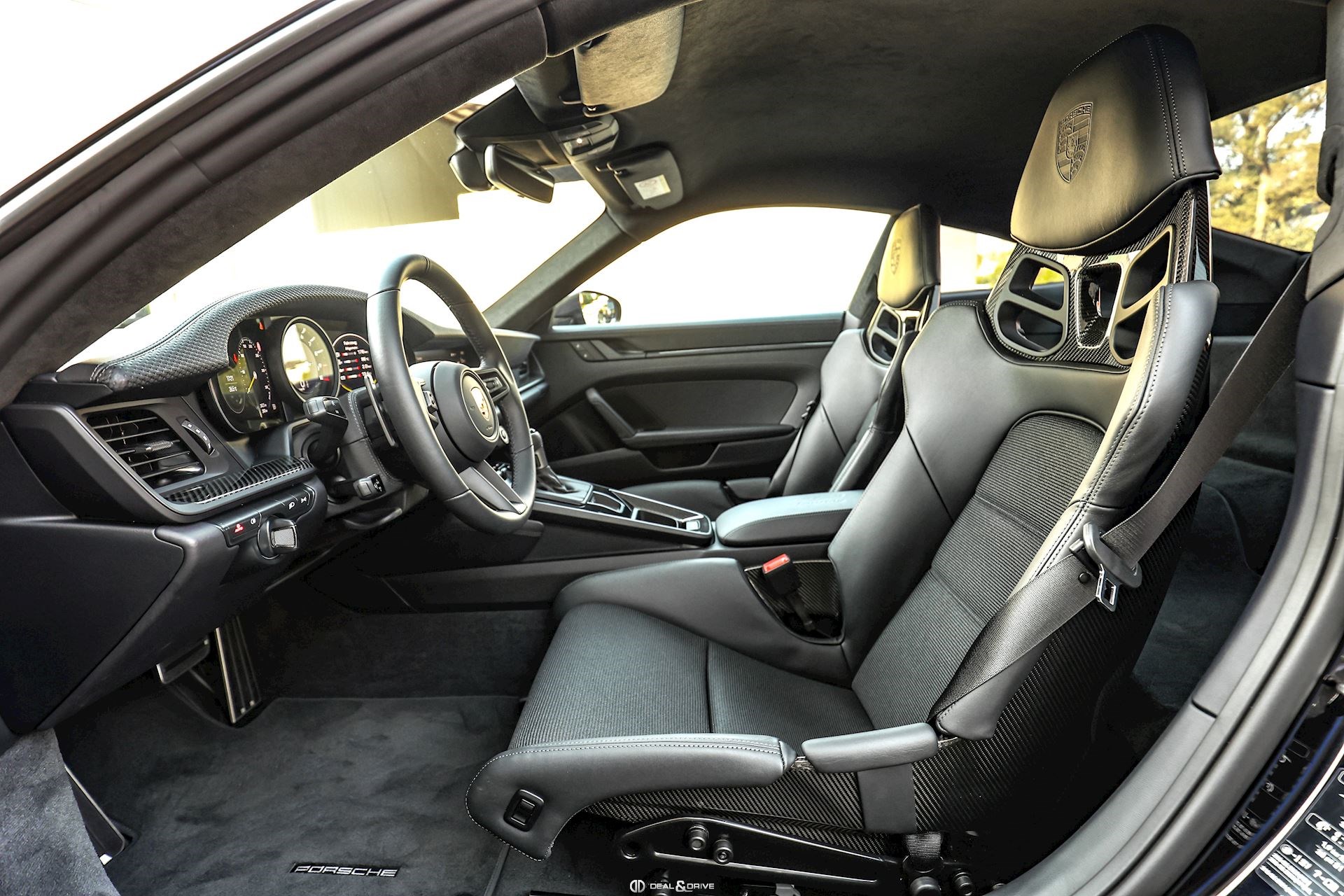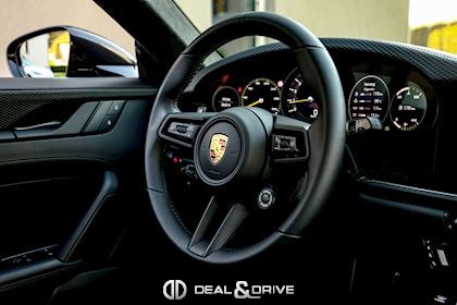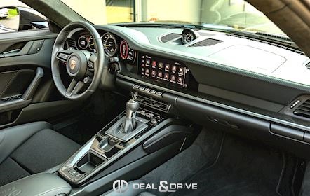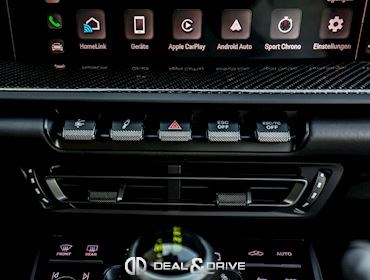 INTÉRIEUR Sièges baquets intégraux en Carbone Accoudoir central en cuir avec inscription « GT3 TOURING » Volant GT Sport en cuir, multifonctions Habillage de colonne de direction en cuir Plafonnier en Race-Tex Emblème Porsche sur les appuie-têtes Climatisation automatique 2 zones Seuils de porte en Carbone avec inscription GT3