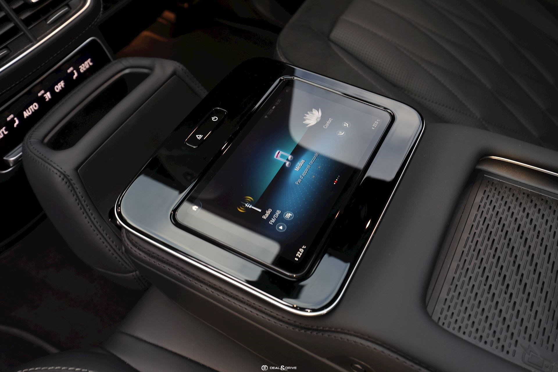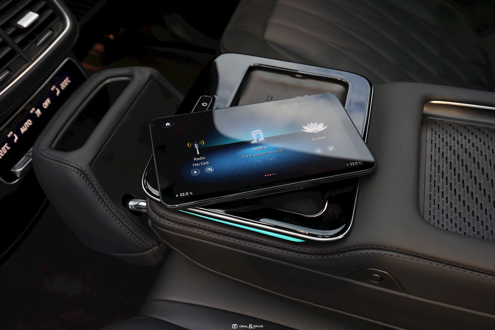 Pack Confort Plus arrière Accoudoir central Confort à l’arrière avec tablette intégrée Ports USB à l’arrière Chargeur à induction pour Smartphone à l’arrière Porte-gobelet à l’arrière chauffant et refroidissant