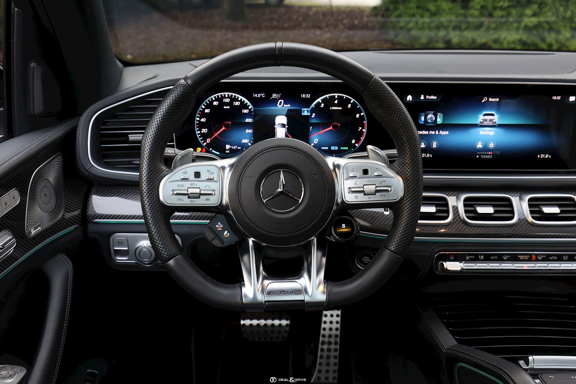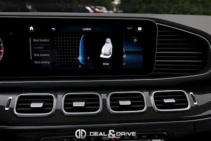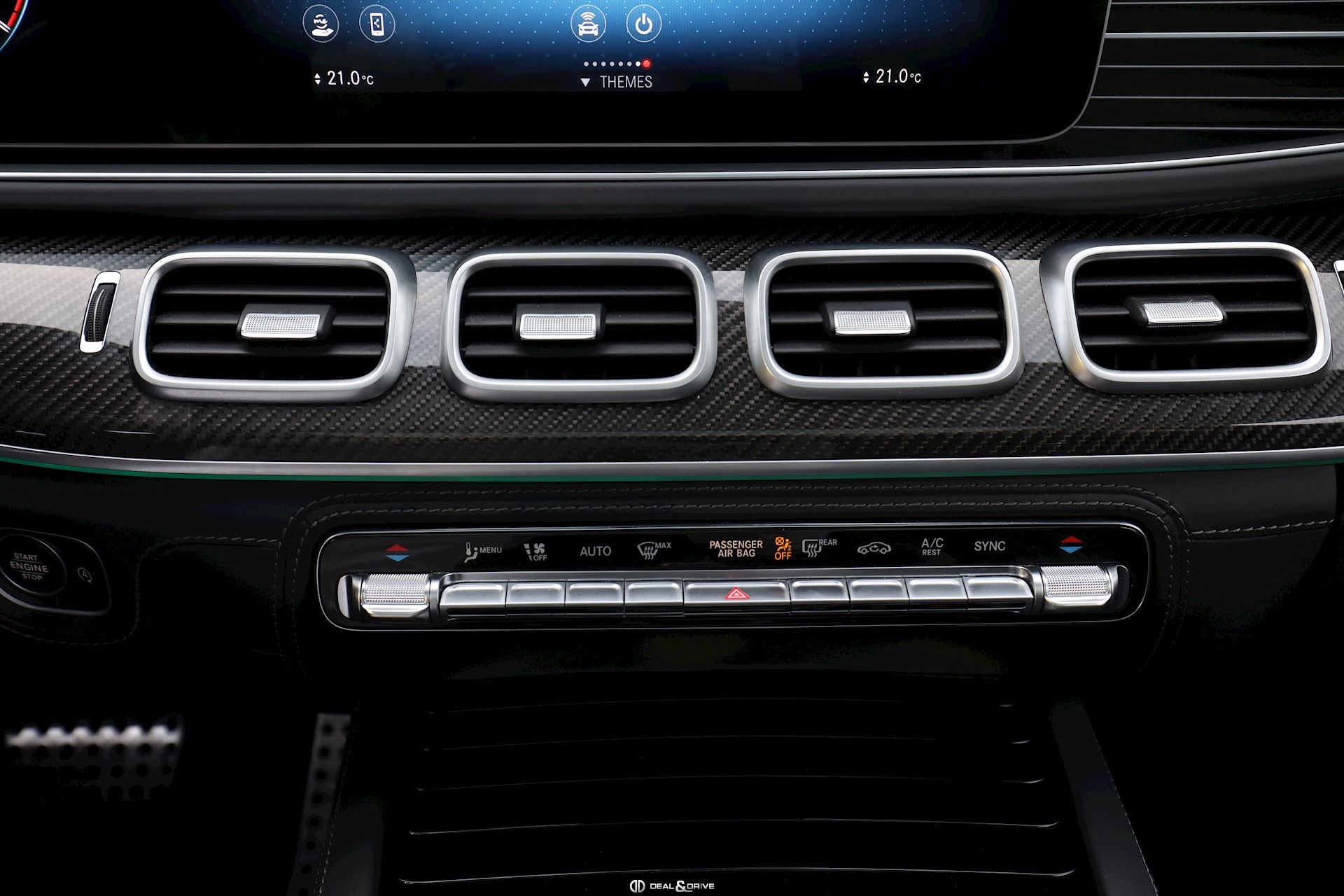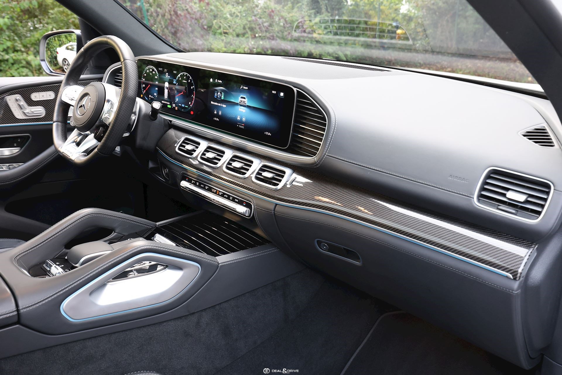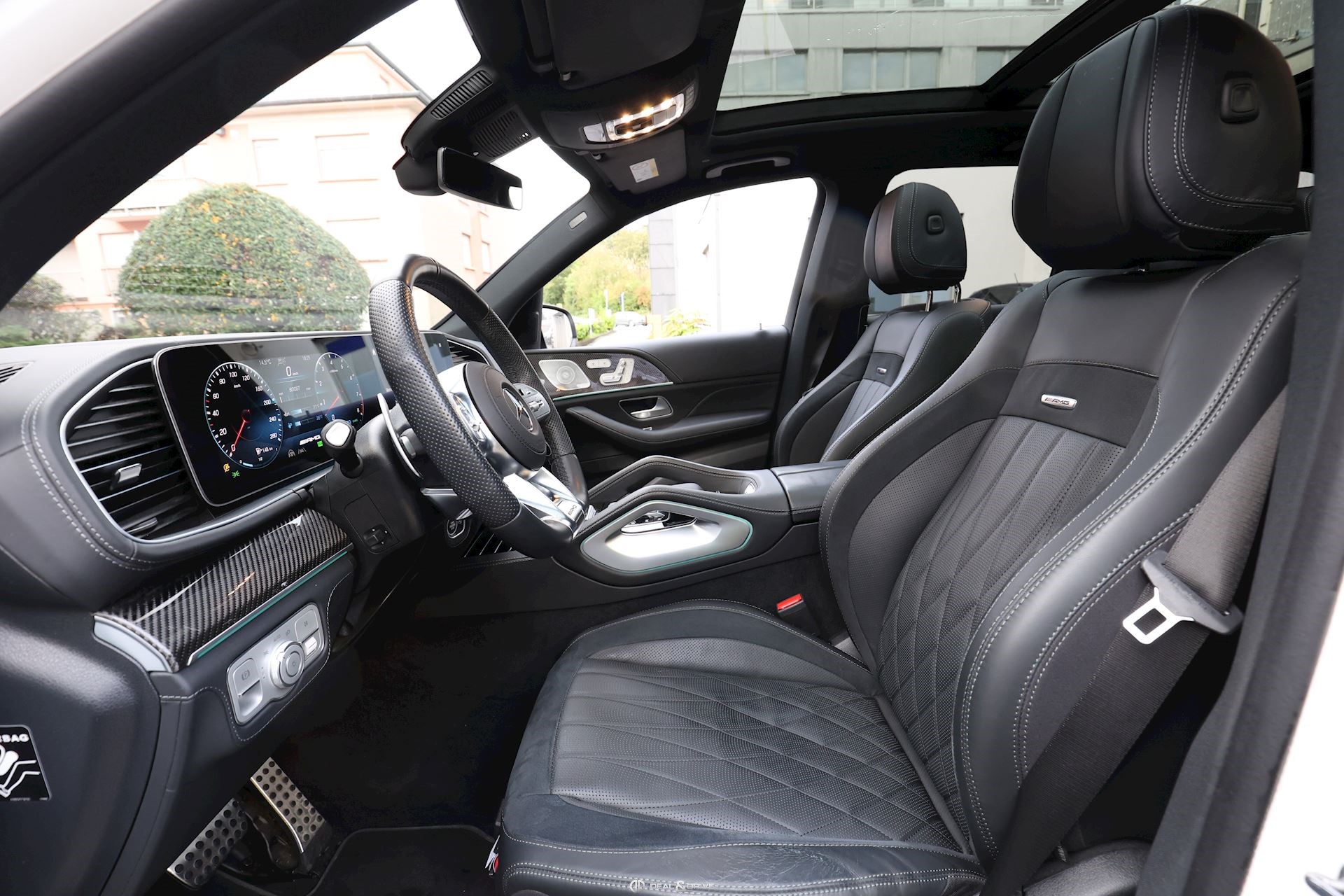 INTÉRIEUR Inserts AMG en Carbone Sellerie en cuir Nappa Exclusif Noir Sièges avant électriques Sièges avant multicontours Sièges avant avec fonction massage Sièges avant ventilés Appuie-lombaires électriques Sièges arrière électriques Volant AMG en cuir, multifonctions Climatisation automatique 4 zones Thermotronic Pare-soleils doubles Partie supérieure de la planche de bord en cuir Nappa Supports à boisson avec fonction réfrigérante et chauffante Seuils de porte en Aluminium, éclairés Pédales en Acier inox Design Sport Tapis de sol AMG Plafonnier Noir