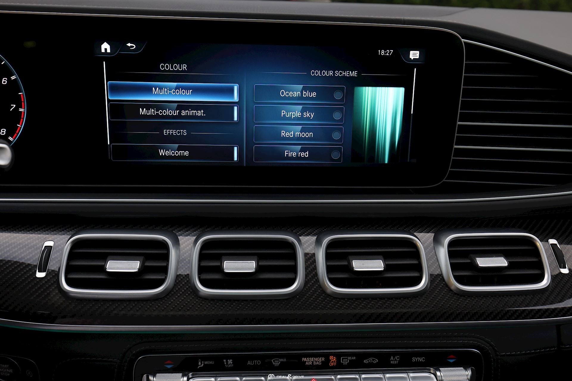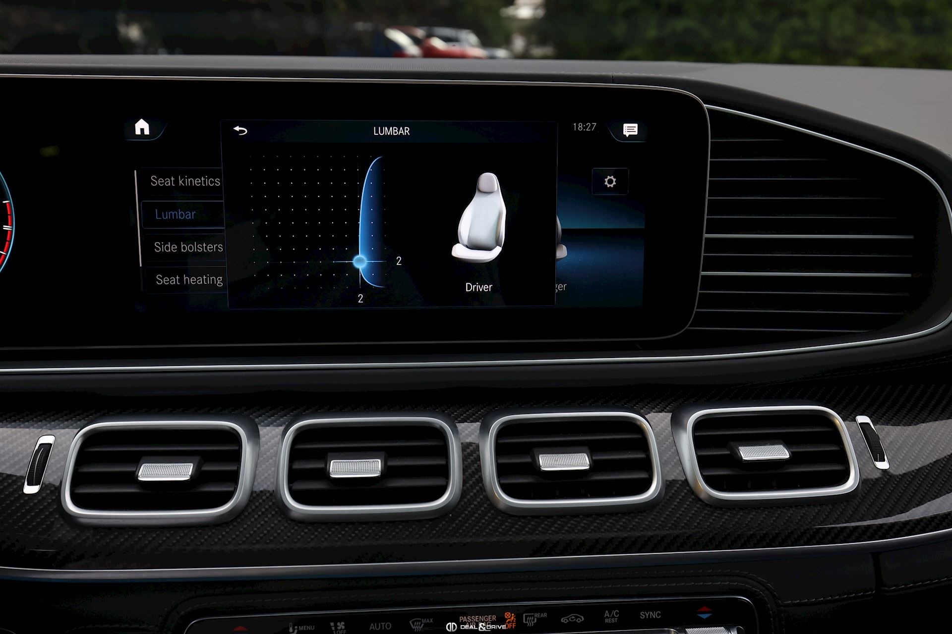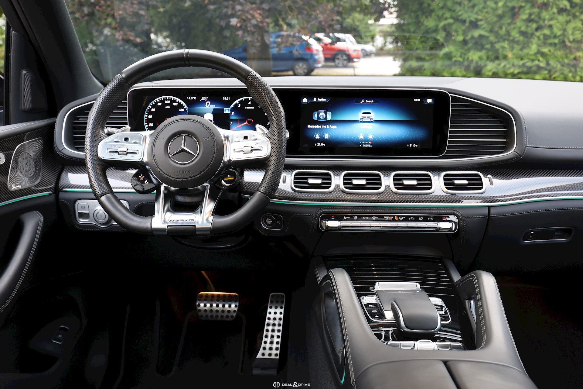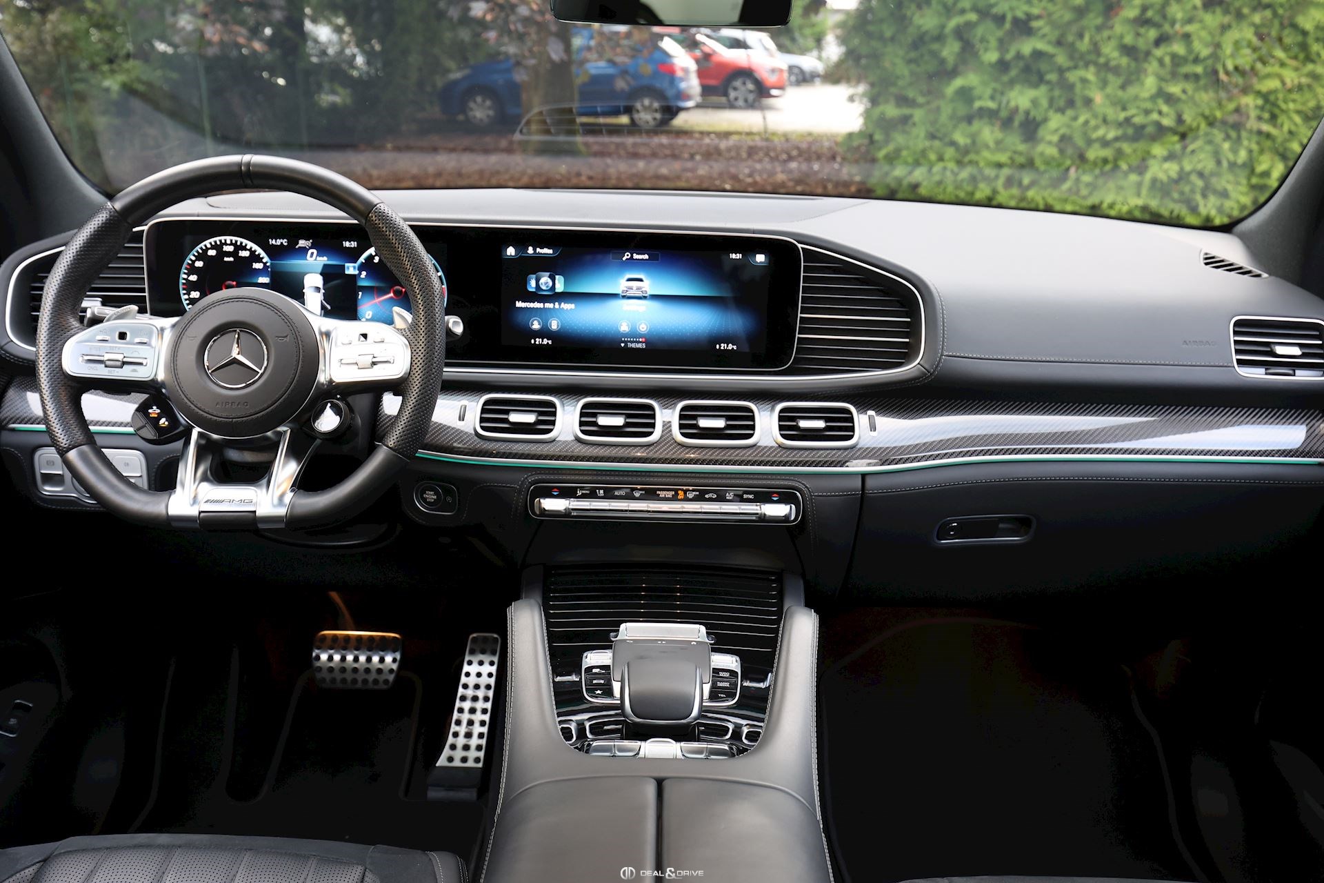 INTÉRIEUR Inserts AMG en Carbone Sellerie en cuir Nappa Exclusif Noir Sièges avant électriques Sièges avant multicontours Sièges avant avec fonction massage Sièges avant ventilés Appuie-lombaires électriques Sièges arrière électriques Volant AMG en cuir, multifonctions Climatisation automatique 4 zones Thermotronic Pare-soleils doubles Partie supérieure de la planche de bord en cuir Nappa Supports à boisson avec fonction réfrigérante et chauffante Seuils de porte en Aluminium, éclairés Pédales en Acier inox Design Sport Tapis de sol AMG Plafonnier Noir