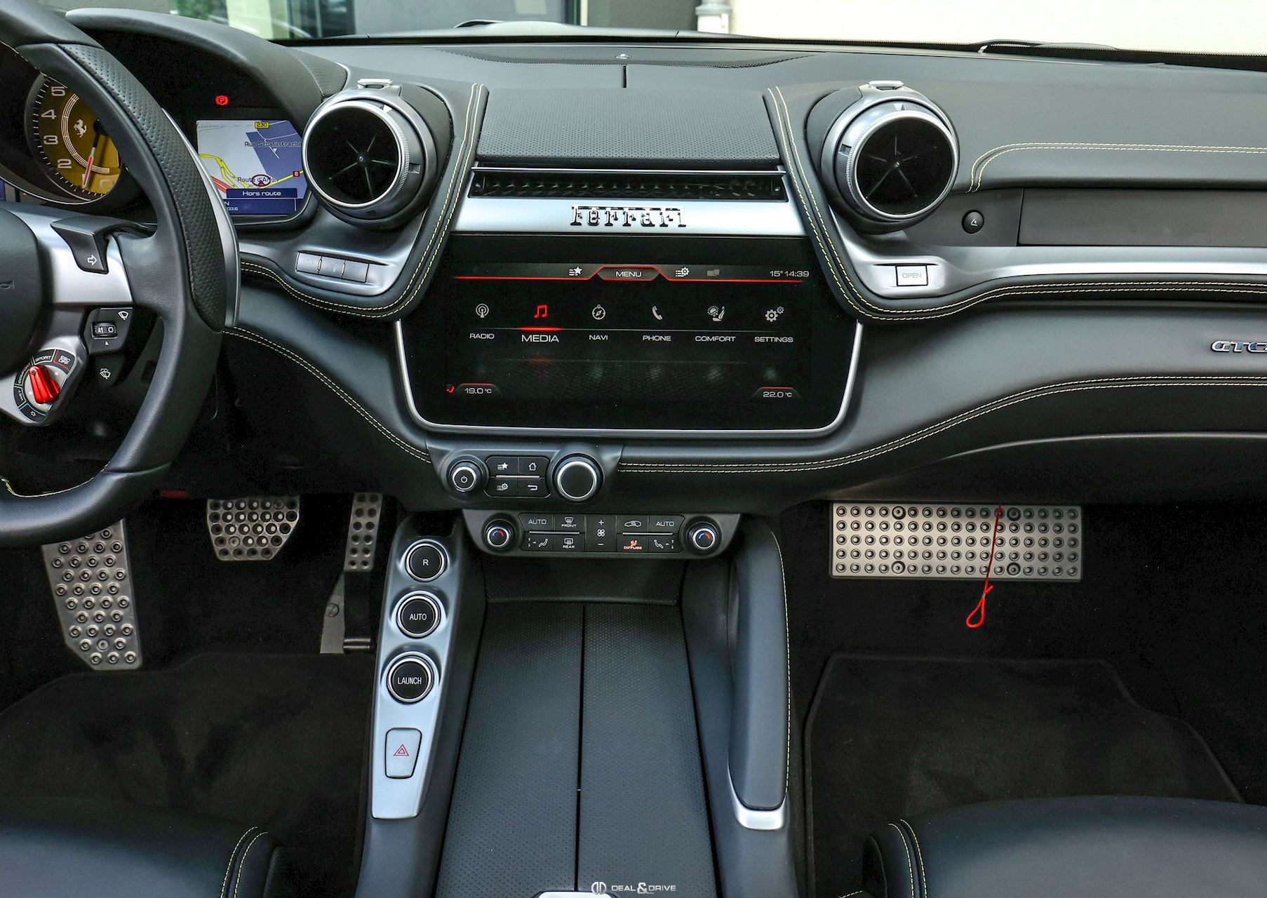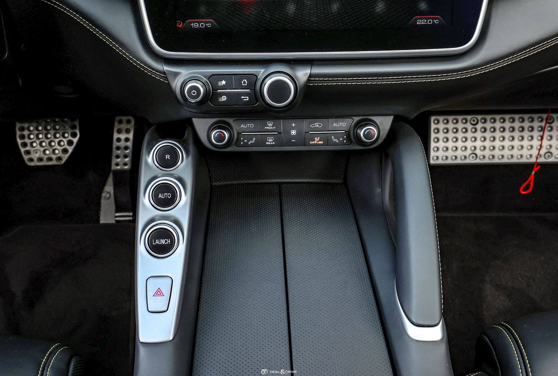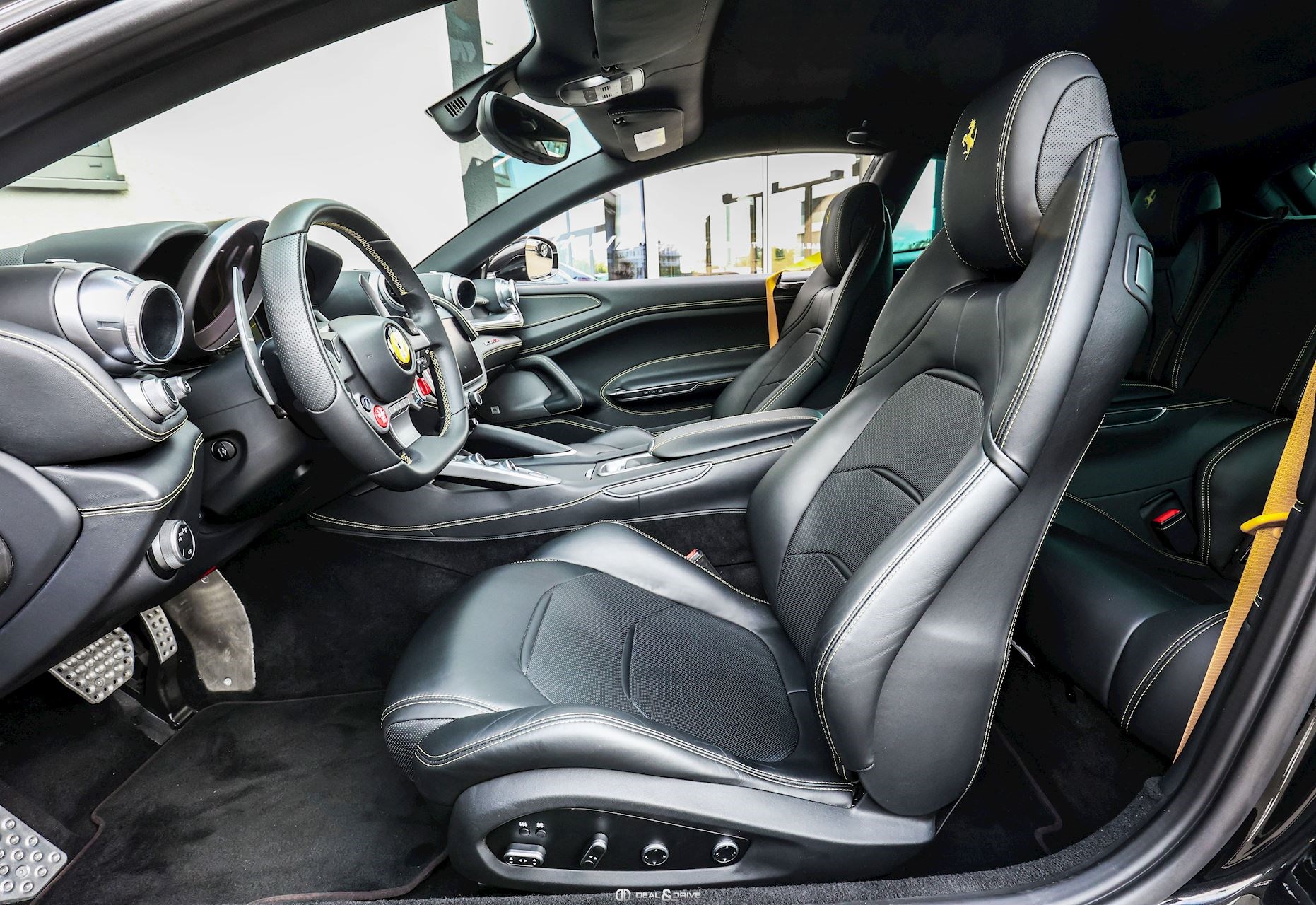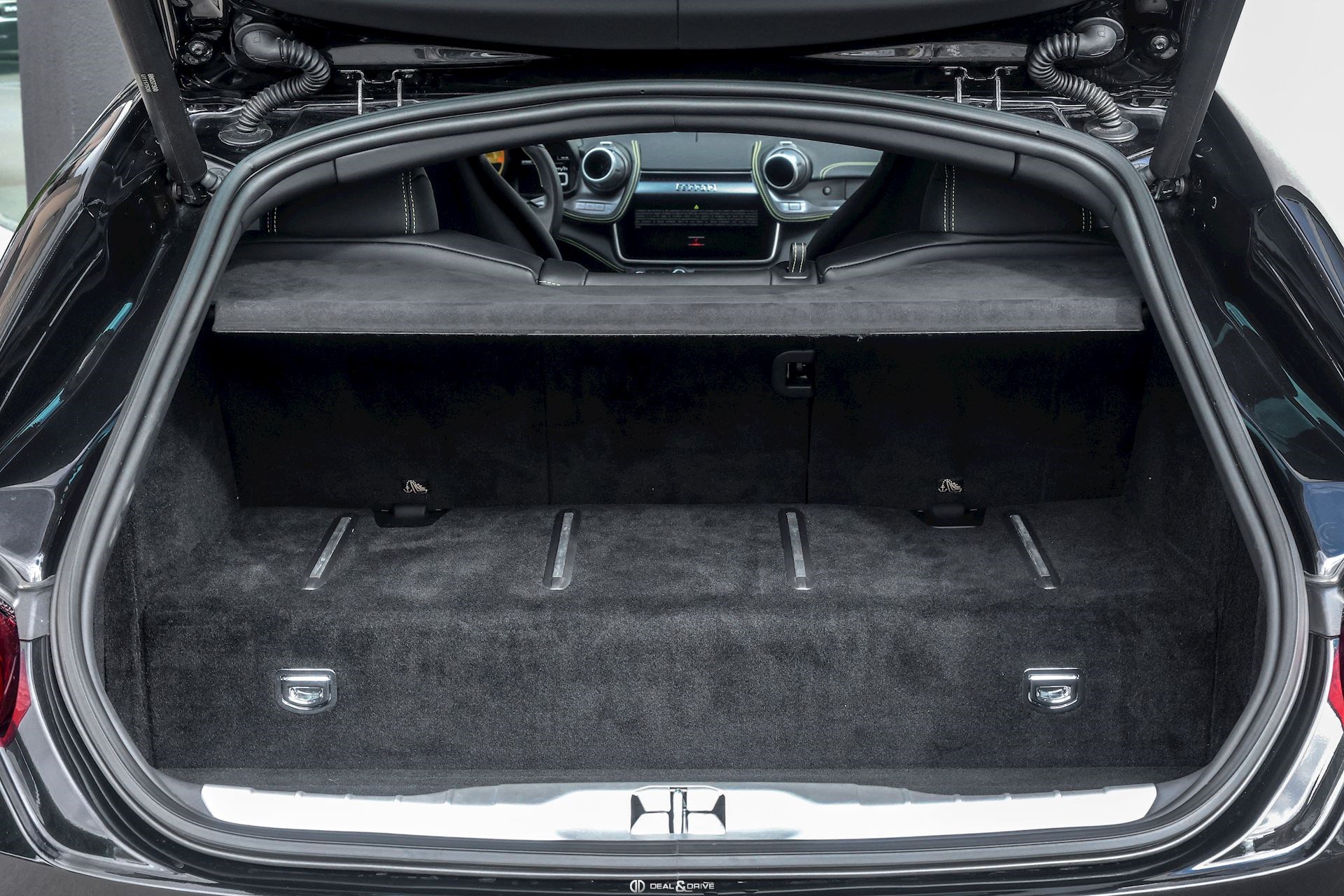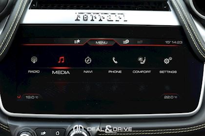 Caches moyeux Ferrari en couleur Ports USB Logos Ferrari en Noir à l’avant et à l’arrière Radio numérique DAB Aides au stationnement avant et arrière Freins céramiques Sièges avant avec fonction mémoire Sièges avant chauffants Appuie-lombaires électriques Volant en cuir, multifonctions Volant réglable électriquement Climatisation automatique 2 zones Ports USB Système de commande vocale Interface Bluetooth Système de navigation Régulateur de vitesse Feux de croisement automatiques Rétroviseurs extérieurs électriques Rétroviseurs extérieurs rabattables électriquement Seuils de porte Ferrari en Aluminium Hayon électrique