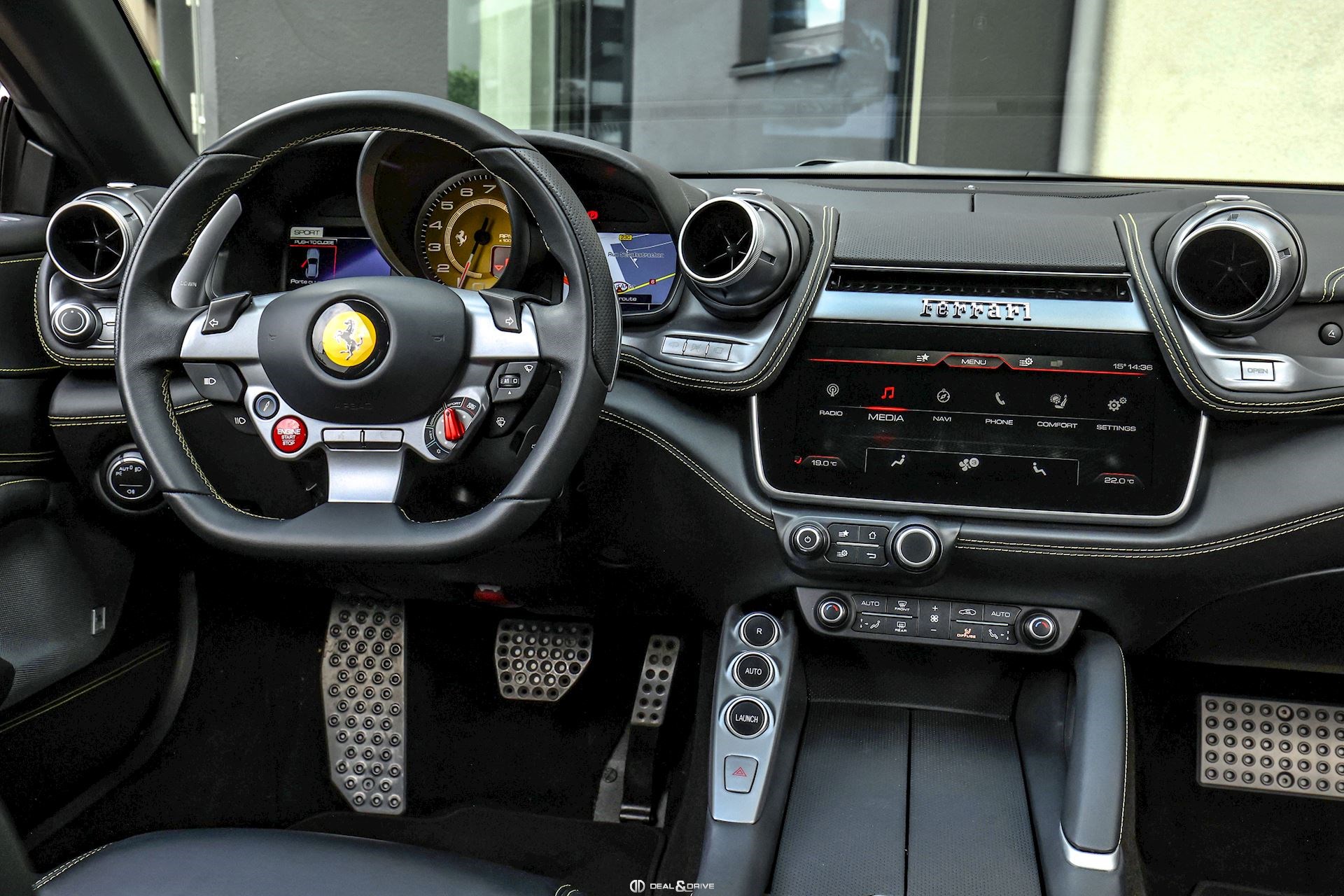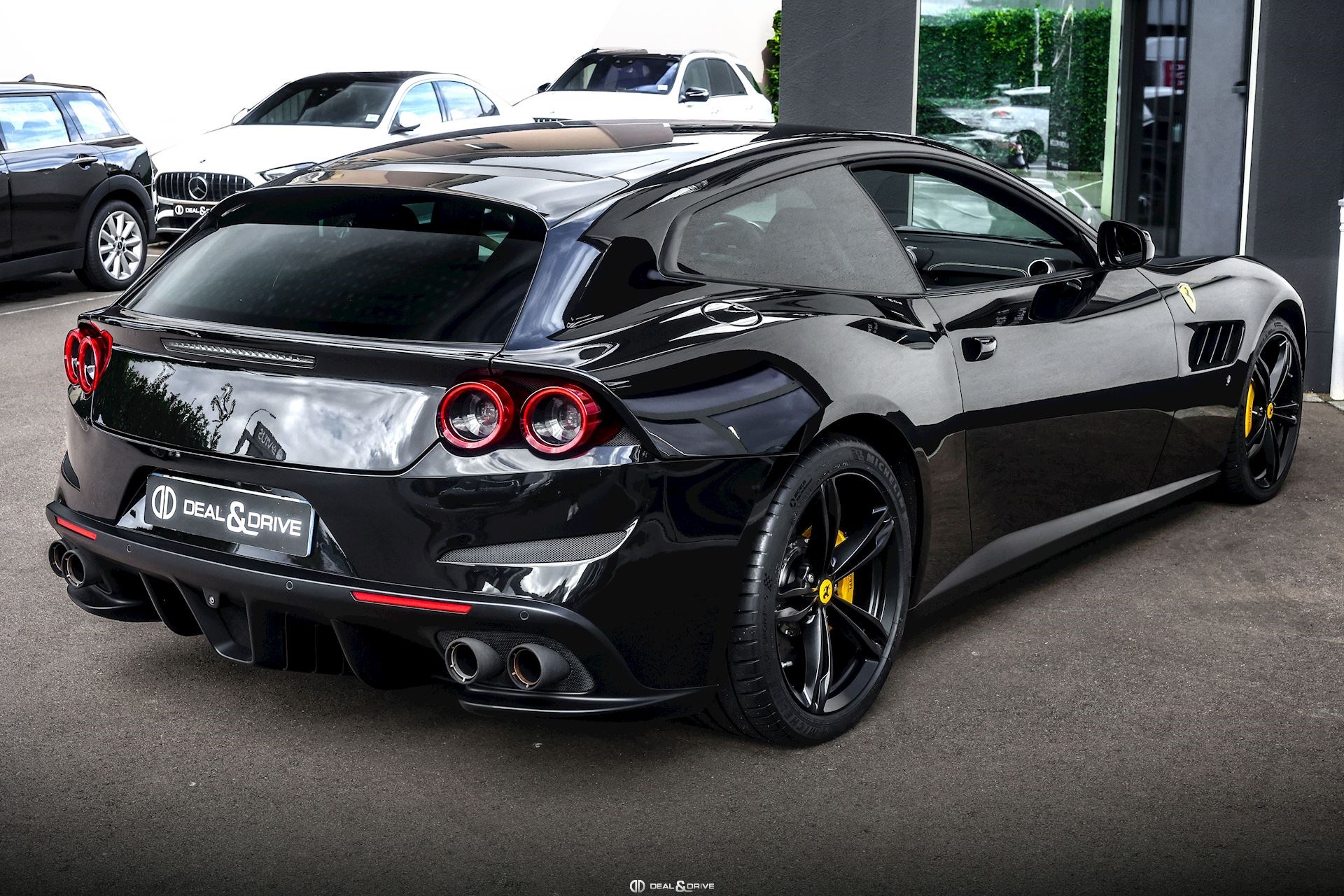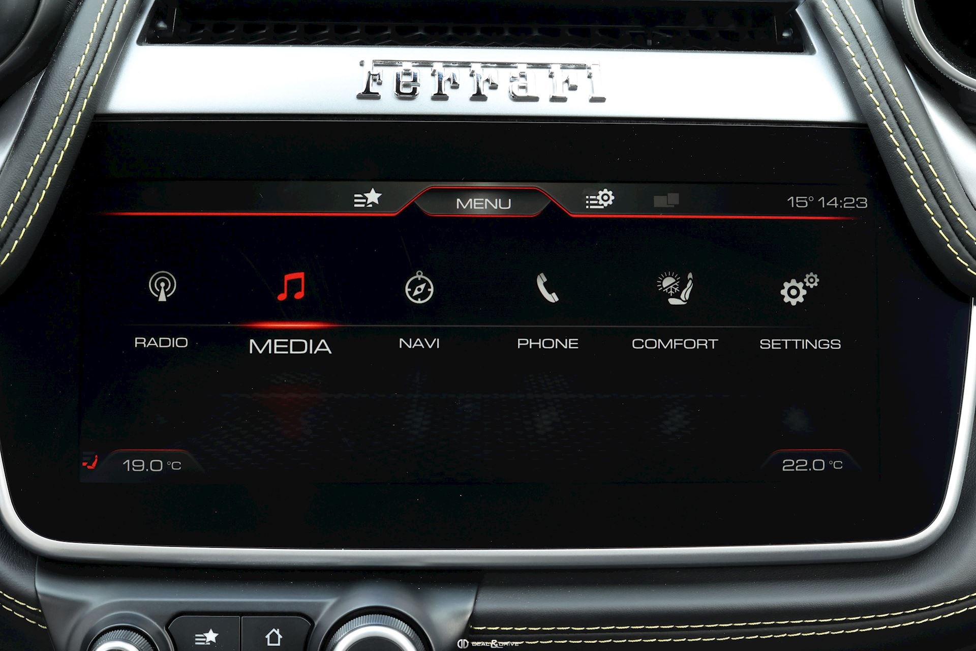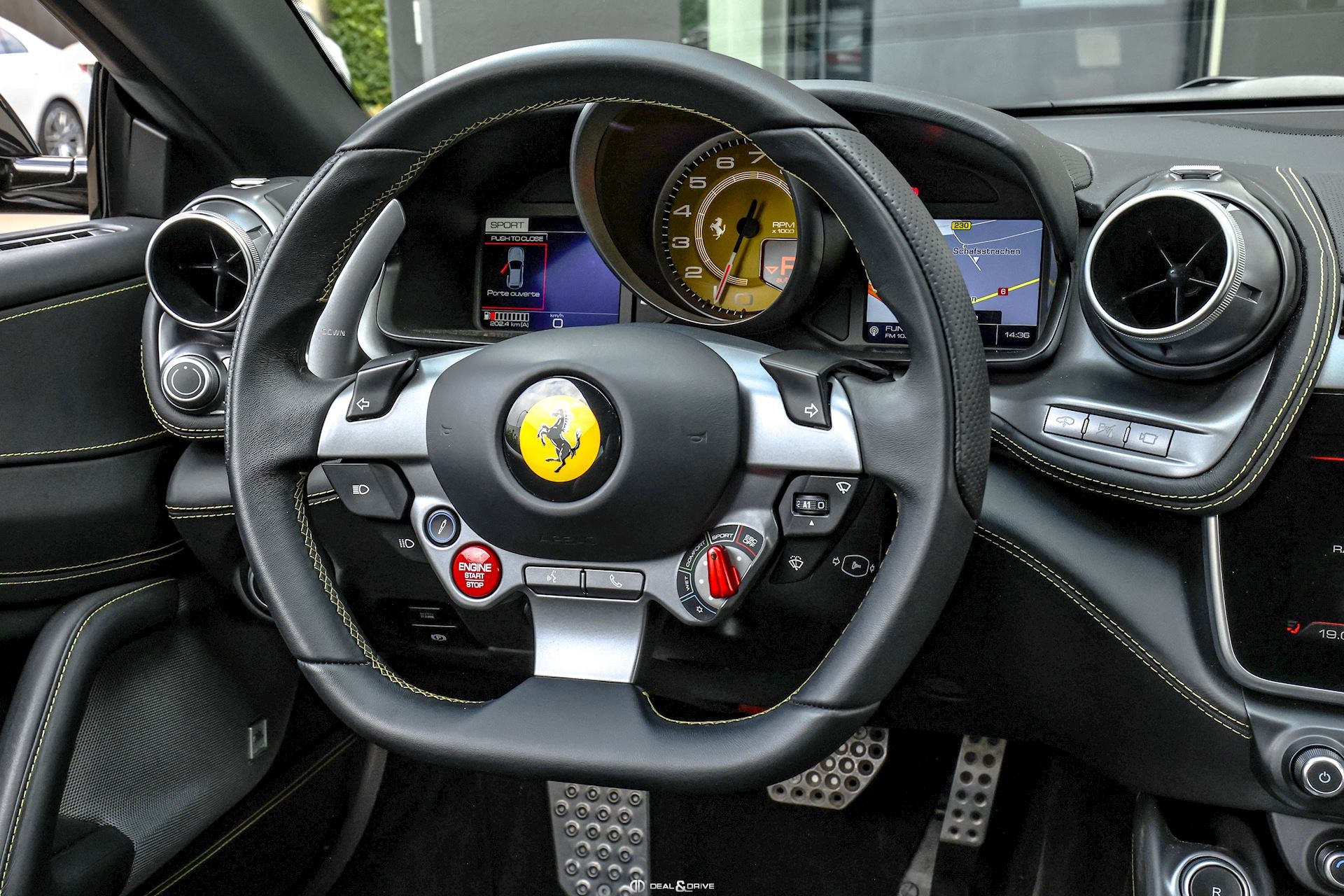 Caches moyeux Ferrari en couleur Ports USB Logos Ferrari en Noir à l’avant et à l’arrière Radio numérique DAB Aides au stationnement avant et arrière Freins céramiques Sièges avant avec fonction mémoire Sièges avant chauffants Appuie-lombaires électriques Volant en cuir, multifonctions Volant réglable électriquement Climatisation automatique 2 zones Ports USB Système de commande vocale Interface Bluetooth Système de navigation Régulateur de vitesse Feux de croisement automatiques Rétroviseurs extérieurs électriques Rétroviseurs extérieurs rabattables électriquement Seuils de porte Ferrari en Aluminium Hayon électrique