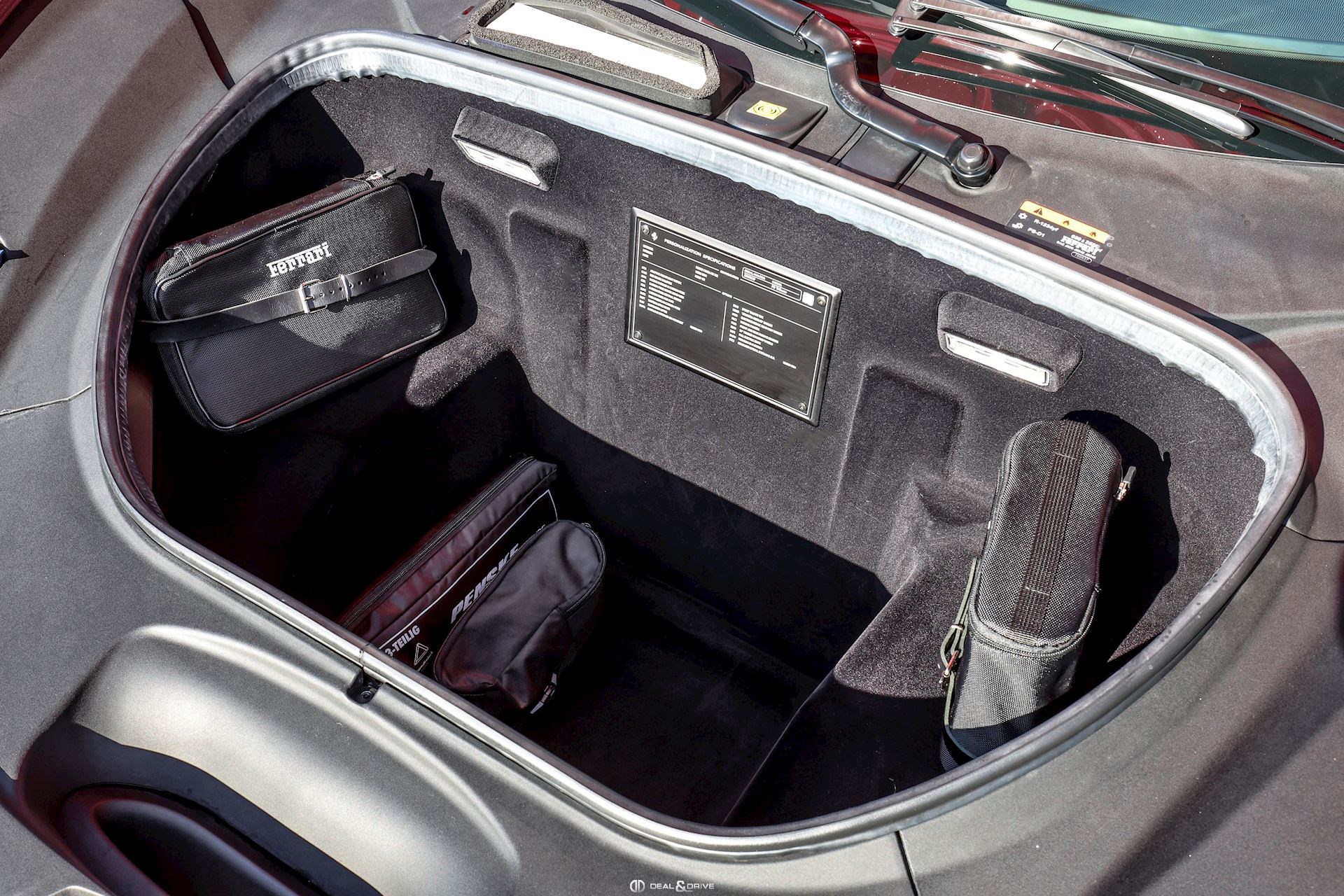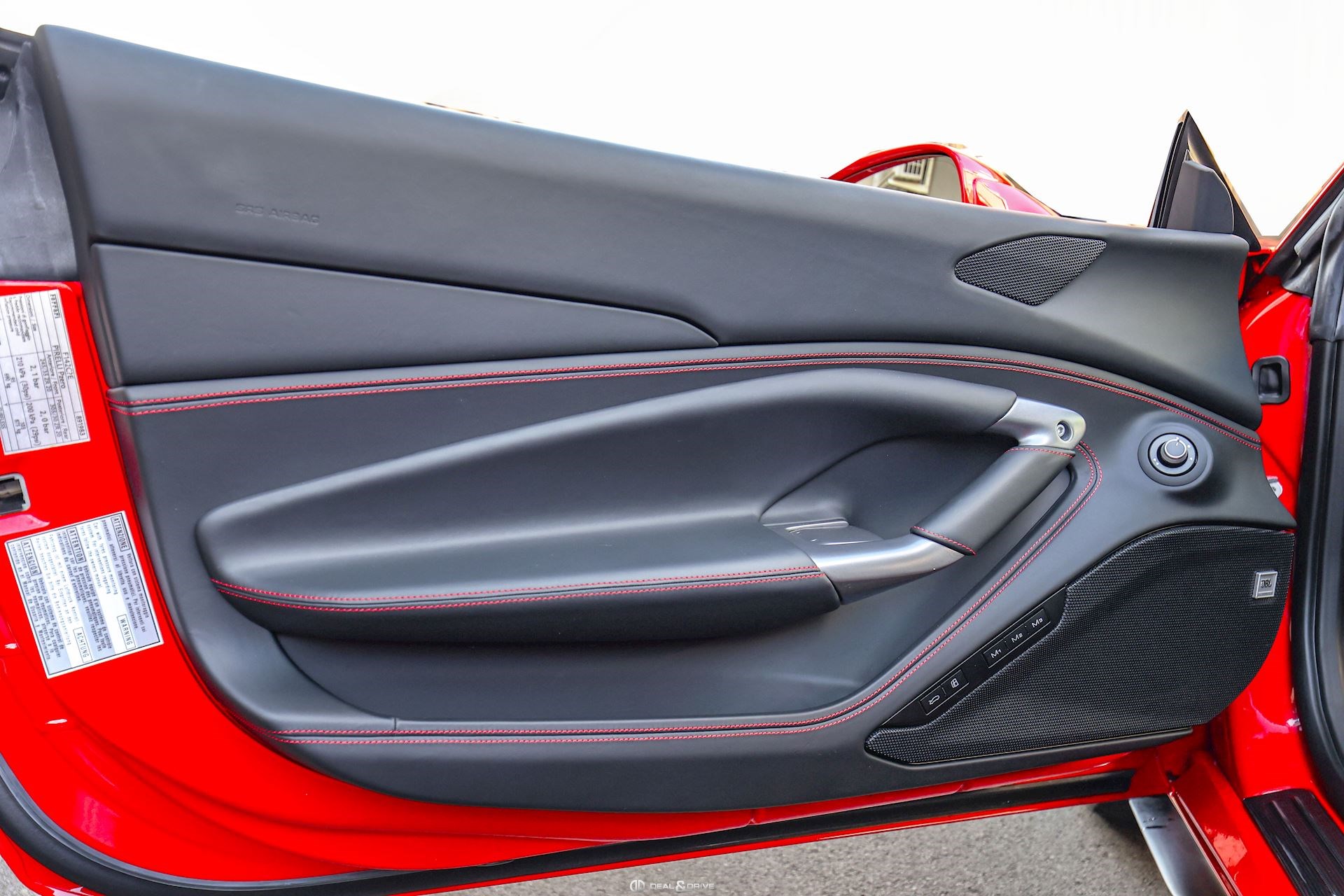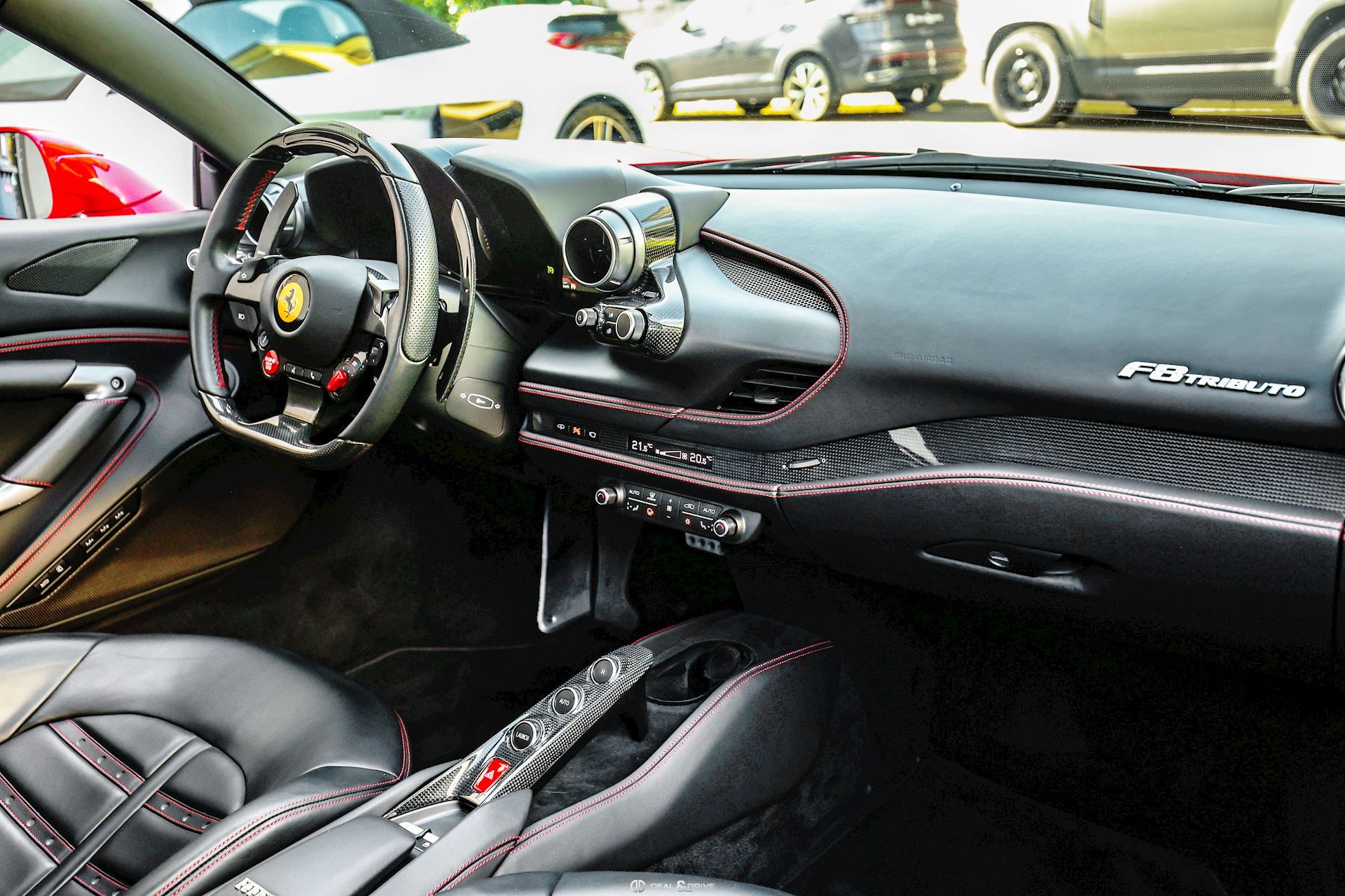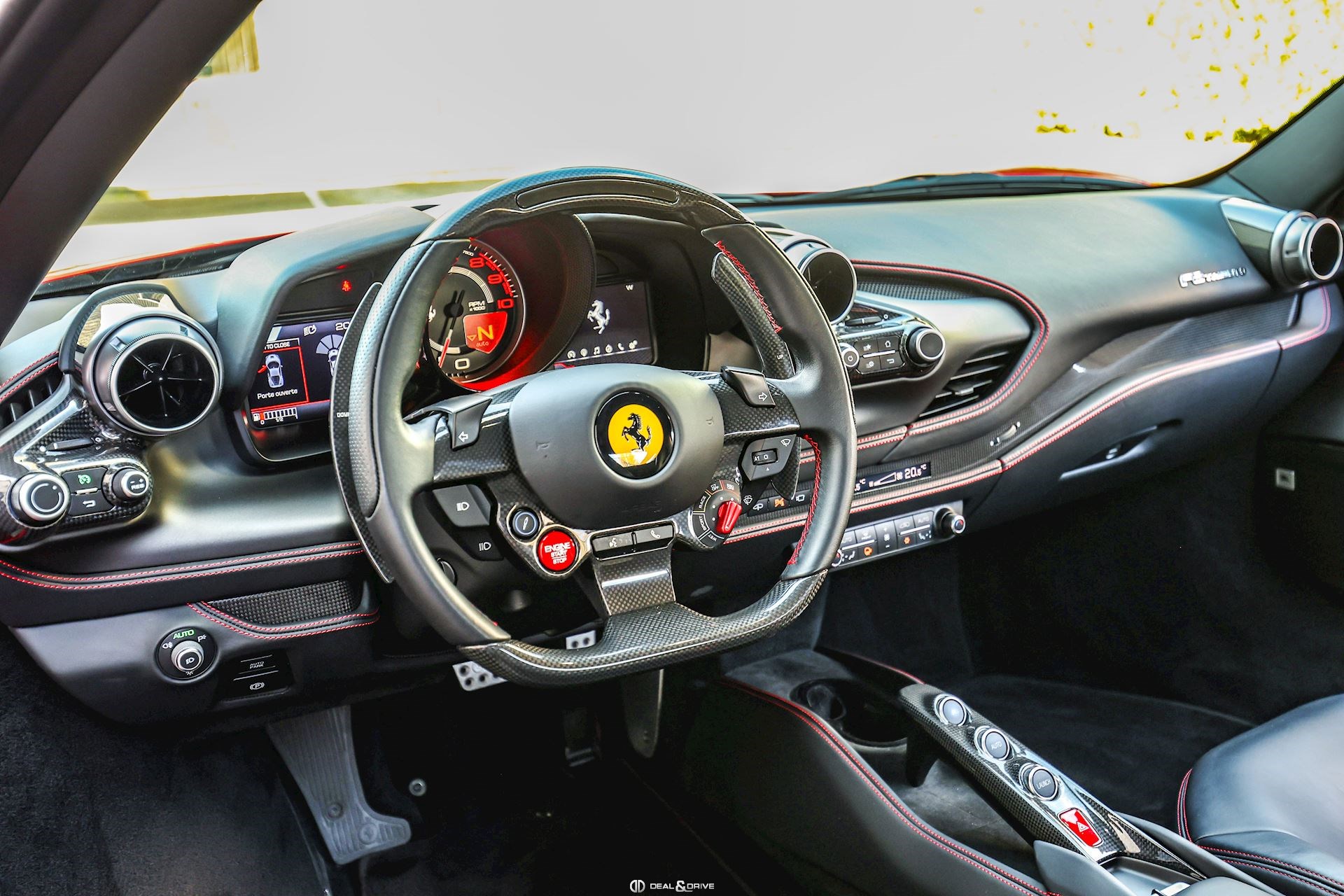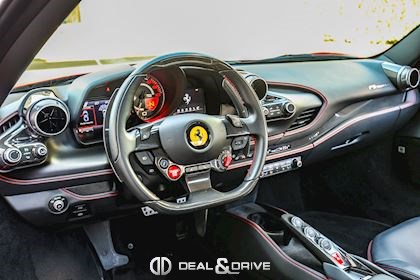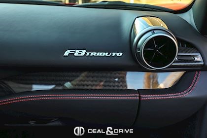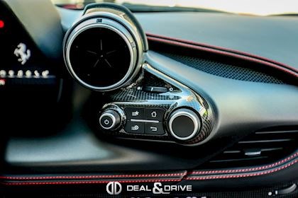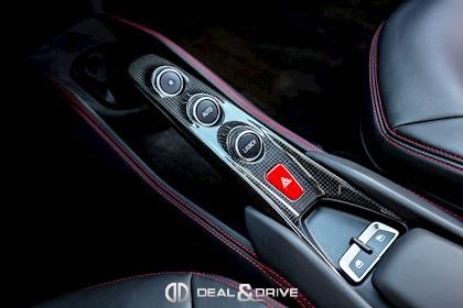 ELEV Système de levage de l’essieu avant Lift System CALR Étriers de frein en Rouge CUPC Caches moyeux en Carbone EXA3 Sorties d’échappement Sport LOGO Emblème « SCUDERIA FERRARI » sur les ailes avant RSFD Jantes forgées 20’’ Diamond AFS1 Système de feux avant adaptatifs avec feux de croisement et de route automatiques MIR3 Rétroviseur intérieur avec fonction anti-éblouissement PAC1 Caméra de recul PAR2 Aides au stationnement avant et arrière CFPA Palettes au volant Racing en Carbone CIDL Zone conducteur en Carbone + LEDS CILR Tunnel central en Carbone DATR Inserts du tableau de bord en Carbone DAYT Sièges Style Daytona EMPH CAVALLINO brodé sur les appuie-têtes en Rosso 0504 RSFE Sièges électriques, chauffants STC2 Surpiqûres spéciales en ROSSO 0504 MATS Tapis de sol en NERO 152 SNDH Système audio Premium Hi-Fi JBL