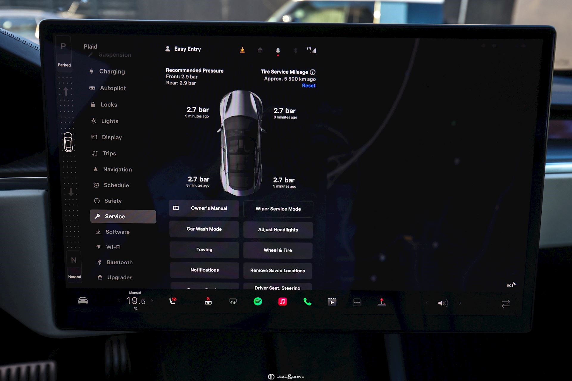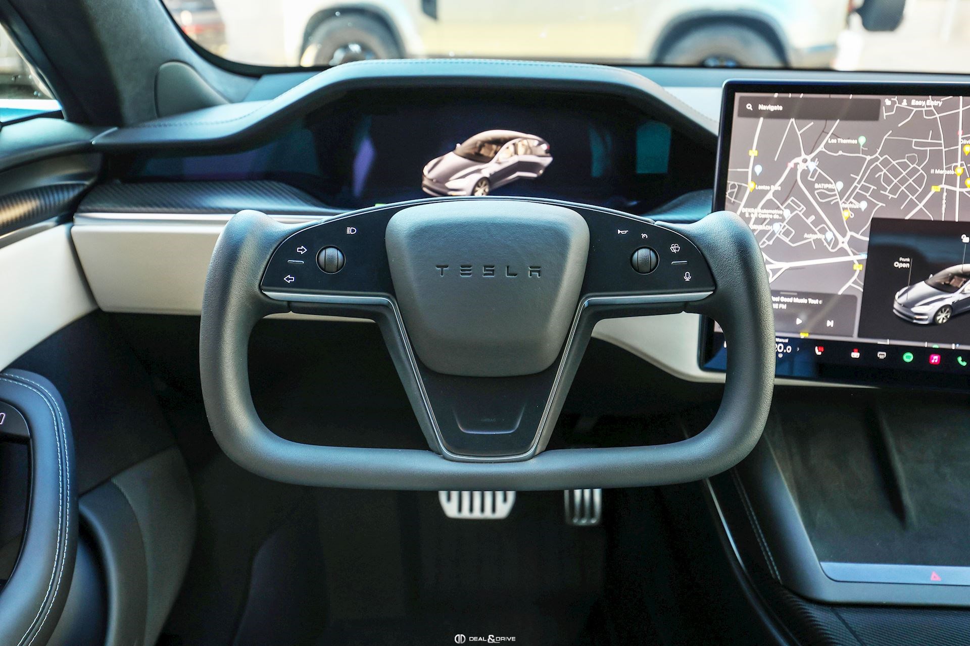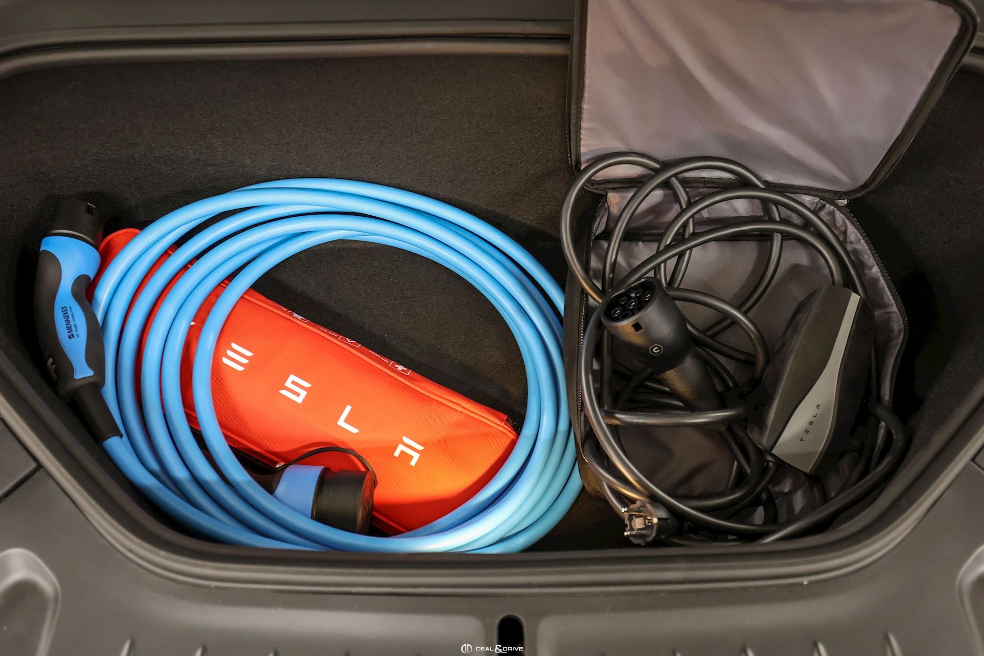 Accessoires : Film de protection XPEL sur face avant : pare-chocs avant, capot, coques des rétroviseurs extérieurs, ailes avant, pare-chocs arrière Câbles de recharge Tapis de sol caoutchouc Jeu de roue hiver 19'' Tesla en extra