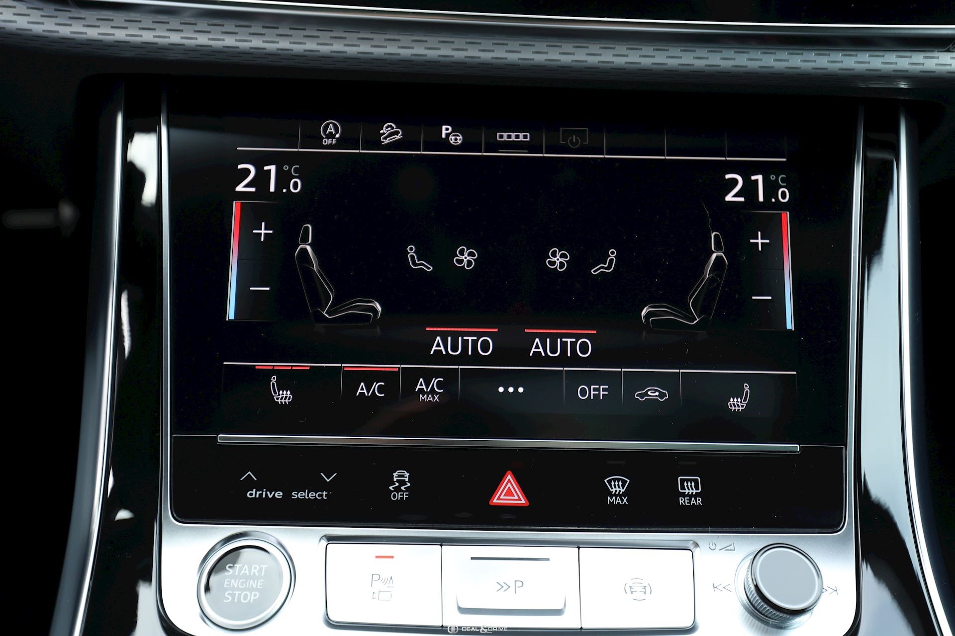 INTÉRIEUR Climatisation automatique 4 zones Dossier arrière fractionné, coulissante, 40:20:40 Inserts en Aluminium mat brossé Sièges avant Sport Plus Sièges avant électriques Appuie-lombaires électriques Volant Sport en cuir, 3 branches, multifonctions Volant chauffant Accoudoir central AV équipement confort Tapis de sol