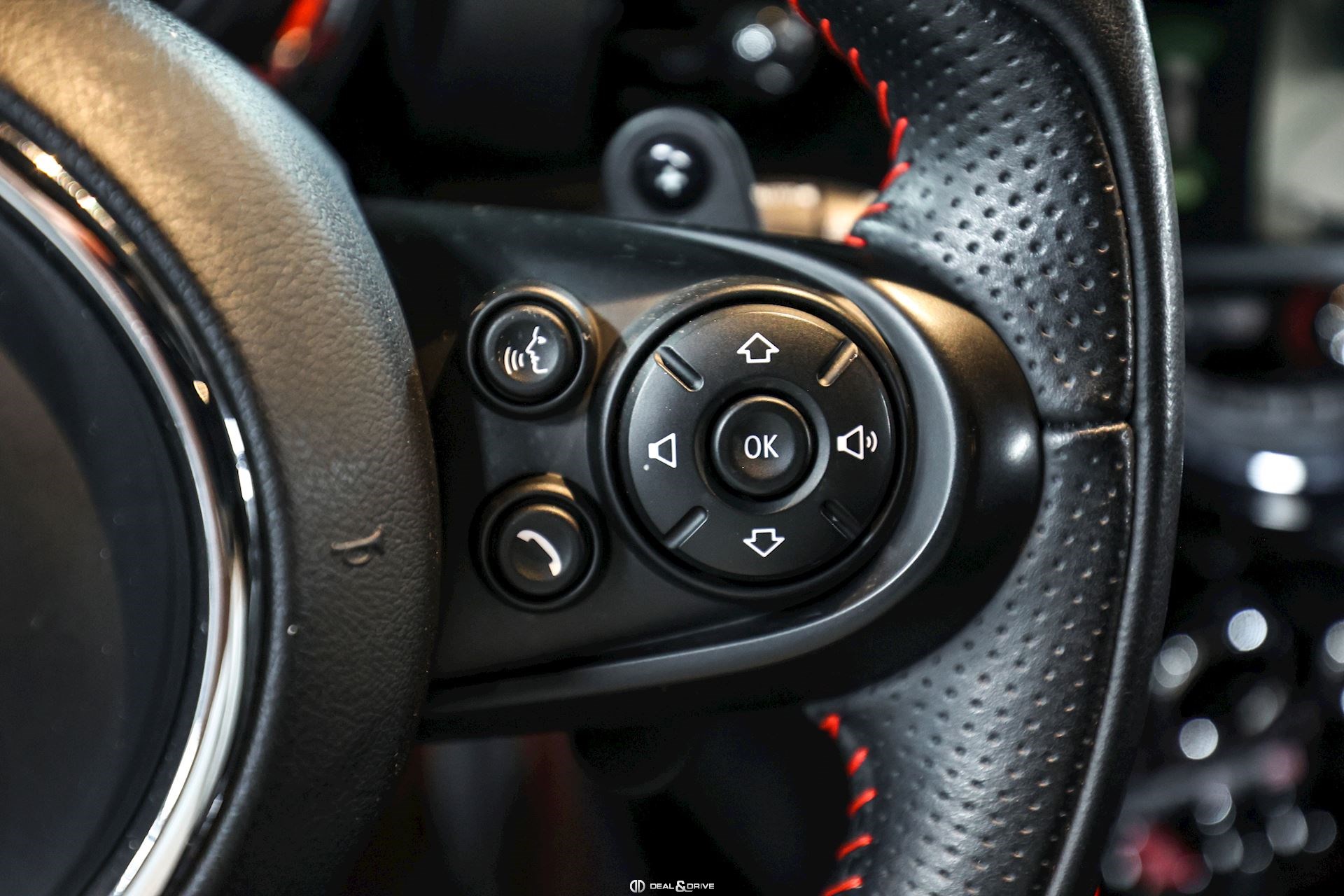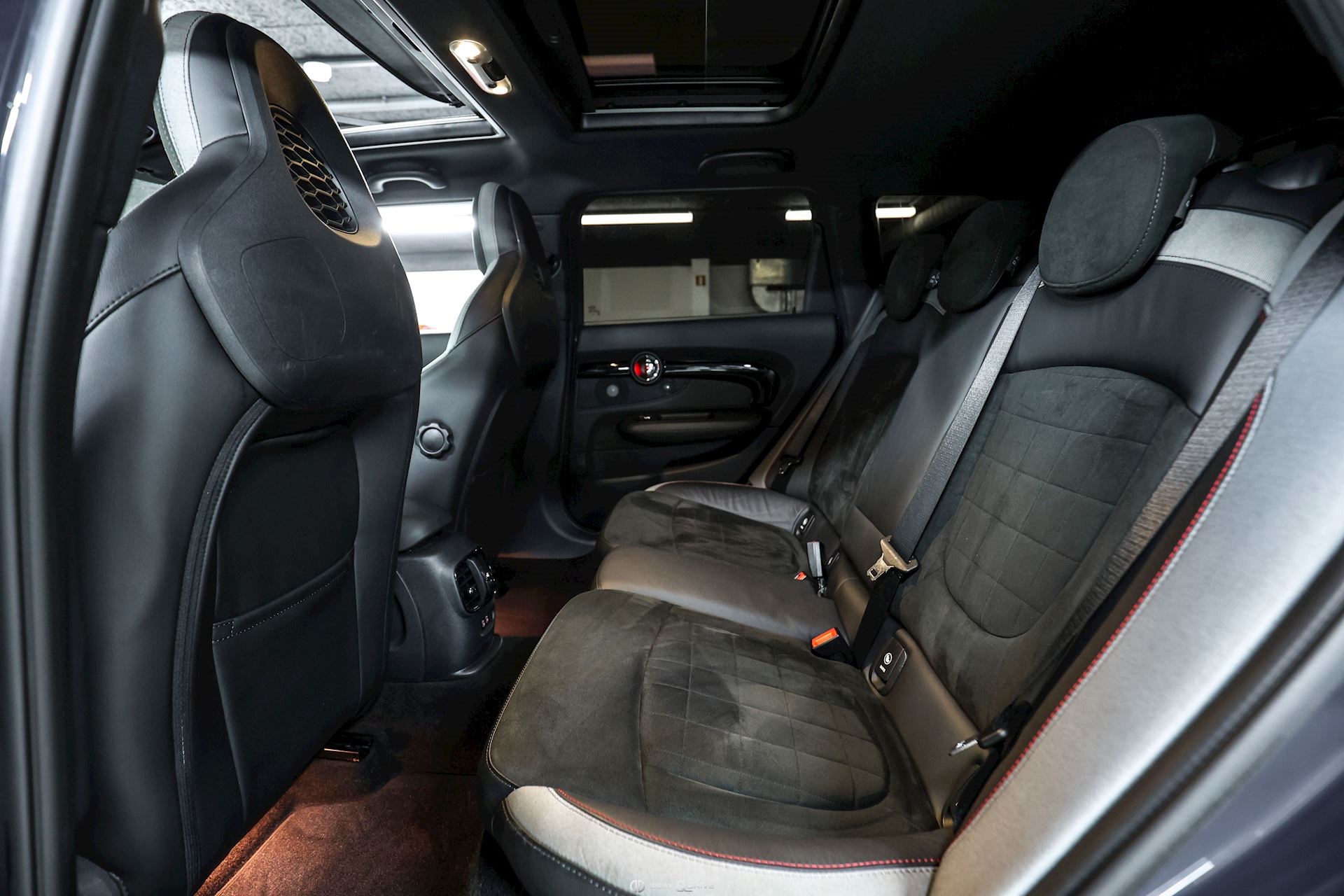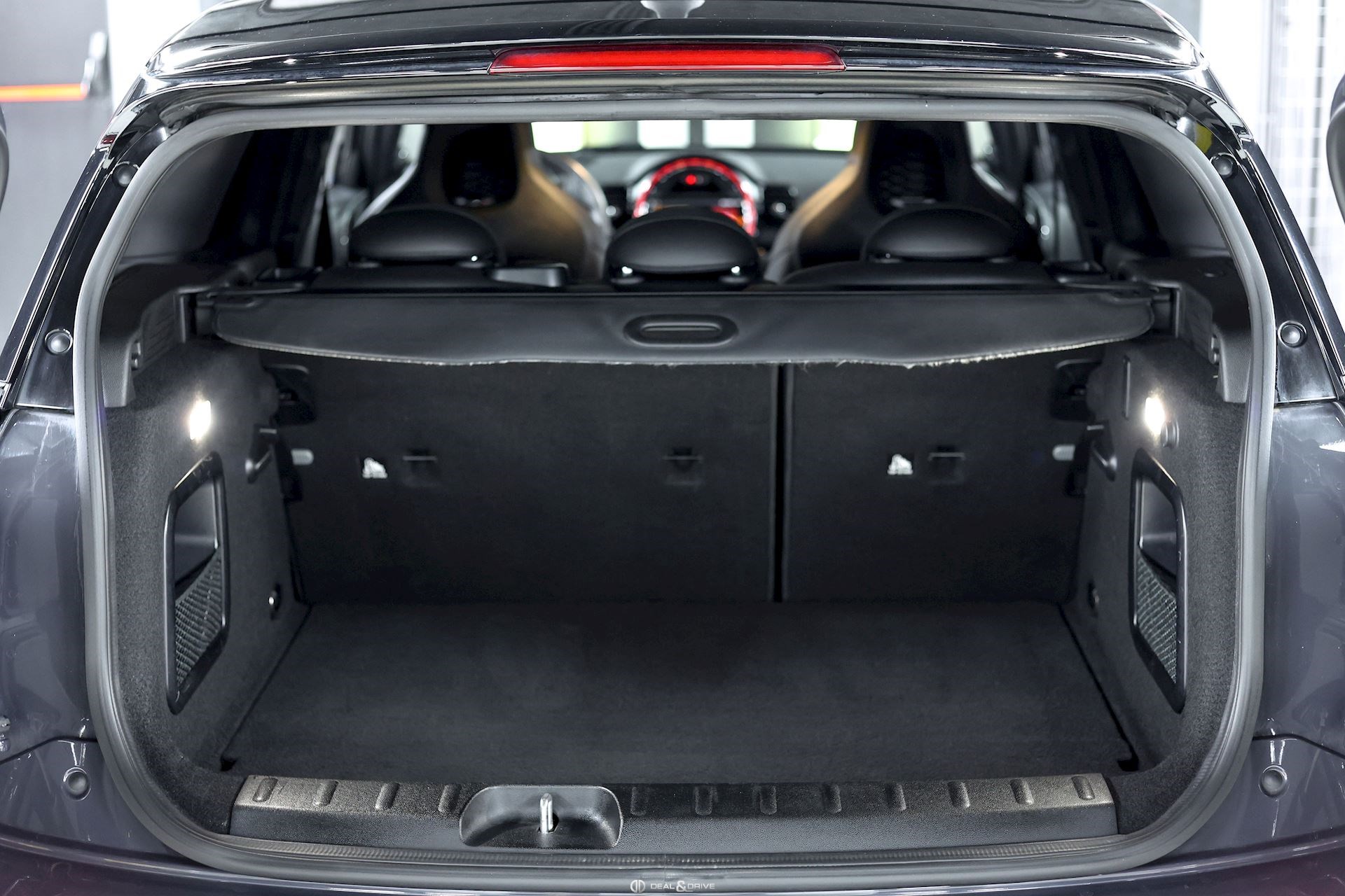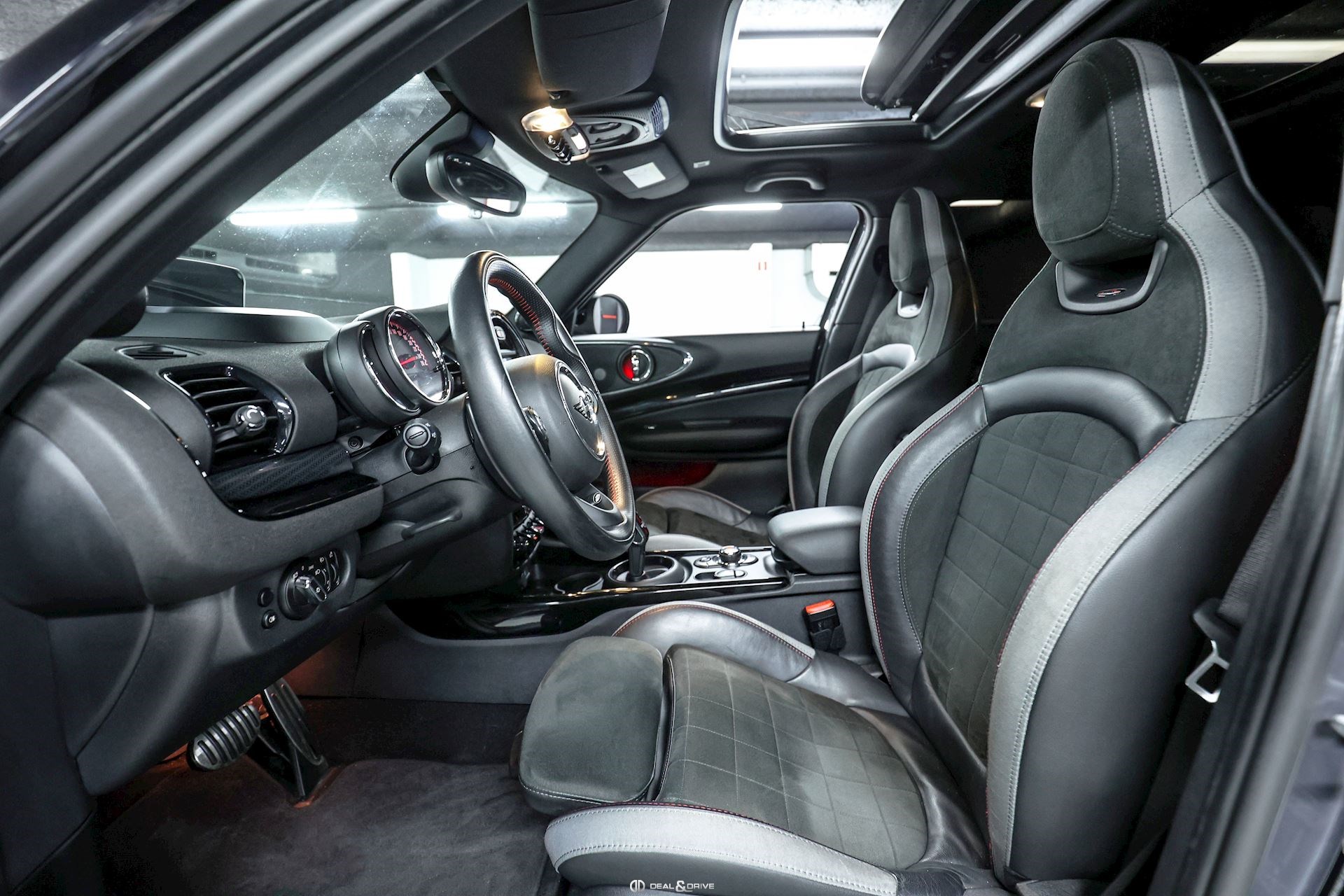 INTÉRIEUR Sièges baquets John Cooper Works en cuir et Dinamica Isofix sur siège passager Volant John Cooper Works en cuir, multifonctions avec palettes Plafonnier Noir Tapis de sol Inserts en Carbone Black Seuils de porte John Cooper Works