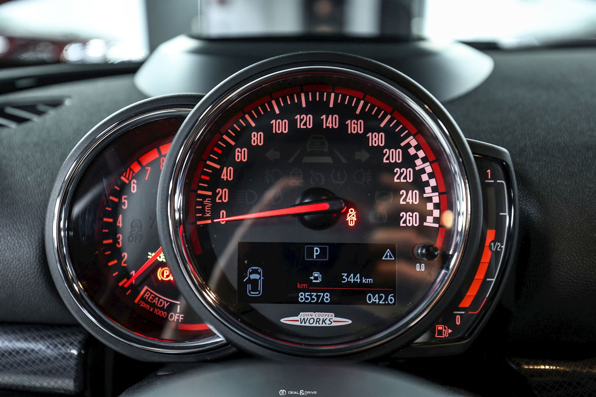 EXTÉRIEUR Toit ouvrant panoramique Jantes alliage léger MAM 19’’ en Noir Étriers de frein John Cooper Works en Rouge Vitrage arrière surteinté Coques des rétroviseurs extérieurs en Noir Toit en Noir