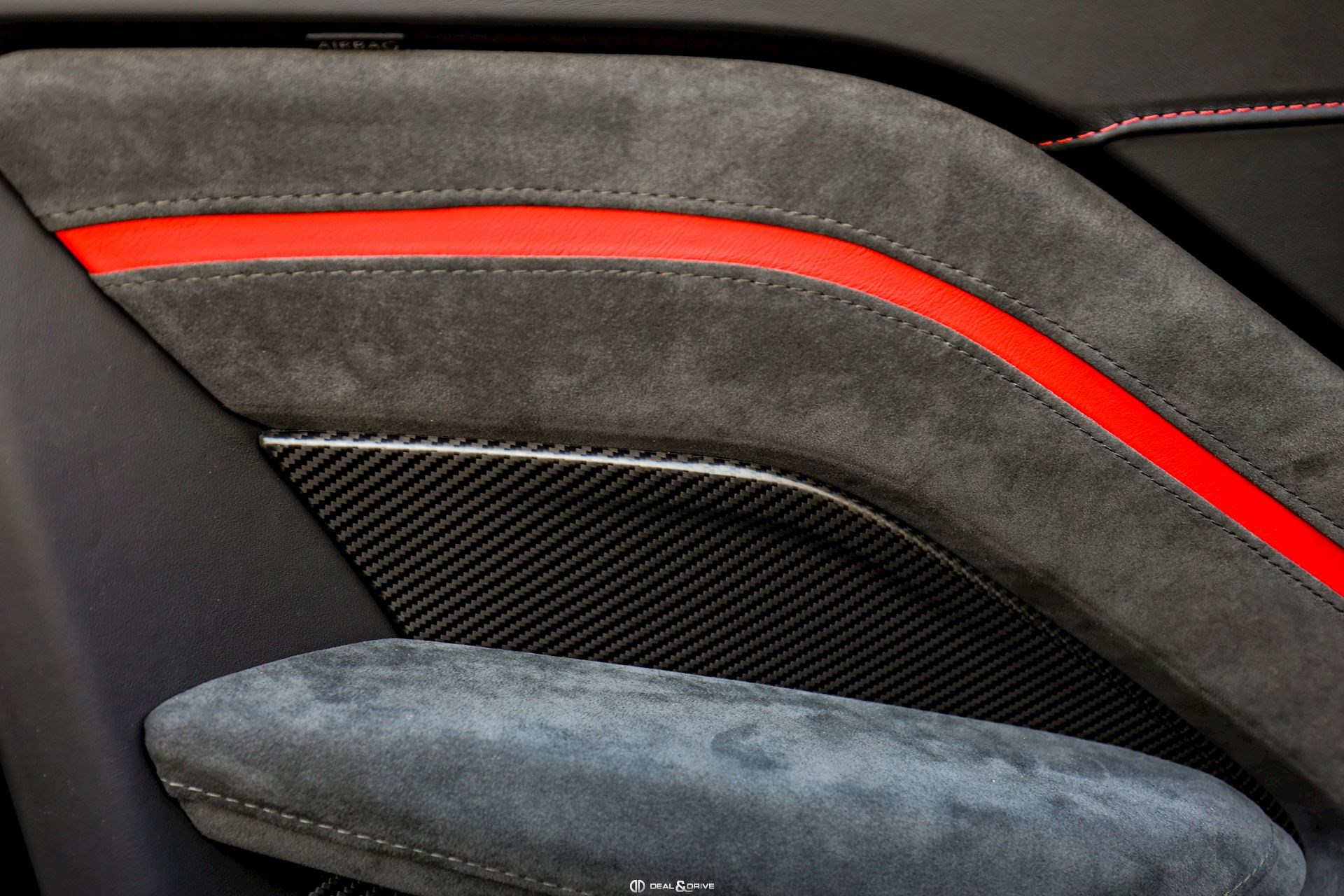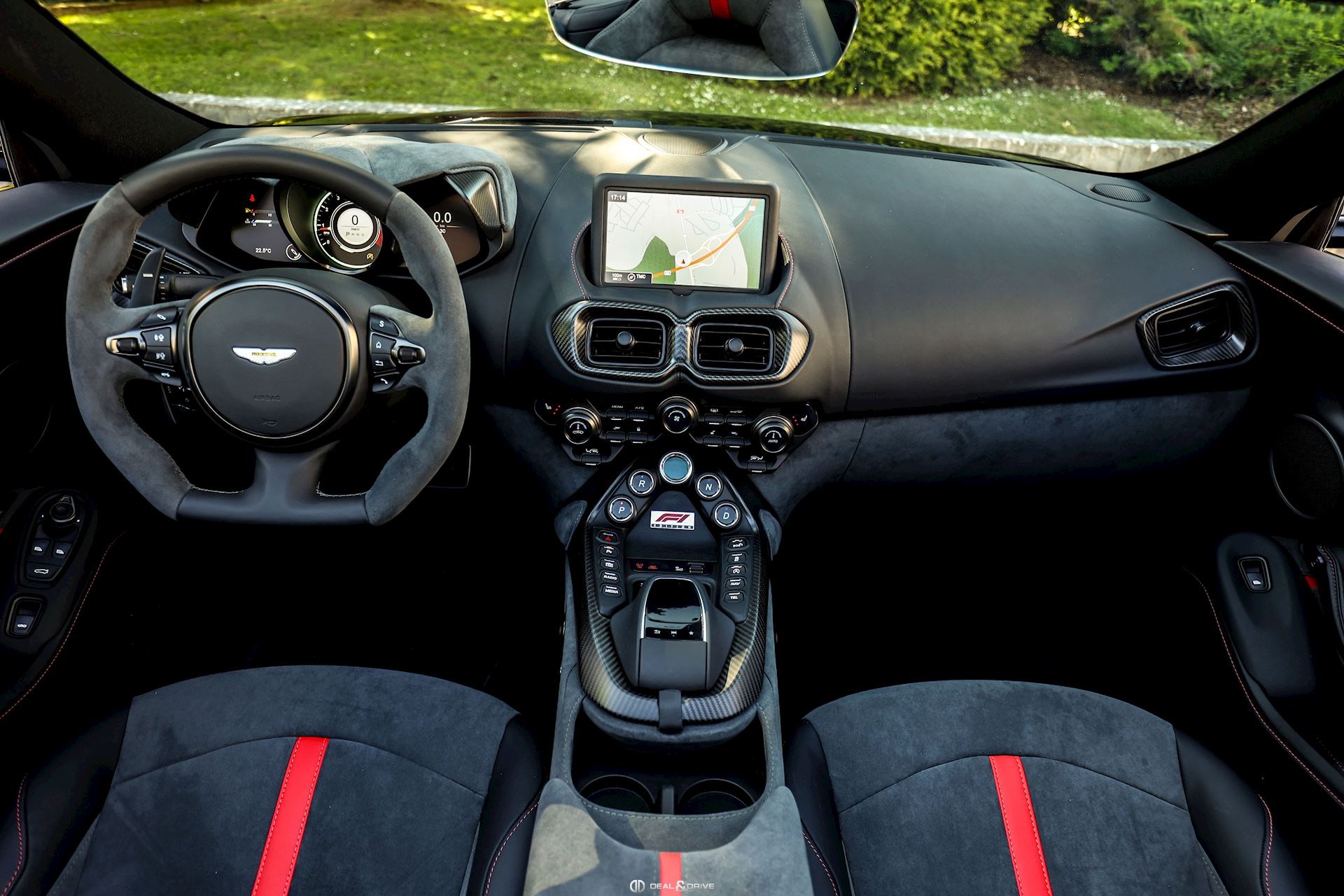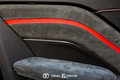 INTÉRIEUR Intérieur F1 Edition avec accents Spicy Red Inserts en Carbone Plafonnier Micro Mesh Noir Sièges électriques Sièges avec fonction mémoire Sièges chauffants Appuie-lombaires électriques Climatisation automatique 2 zones Tapis de sol Volant en cuir et Alcantara, multifonctions Volant réglable électriquement