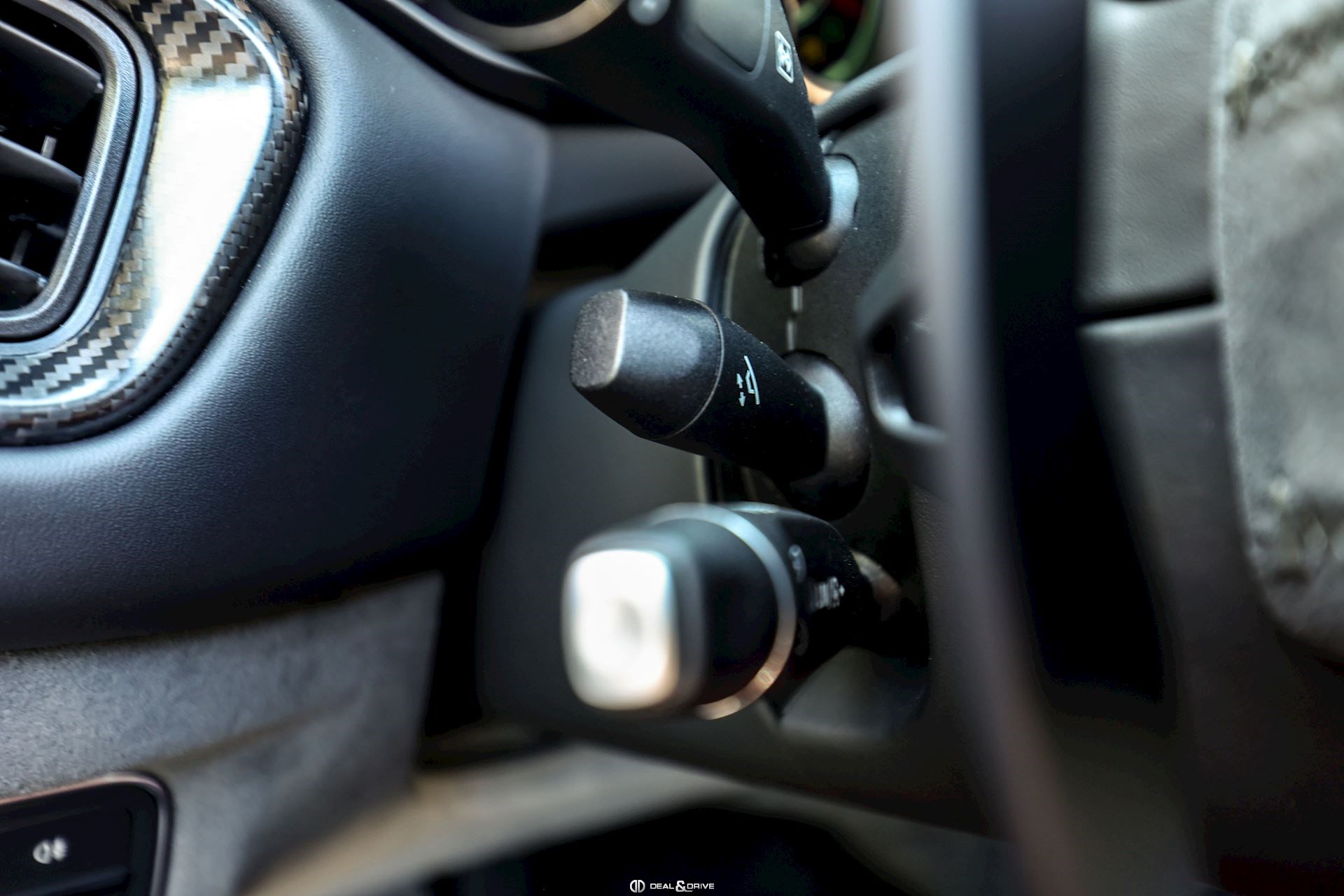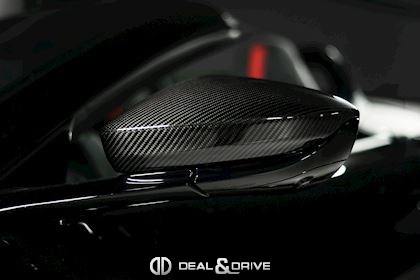 EXTÉRIEUR Capote extérieure en Noir Badges en Noir Jantes 21’’ en Noir satiné et diamantées Étriers de frein en Rouge Calandre en finition foncée Écussons et inscriptions chromés noirs Rétroviseurs extérieurs électriques Rétroviseurs extérieurs rabattables électriquement Coques de rétroviseurs en Carbone Sorties d’air latérales en Carbone Prises d’air sur le capot en Carbone Diffuseur arrière en Noir brillant Lame avant en Noir brillant Bas de caisse en Noir brillant