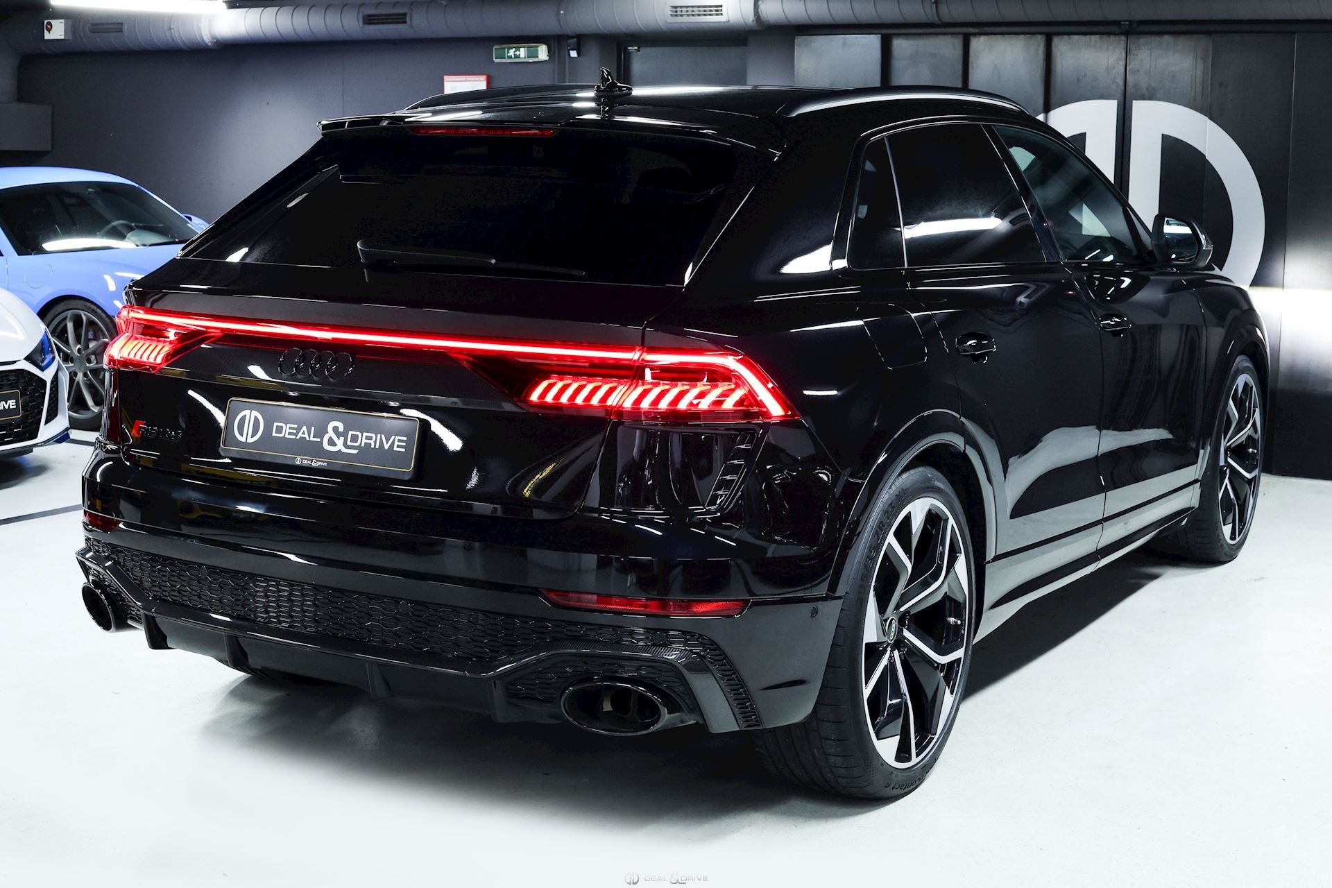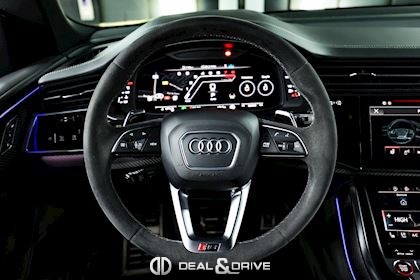 EXTÉRIEUR Coques des rétroviseurs extérieurs en Carbone – AUDI EXCLUSIVE Toit ouvrant panoramique Attelage rétractable électriquement Logo Audi et caractères en Noir brillant Vitrage arrière surteinté Barres de toit en Noir Hayon électrique Jantes alliage léger 23’’, 5 branches en Y, Design Rotor en Noir Anthracite et poli Étriers de frein en Rouge Rétroviseurs extérieurs électriques Rétroviseurs extérieurs rabattables électriquement Rétroviseurs extérieurs chauffants Rétroviseurs extérieurs et intérieur avec fonction anti-éblouissement