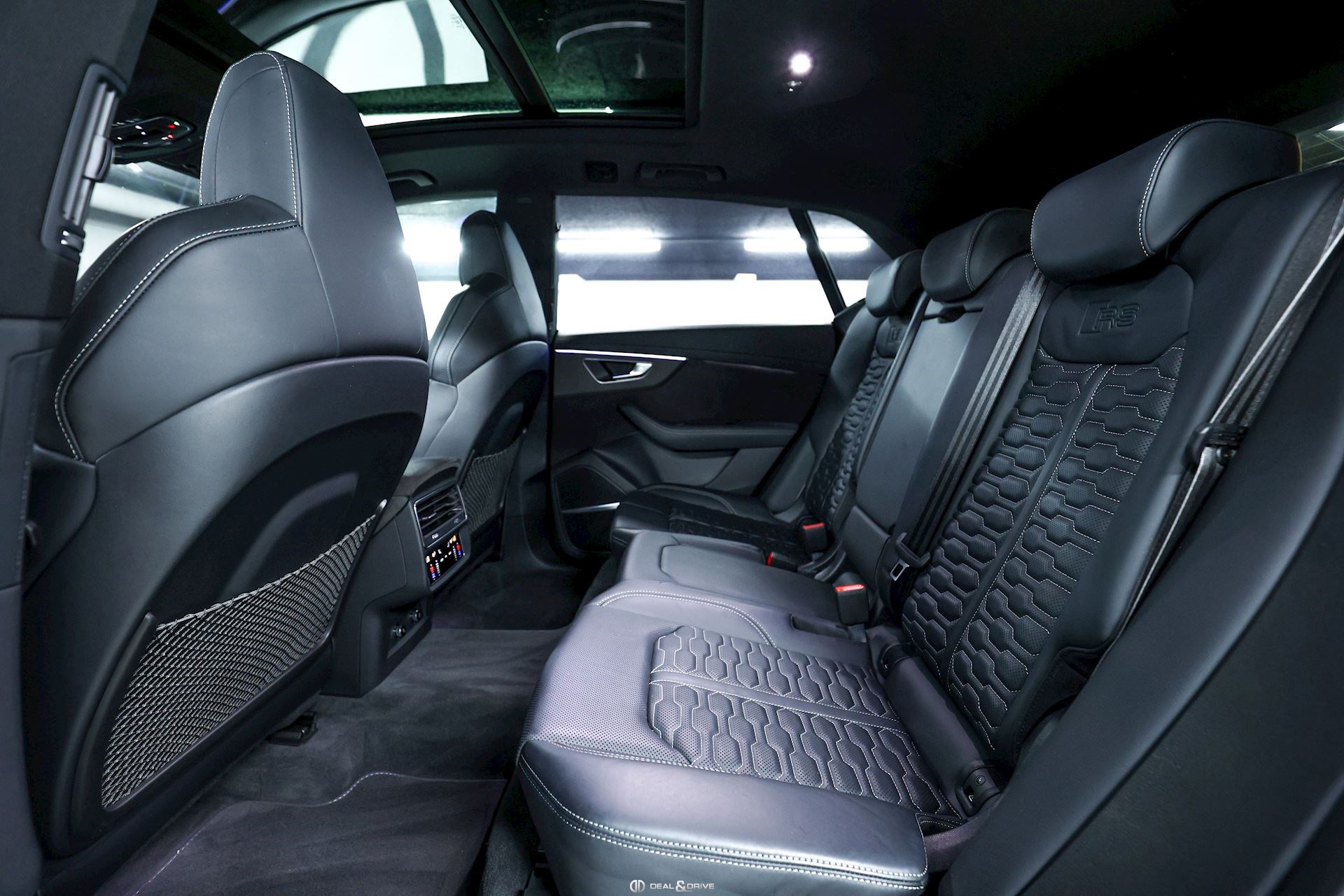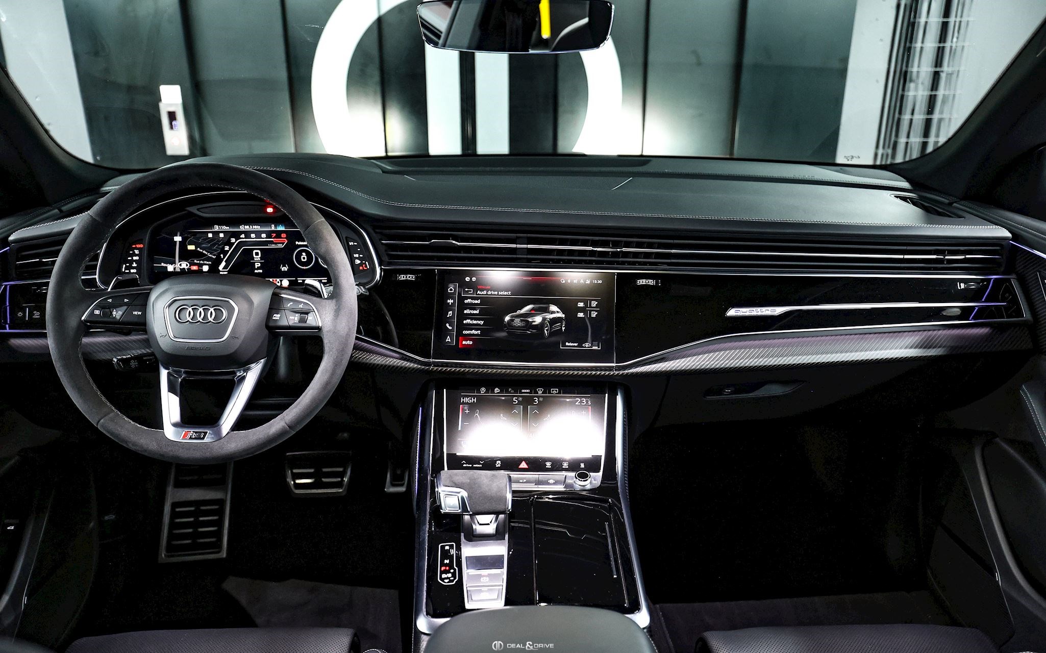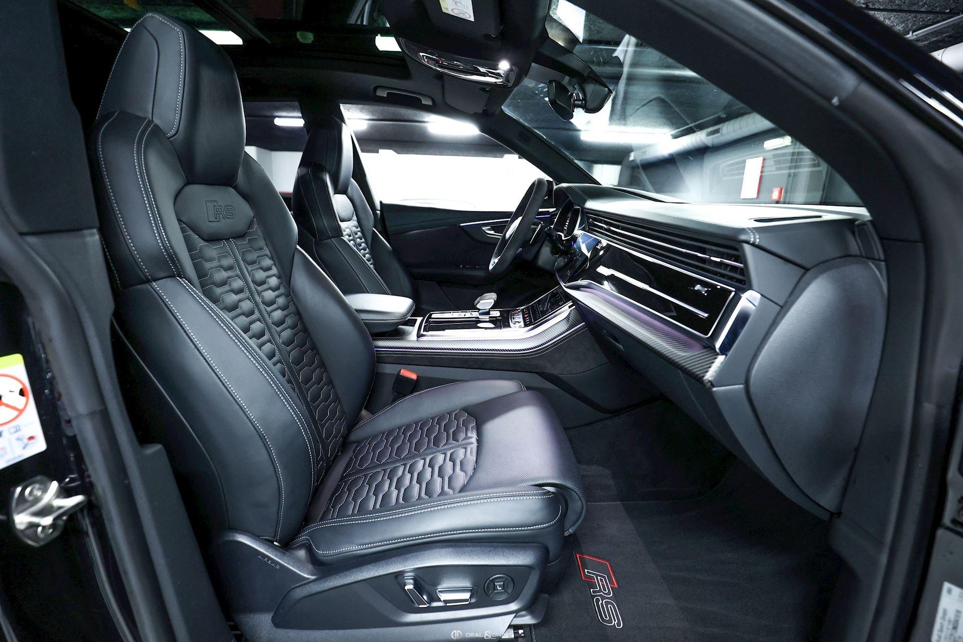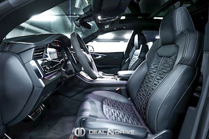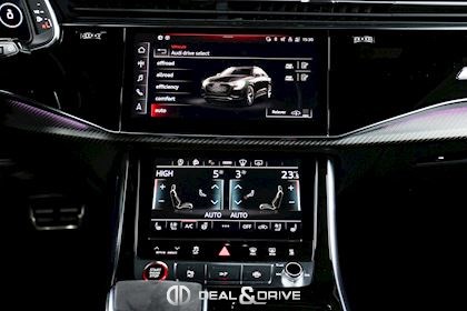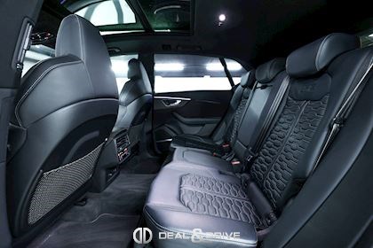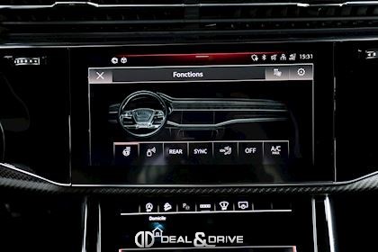INTÉRIEUR Inserts en Carbone Sergé Sellerie en cuir Valcona, perforé, alvéolé Sièges avant Sport Plus RS Sièges avant électriques Sièges avant avec fonction mémoire Sièges avant ventilés Sièges avant chauffants Sièges avant avec fonction massage Appuie-lombaires électriques Isofix sur siège passager Volant en Alcantara, multifonctions Volant chauffant Volant réglable électriquement Rideaux pare-soleil sur les vitres à l’arrière Plafonnier Noir Climatisation automatique 4 zones Seuils de porte en Aluminium, éclairés avec monogramme « RSQ8 » Accoudoir central avant Ionisateur d’intérieur Seuil de chargement en Inox