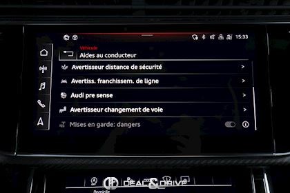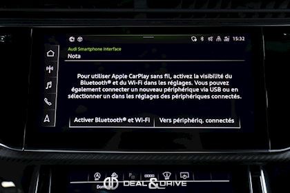 MULTIMÉDIA Système audio BANG & OLUFSEN Audi Smartphone Interface : Apple CarPlay / Android Auto Audi Music Interface Audi Connect Audi Virtual Cockpit Plus avec Design RS Mulimedia-Interface MMI Navigation Plus avec MMI Touch Radio numérique DAB Système de commande vocale Ports USB Système de navigation Chargeur à induction pour Smartphone