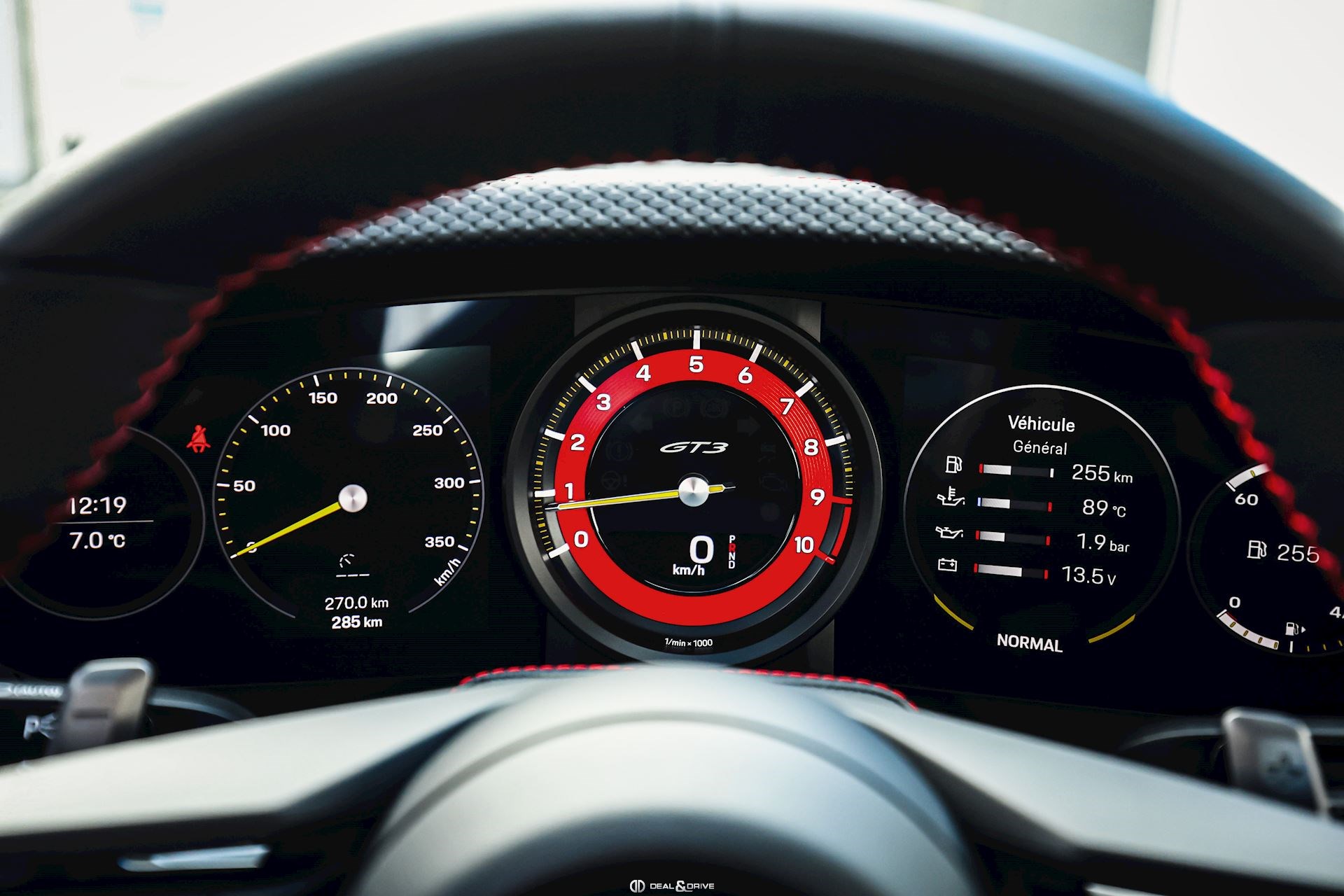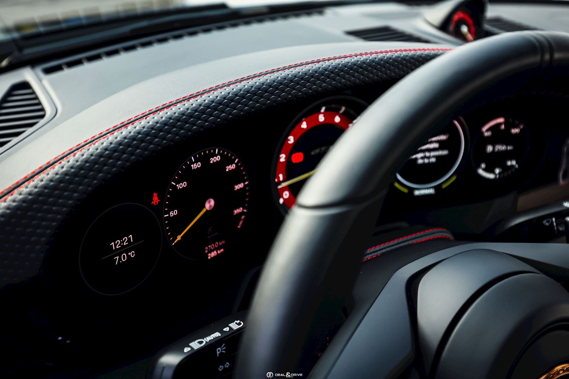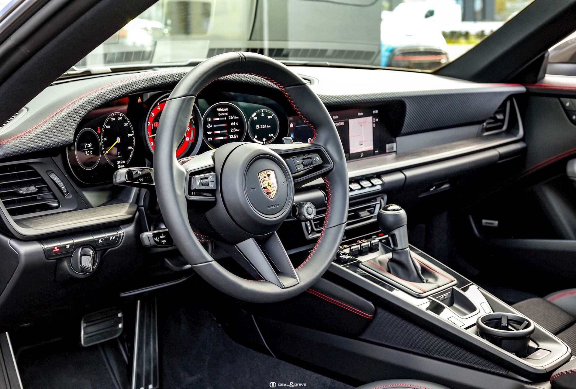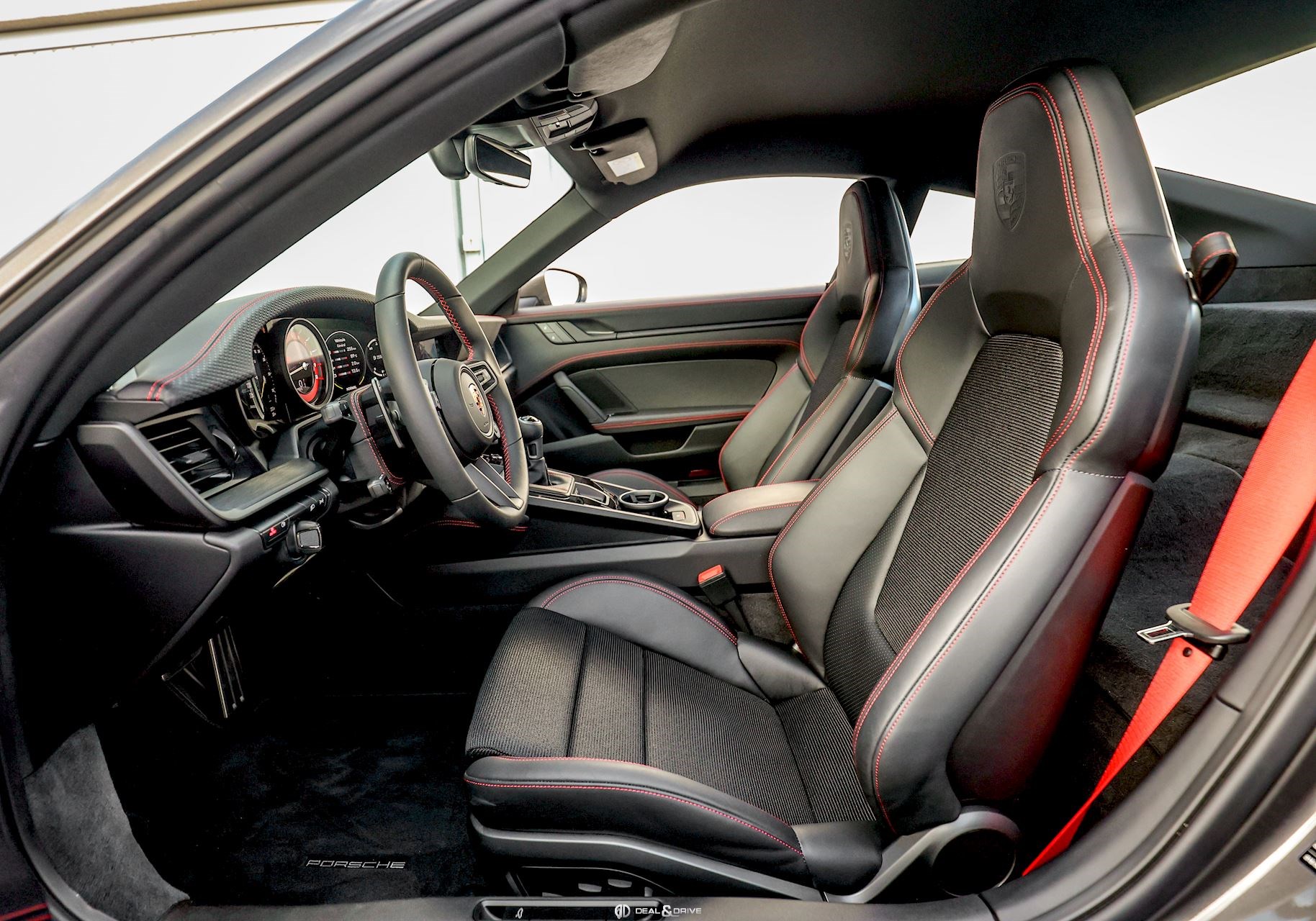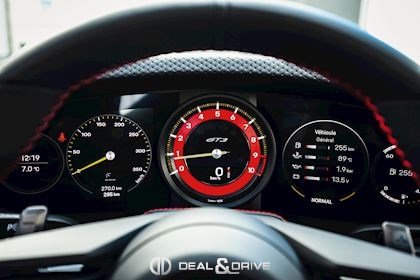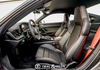 INTÉRIEUR Volant GT Sport en cuir, multifonctions Fond de compte-tours en Rouge Indien Fond du chronomètre en Rouge Indien Ceintures de sécurité en Rouge Indien Sièges Sport Plus, électriques, adaptatifs en 18 voies Sièges chauffants Appuie-lombaires électriques Surpiqûres contrastantes en Rouge Surpiqûres décoratives sur panneaux latéraux à l’arrière Surpiqûres décoratives sur l’accoudoir central Surpiqûres décoratives sur protèges genoux Surpiqûres décoratives sur les portes Surpiqûres sur le tableau de bord Colonne de direction en cuir Appuie-têtes avec emblème Porsche Climatisation automatique 2 zones Tapis de sol Plafonnier Noir