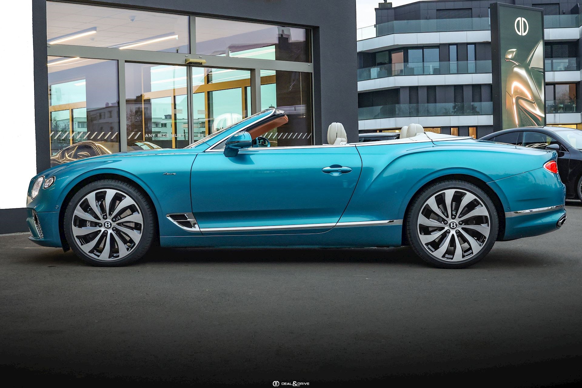 EXTÉRIEUR Jantes 22’’, 10 branches en Noir et brillant Étriers de frein en Noir Caches moyeux Bentley en Noir Capote extérieure en Tweed Hayon électrique