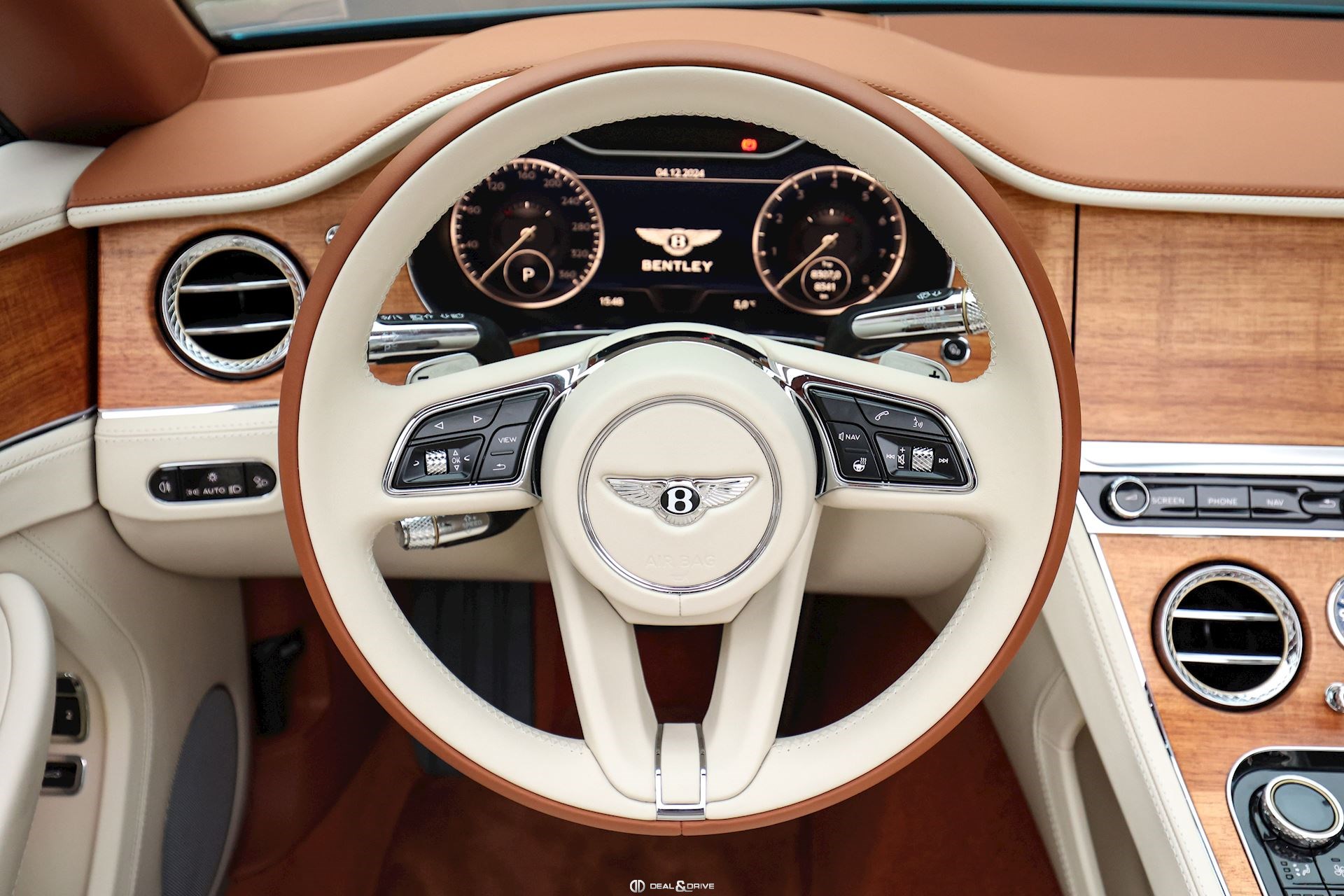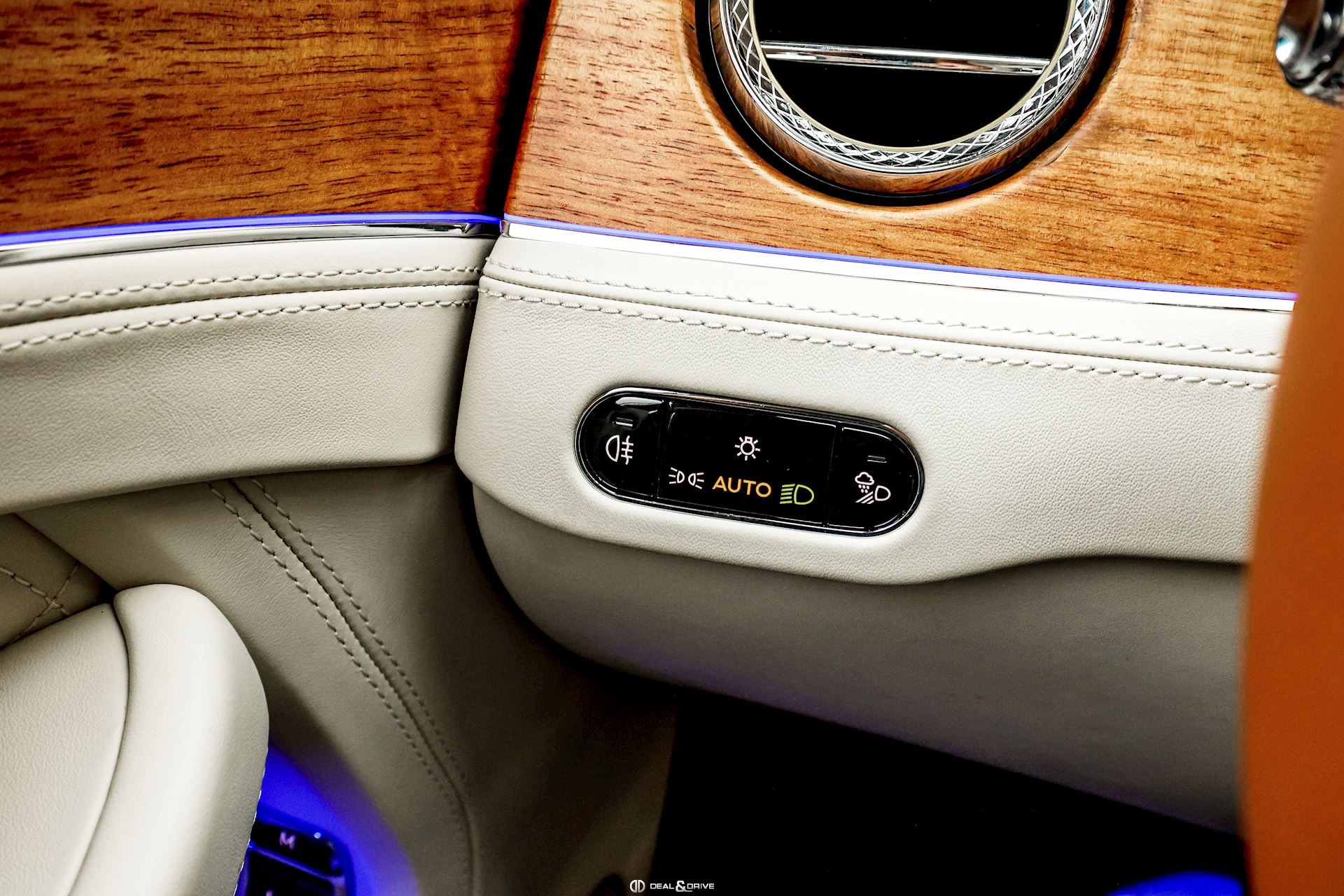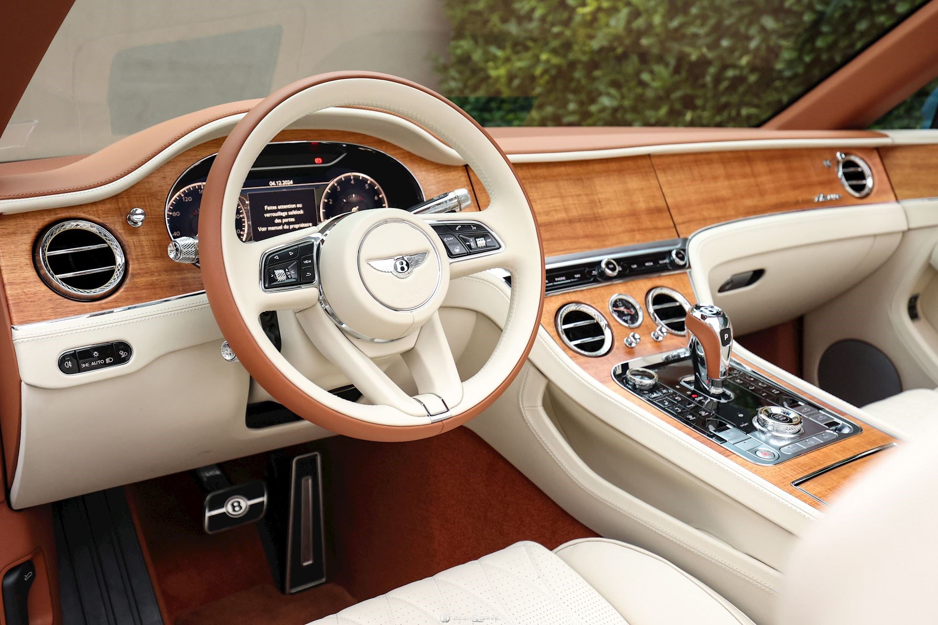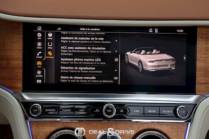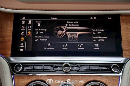 INTÉRIEUR Inserts Open Pore Koa Plafonnier en couleur Light Grey Emblème Bentley brodé sur les appuie-têtes Volant en cuir 3 branches, bi-ton en couleur Linen et Saddle Volant chauffant Volant réglable électriquement Tapis de sol en couleur Saddle Ceintures de sécurité en couleur Saddle Ionisateur d’air intérieur Seuils de porte en Aluminium éclairés « BENTLEY » Plaque de seuil de porte avec inscription « AZURE » Sièges avant électriques Sièges avant à mémoire Sièges avant avec fonction mémoire Sièges avant avec fonction massage Sièges avant chauffants Sièges avant ventilés Appuie-lombaires électriques Climatisation automatique 2 zones
