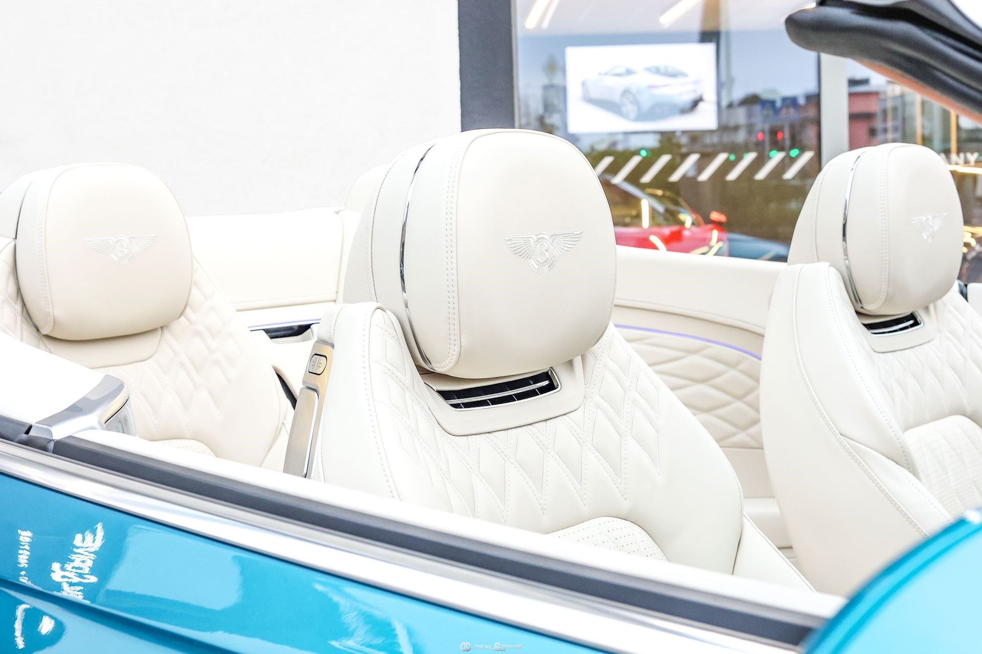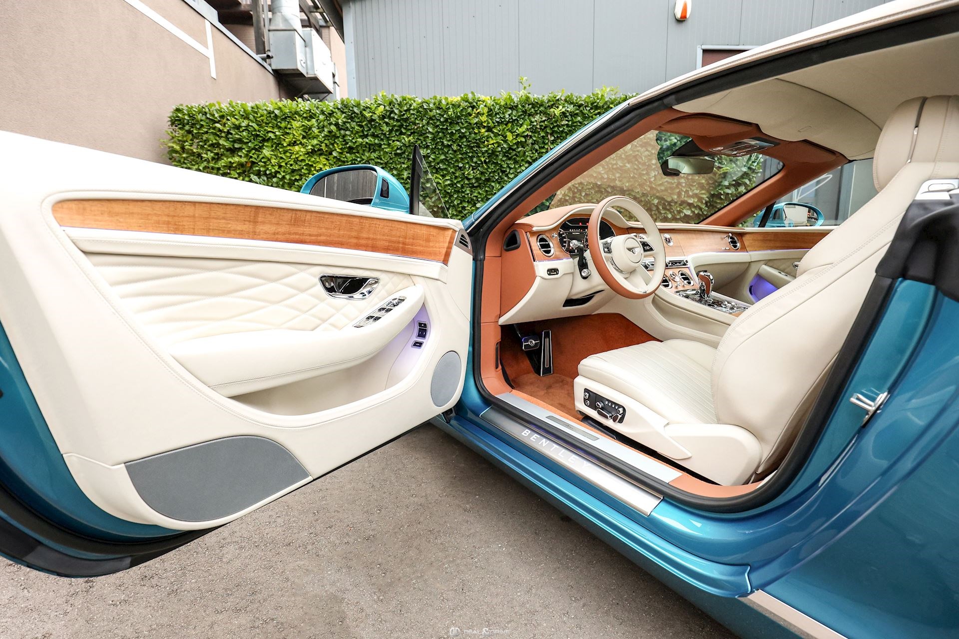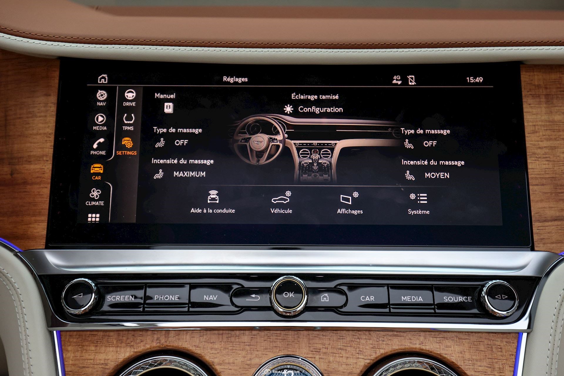 INTÉRIEUR Inserts Open Pore Koa Plafonnier en couleur Light Grey Emblème Bentley brodé sur les appuie-têtes Volant en cuir 3 branches, bi-ton en couleur Linen et Saddle Volant chauffant Volant réglable électriquement Tapis de sol en couleur Saddle Ceintures de sécurité en couleur Saddle Ionisateur d’air intérieur Seuils de porte en Aluminium éclairés « BENTLEY » Plaque de seuil de porte avec inscription « AZURE » Sièges avant électriques Sièges avant à mémoire Sièges avant avec fonction mémoire Sièges avant avec fonction massage Sièges avant chauffants Sièges avant ventilés Appuie-lombaires électriques Climatisation automatique 2 zones