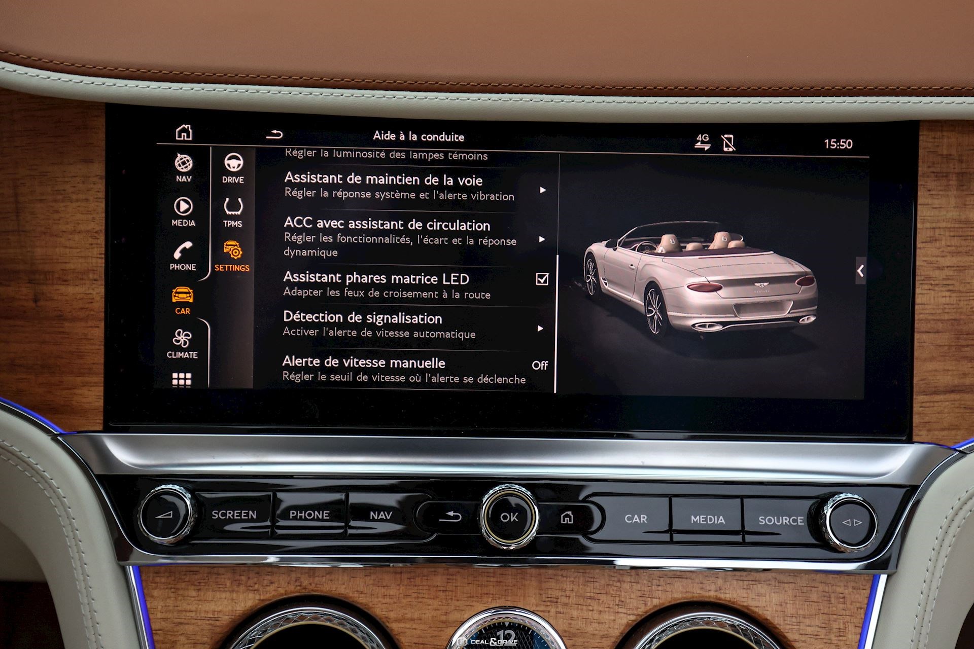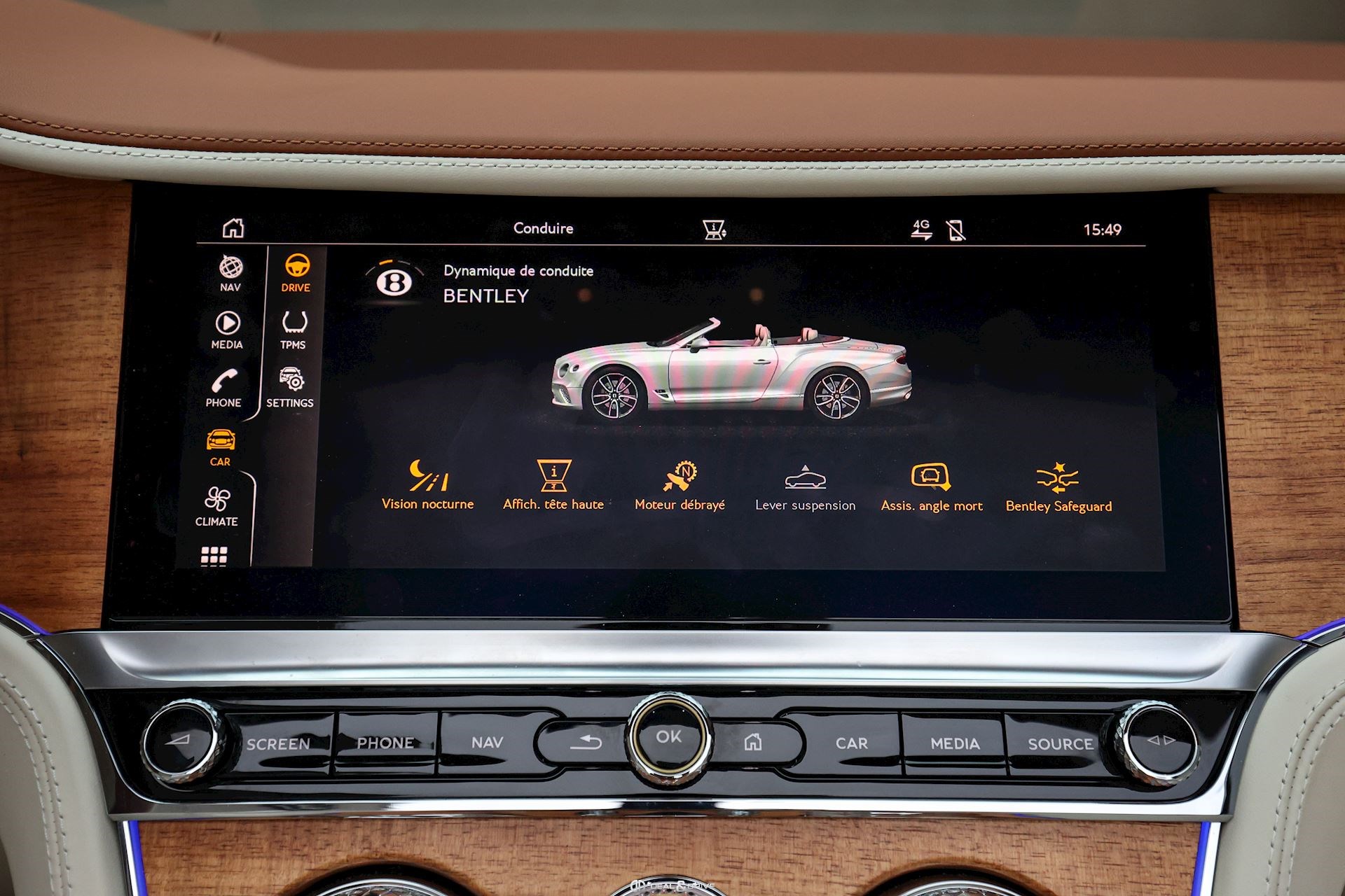 MULTIMÉDIA Écran rotatif Bentley Rotating Display Radio numérique DAB Interface Bluetooth Système de commande vocale Système de navigation Ports USB à l’avant et à l’arrière Apple CarPlay Chargeur à induction pour Smartphone