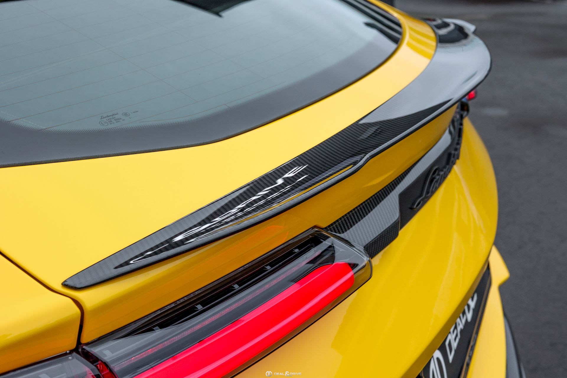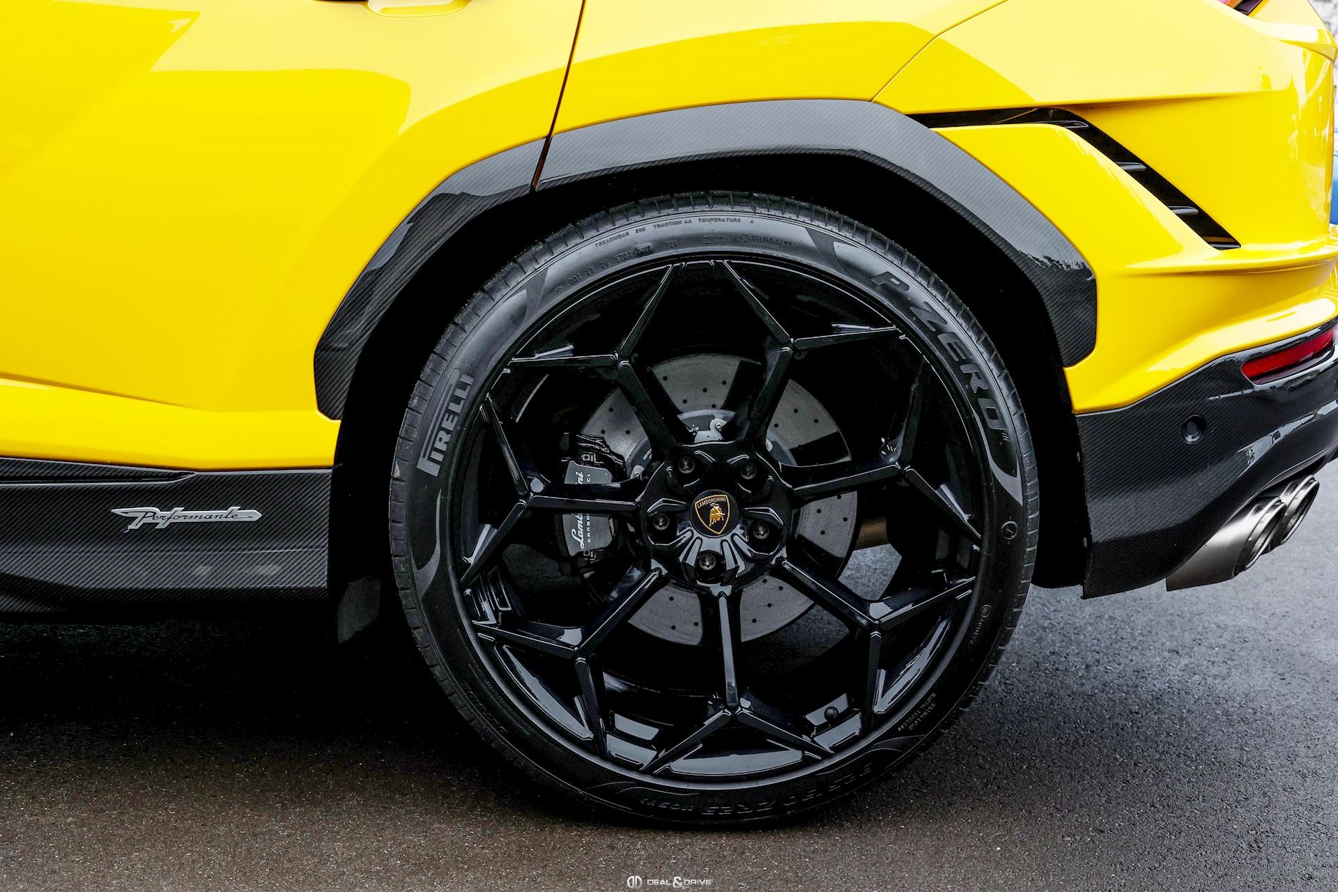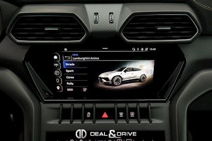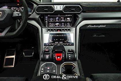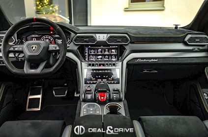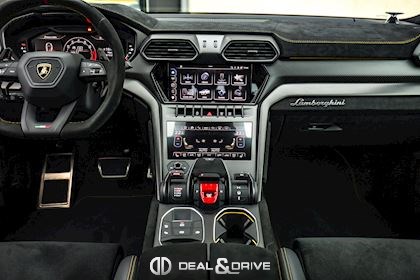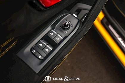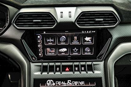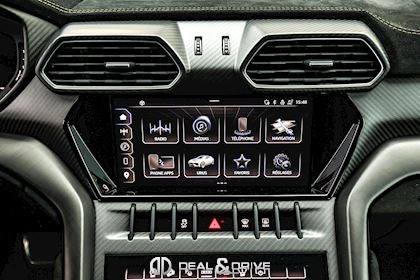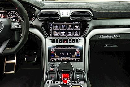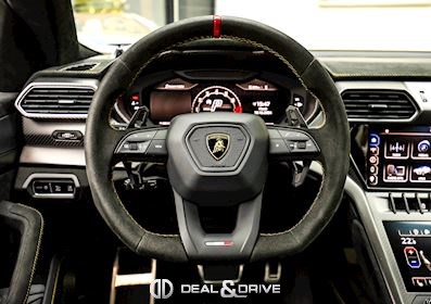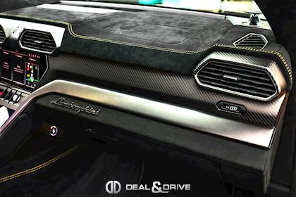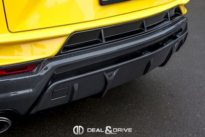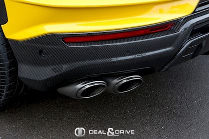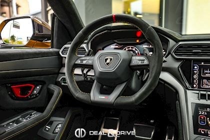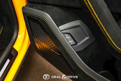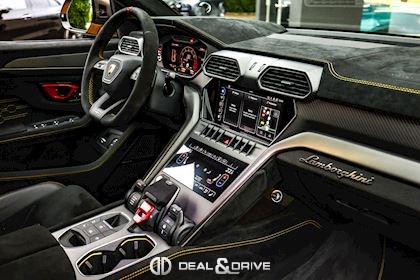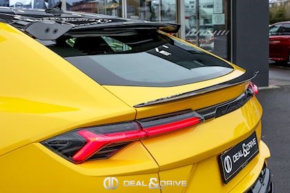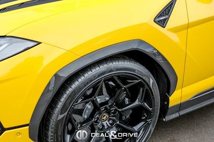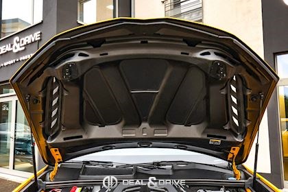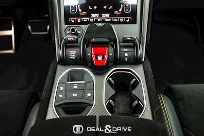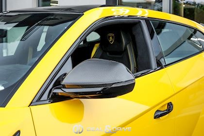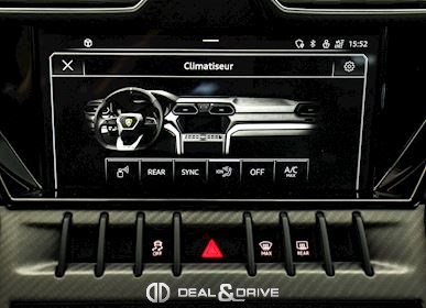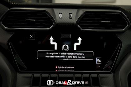 EXTÉRIEUR Toit en Carbone brillant apparent Capot en Carbone brillant apparent Jantes 23’’ type Pelope en Noir brillant avec boulons en Titane Étriers de frein en Noir Encadrement des vitres latérales en Noir brillant Poignées de porte en Noir Hayon électrique Logo Lamborghini arrière en Noir Mat Rétroviseurs extérieurs électriques Rétroviseurs extérieurs rabattables électriquement Rétroviseurs extérieurs chauffants