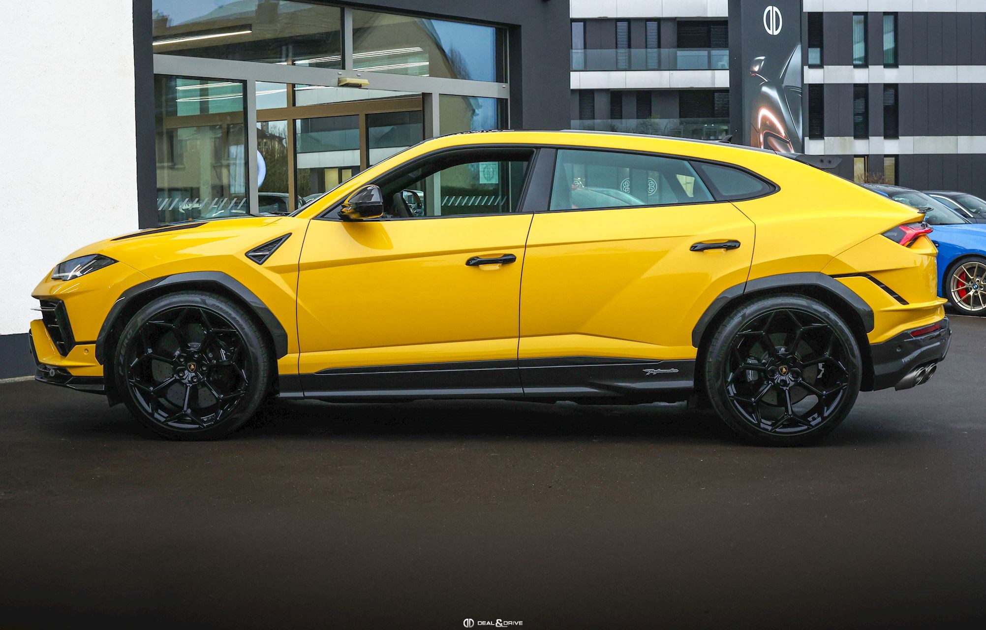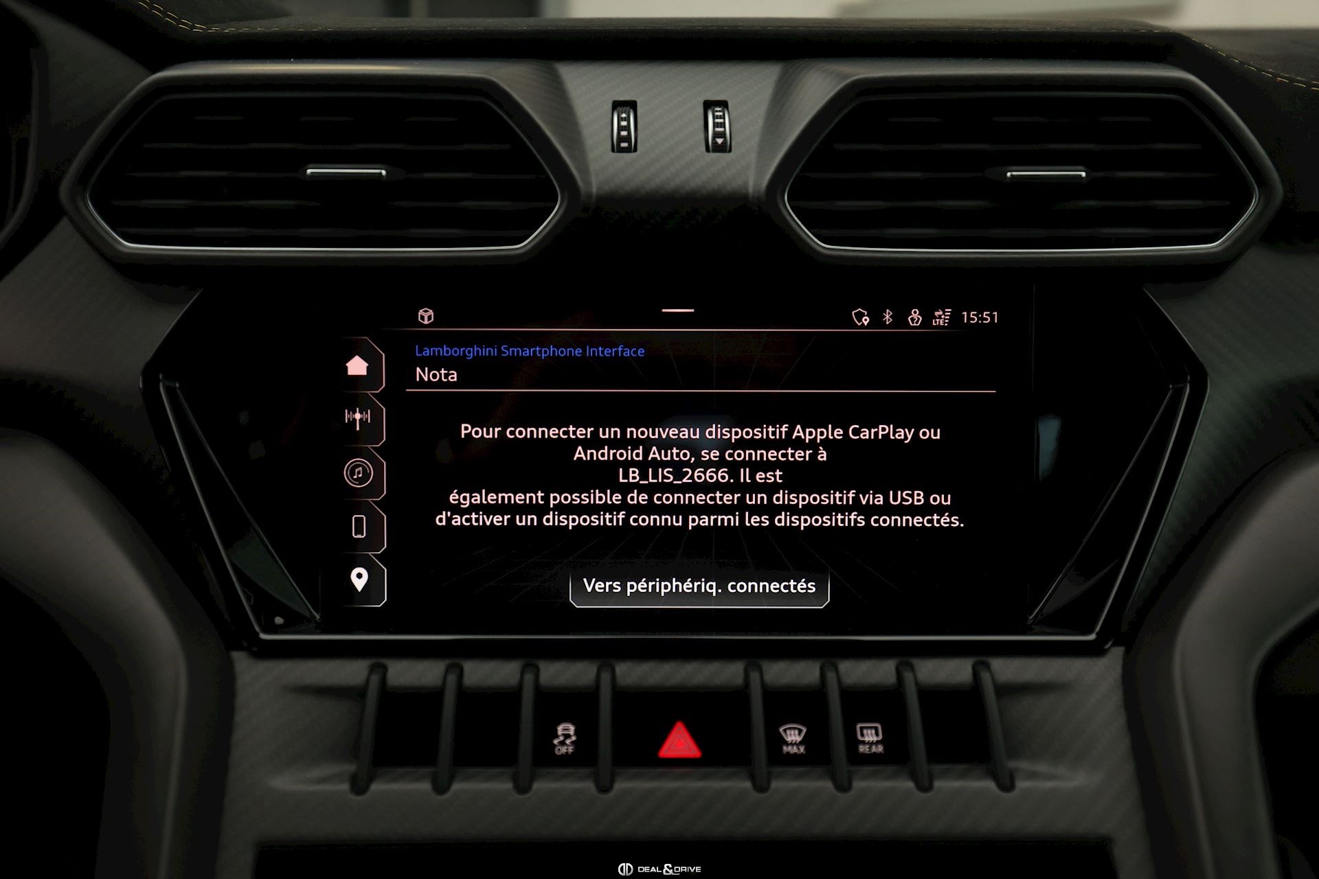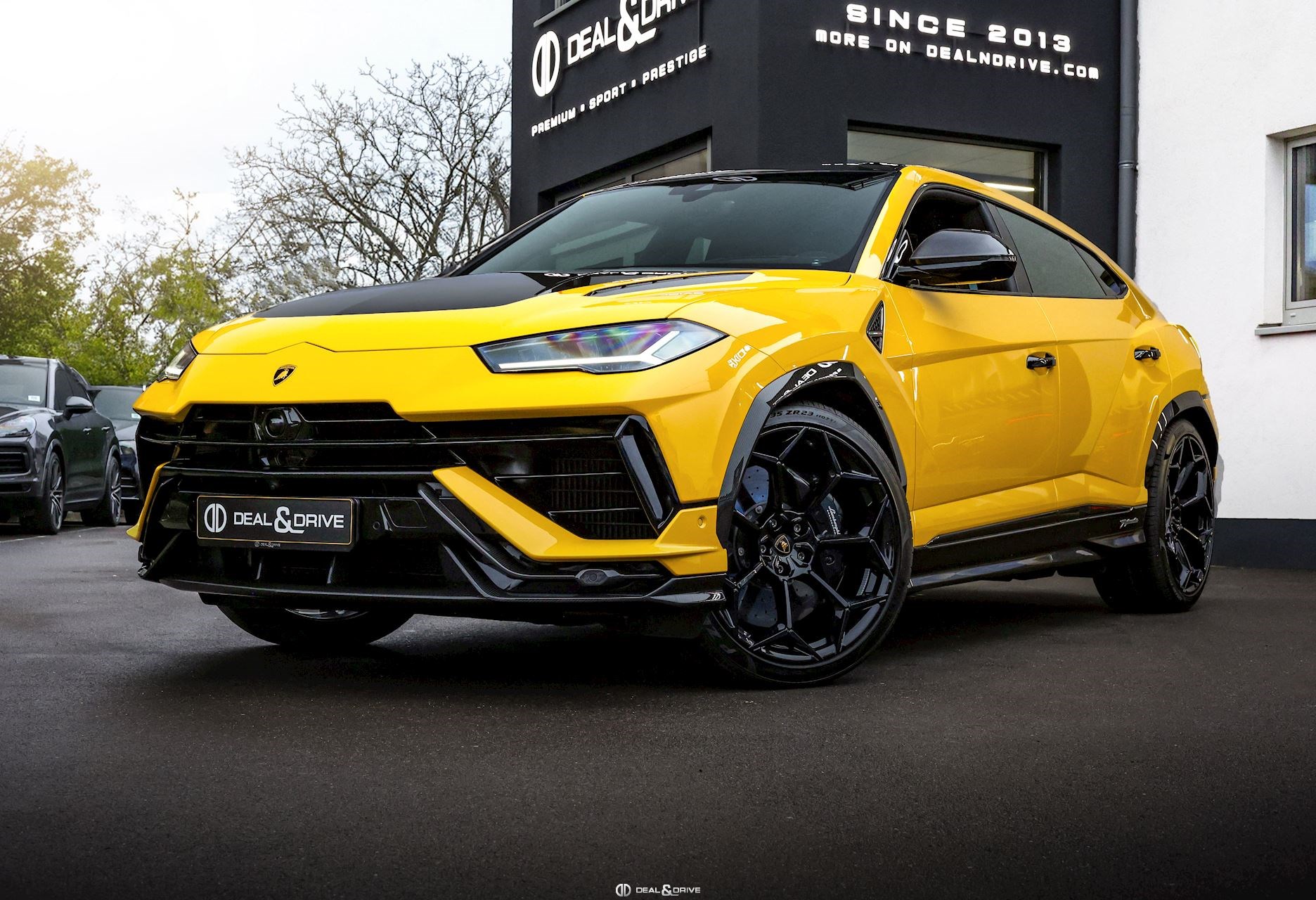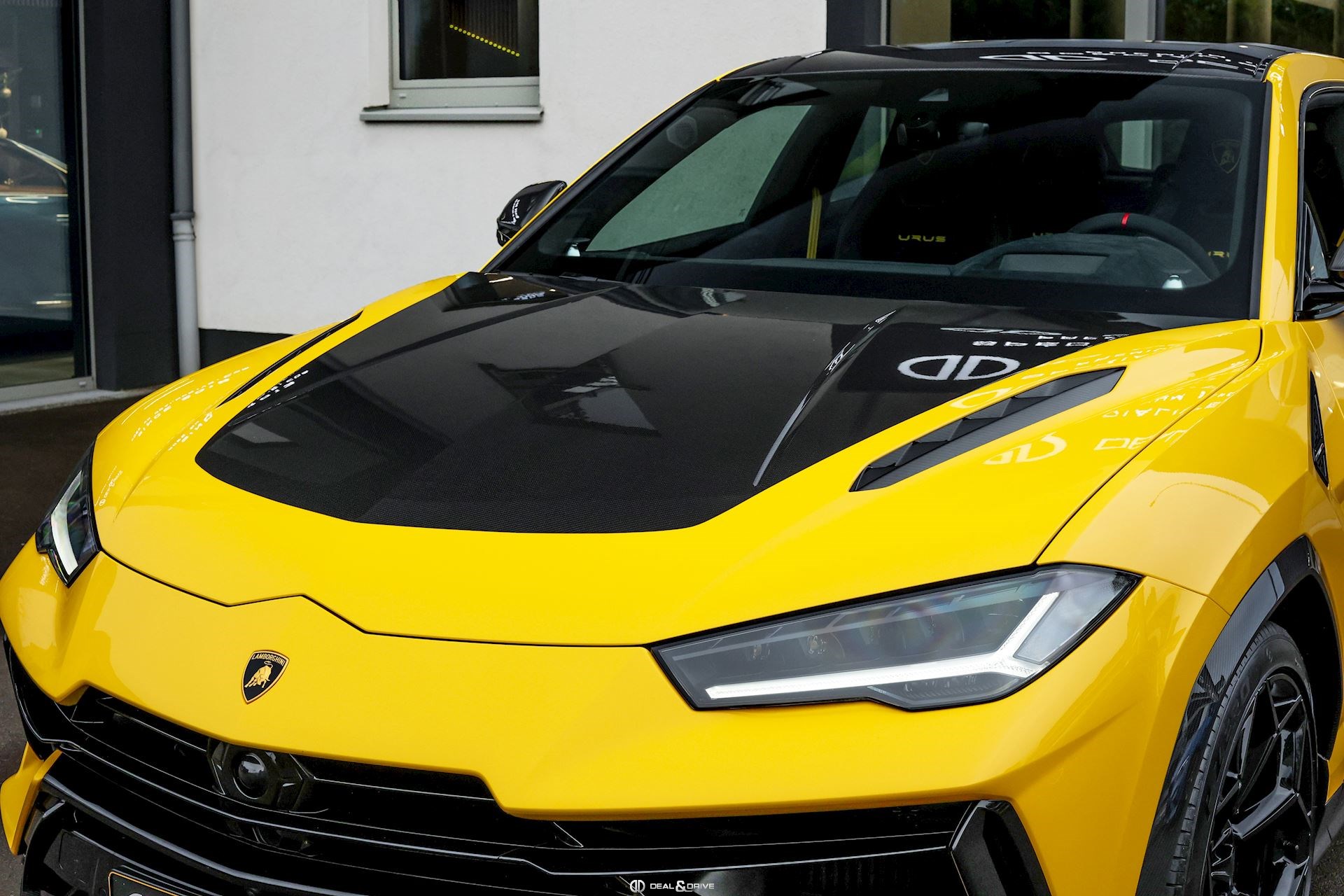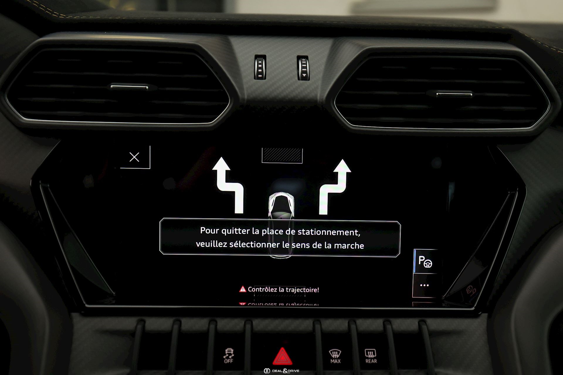 EXTÉRIEUR Toit en Carbone brillant apparent Capot en Carbone brillant apparent Jantes 23’’ type Pelope en Noir brillant avec boulons en Titane Étriers de frein en Noir Encadrement des vitres latérales en Noir brillant Poignées de porte en Noir Hayon électrique Logo Lamborghini arrière en Noir Mat Rétroviseurs extérieurs électriques Rétroviseurs extérieurs rabattables électriquement Rétroviseurs extérieurs chauffants