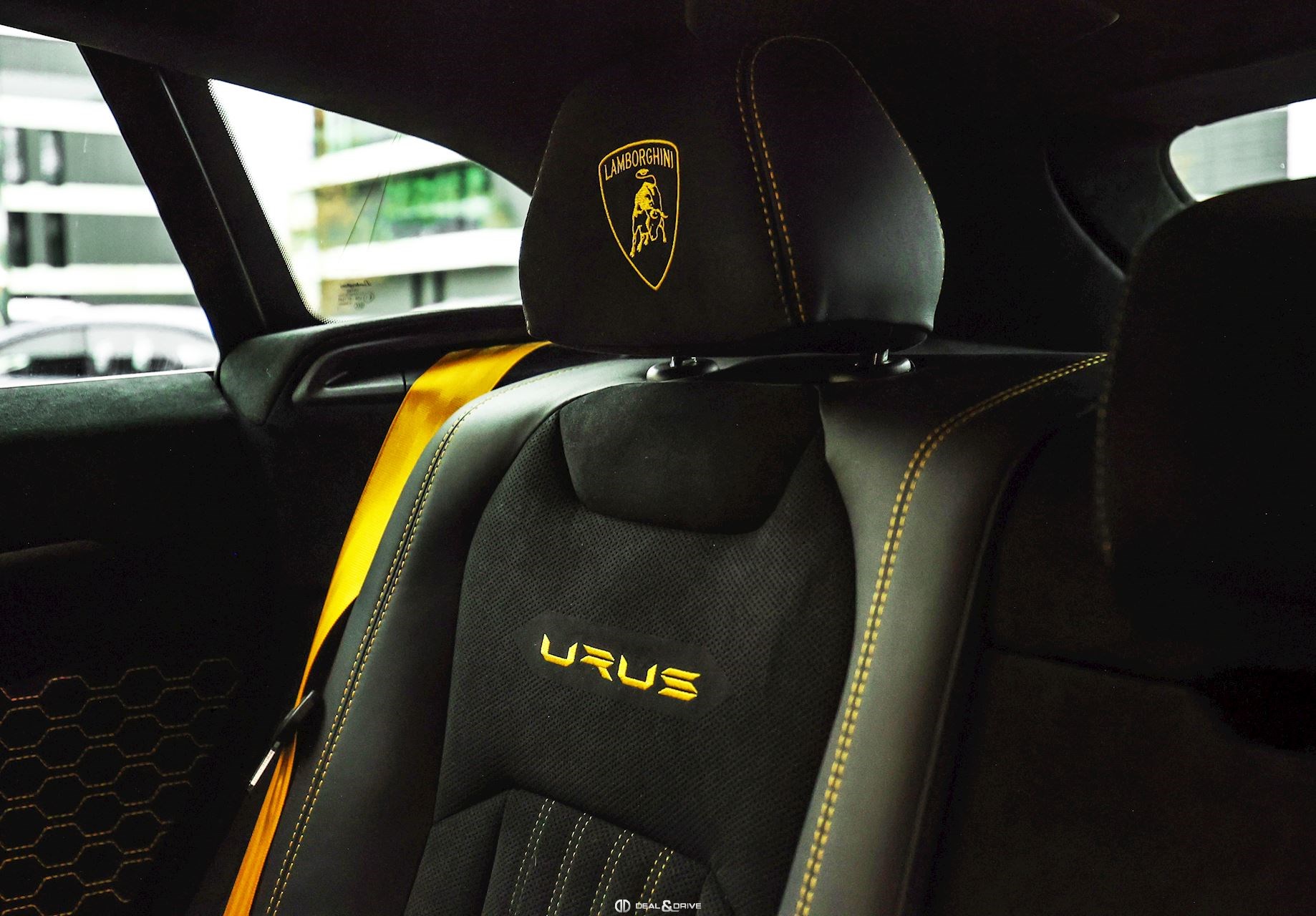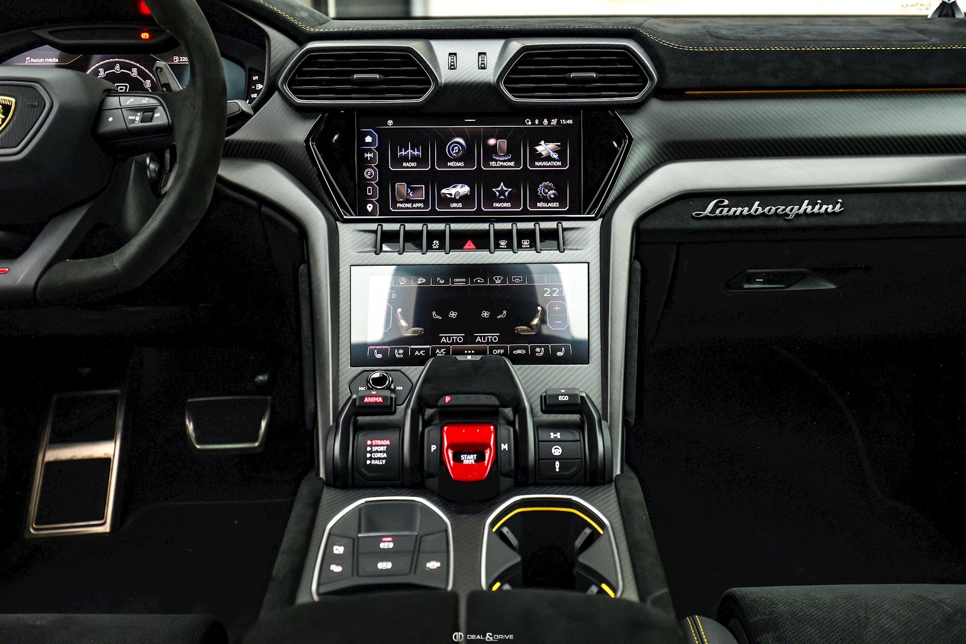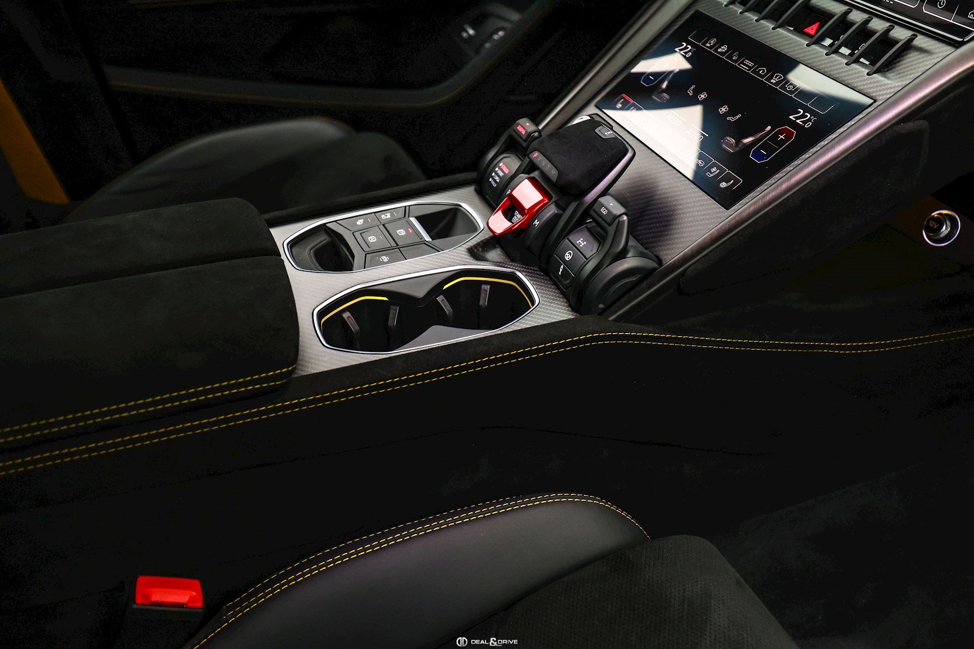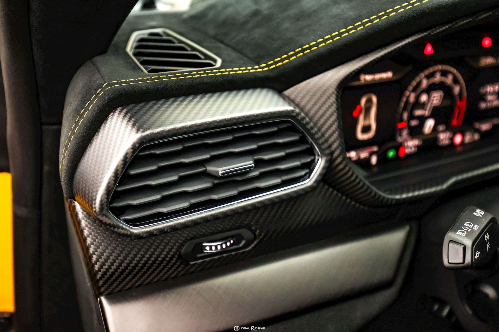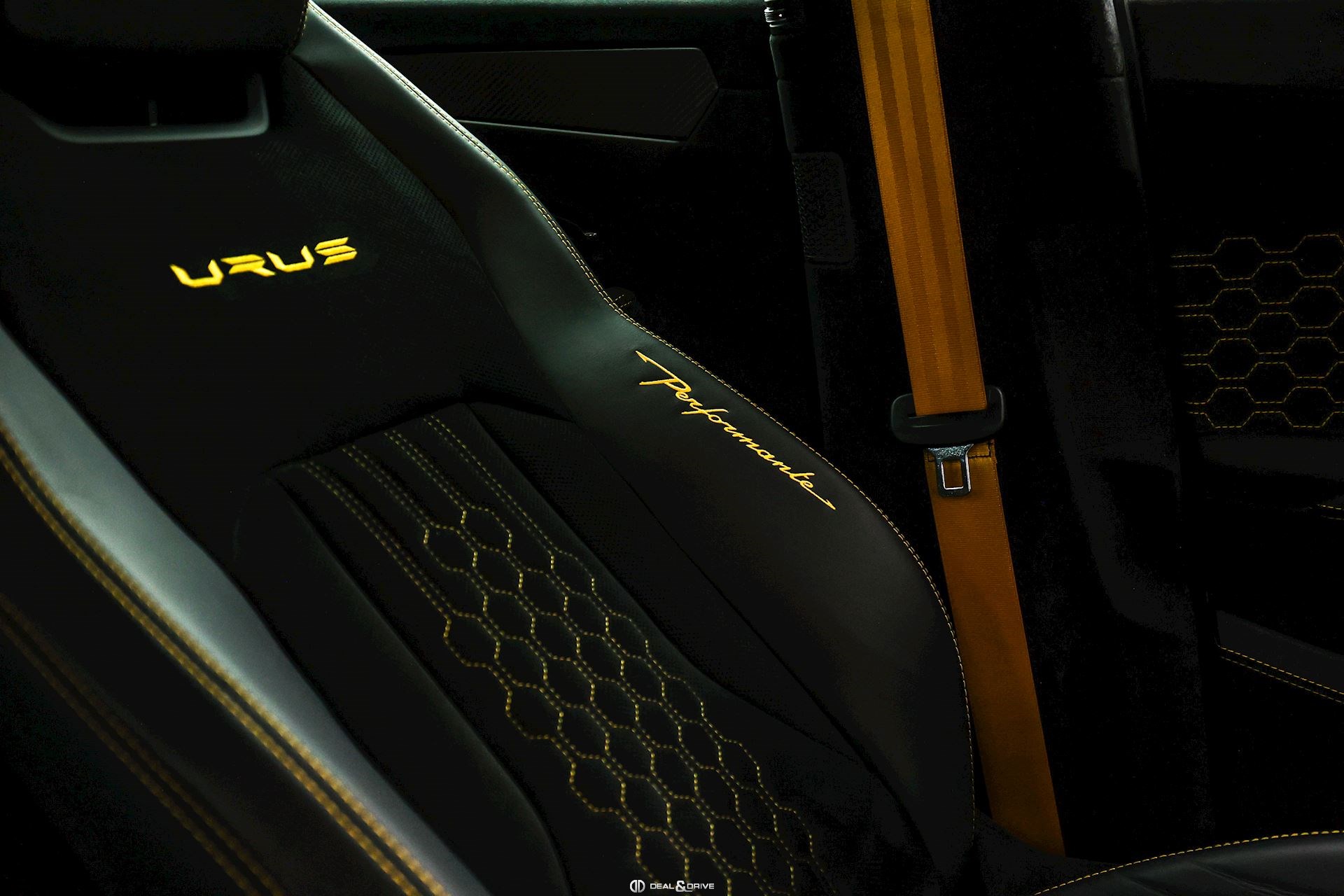 INTÉRIEUR Sellerie en cuir et Alcantara avec surpiqûres jaunes Ceintures de sécurité en Jaune Sièges avant électriques Sièges avant à mémoire Sièges avant avec fonction massage Sièges avant chauffants Sièges avant ventilés Appuie-lombaires électriques Tapis de sol en Noir avec joints en cuir et surpiqûres doubles en Jaune Volant Sport en Alcantara, multifonctions avec marquage en Rouge Surpiqûres optionnelles sur le volant Volant réglable électriquement Plafonnier en Alcantara avec surpiqûres en Jaune Emblème Lamborghini brodé sur les appuie-têtes en Jaune Système de qualité de l’air Premium avec ioniser et aromatiser Seuils de porte en Carbon Mat, illuminés Finition Performante étendue sur le dossier des sièges avant Poignées de porte intérieures en Rouge Climatisation automatique 4 zones Isofix sur siège passager