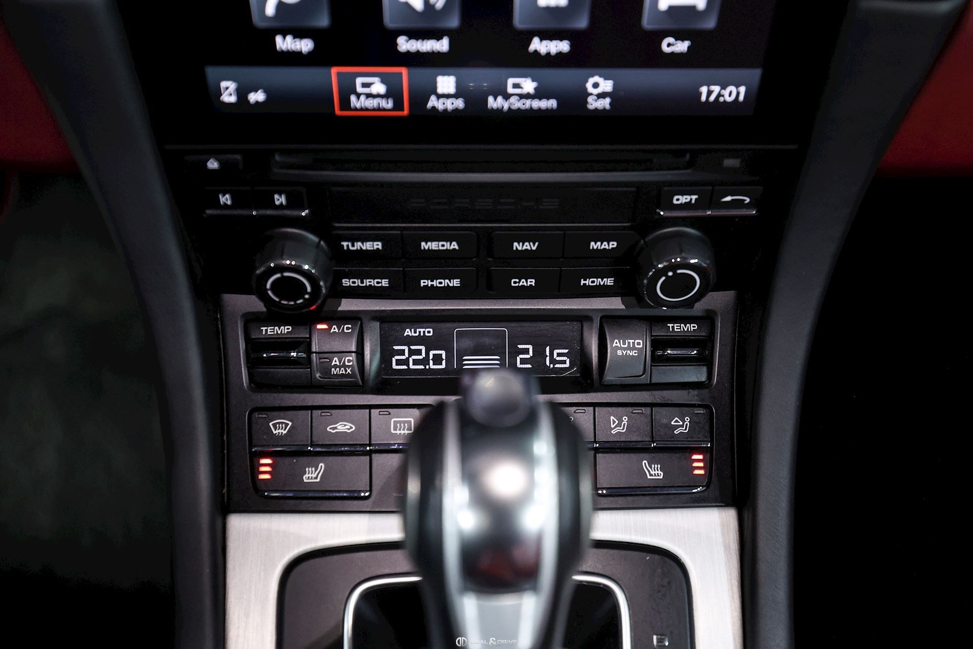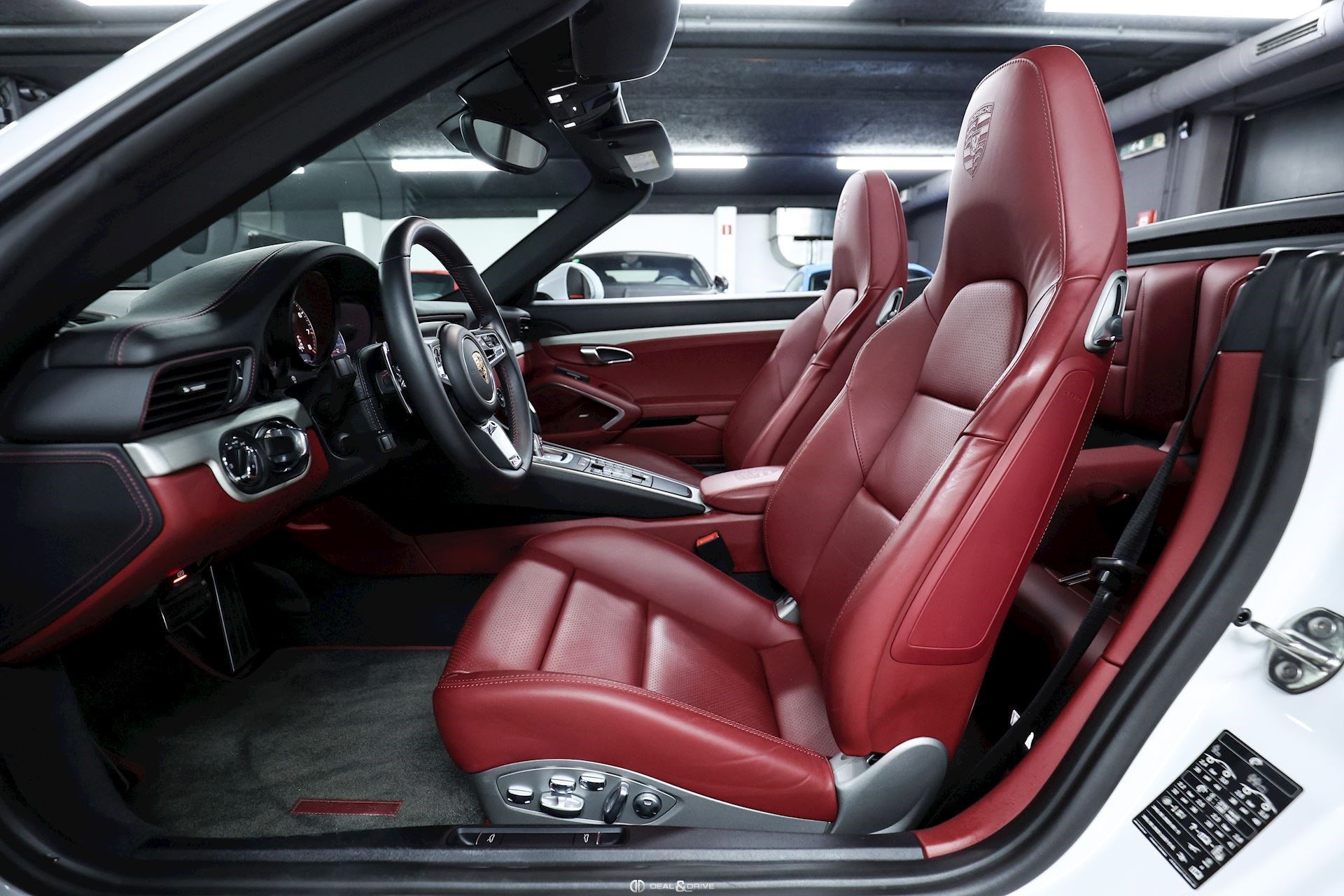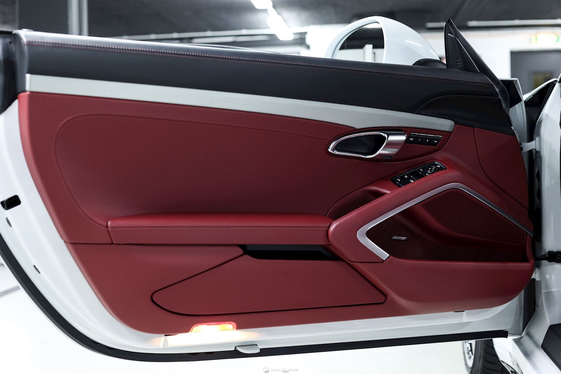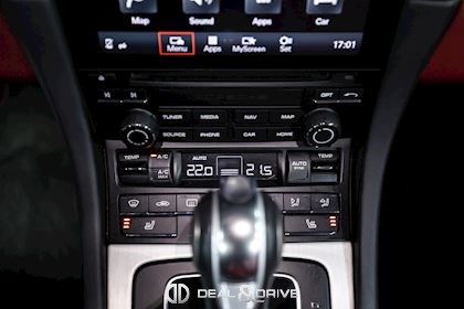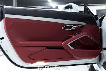 INTÉRIEUR Sellerie en cuir bi-ton en Noir et Rouge Sièges Sport adaptatifs, réglables en 18 voies avec pack mémoire pour le conducteur Dossier des sièges avant en cuir Sièges avant chauffants Appuie-lombaires électriques Volant en cuir, multifonctions Volant chauffant Volant réglable électriquement Emblème Porsche embossé sur les appuie-têtes Emblème Porsche embossé sur l’accoudoir central Fond du chronomètre Sport Chrono en Rouge Fond du compteur en Rouge Habillage de la colonne de direction en cuir Levier de vitesses en Aluminium brossé Seuils de porte en Inox, éclairés avec désignation du modèle Tapis de sol avec bordures en cuir Individual en Rouge Climatisation automatique 2 zones Surpiqûres en Rouge sur le tableau de bord Ceintures de sécurité en Noir Plafonnier Noir