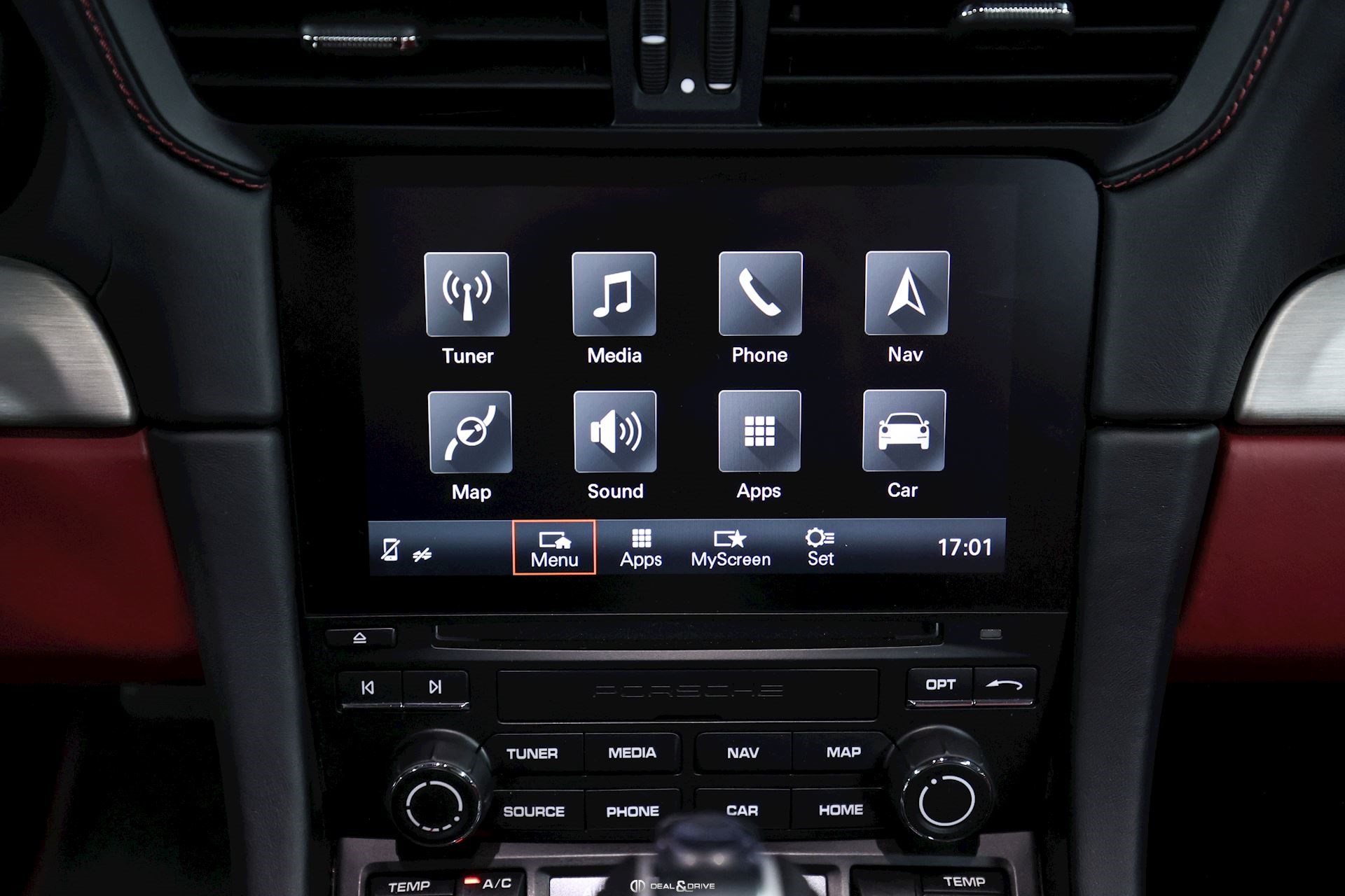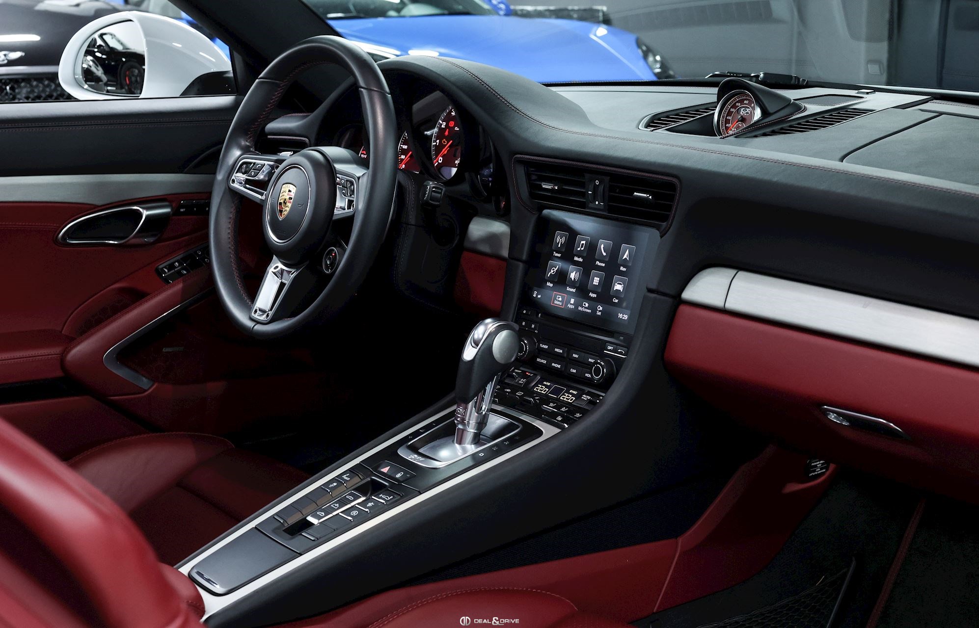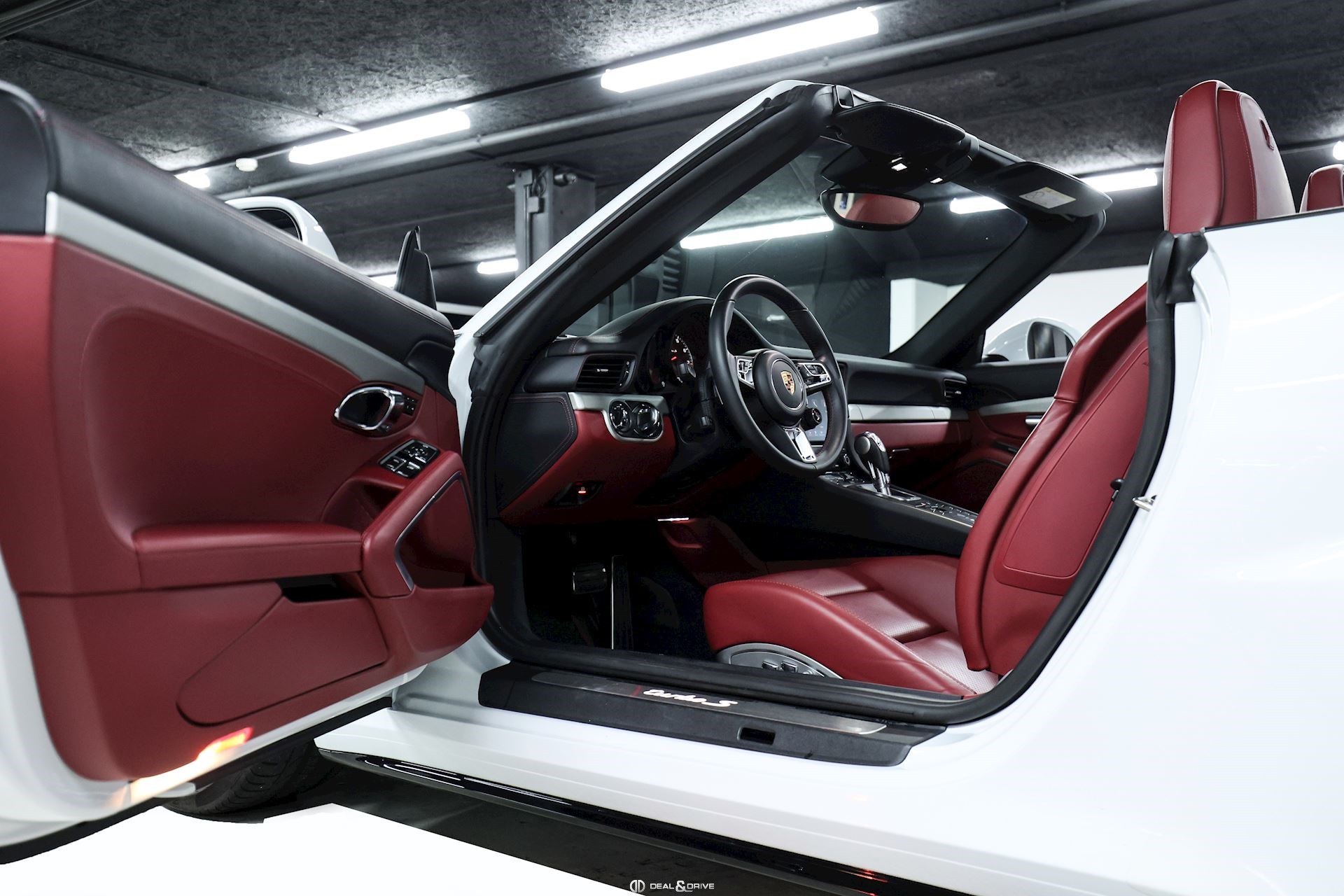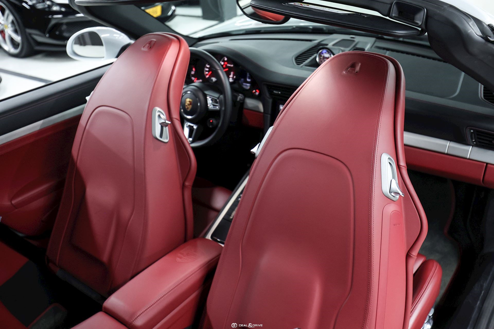 INTÉRIEUR Sellerie en cuir bi-ton en Noir et Rouge Sièges Sport adaptatifs, réglables en 18 voies avec pack mémoire pour le conducteur Dossier des sièges avant en cuir Sièges avant chauffants Appuie-lombaires électriques Volant en cuir, multifonctions Volant chauffant Volant réglable électriquement Emblème Porsche embossé sur les appuie-têtes Emblème Porsche embossé sur l’accoudoir central Fond du chronomètre Sport Chrono en Rouge Fond du compteur en Rouge Habillage de la colonne de direction en cuir Levier de vitesses en Aluminium brossé Seuils de porte en Inox, éclairés avec désignation du modèle Tapis de sol avec bordures en cuir Individual en Rouge Climatisation automatique 2 zones Surpiqûres en Rouge sur le tableau de bord Ceintures de sécurité en Noir Plafonnier Noir