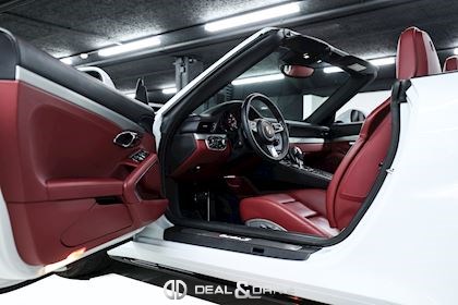 EXTÉRIEUR Capote extérieure en Noir Jantes alliage léger 20’’ Sport Classic en Noir brillant Étriers de frein en Jaune Caches moyeux Porsche en couleur Désignation du modèle sur les portes en Noir Monogramme Porsche et désignation du modèle peints en Noir Rétroviseurs extérieurs Sport Design Rétroviseurs extérieurs électriques Rétroviseurs extérieurs rabattables électriquement Rétroviseur extérieur droit avec fonction d’indexage en marche arrière Bouchon de réservoir en Aluminium Déflecteur d’air électrique