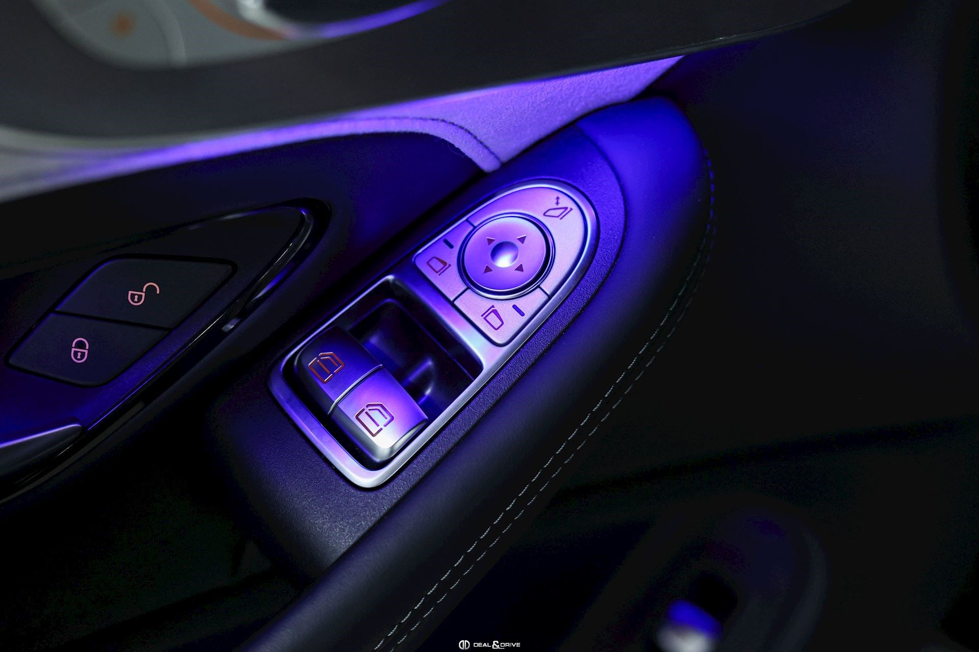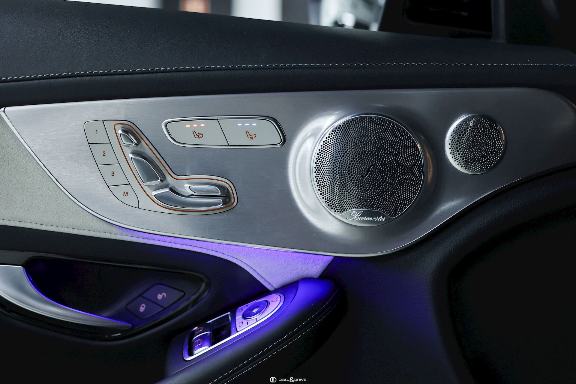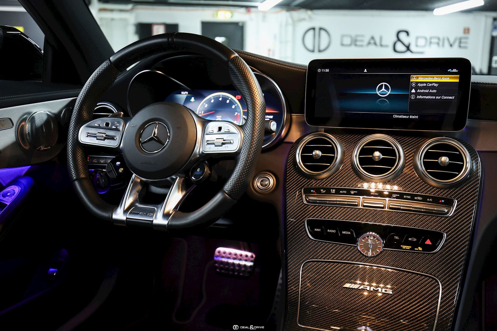 Ceinture de sécurité en Noir Seuils de porte en Aluminium, éclairés, AMG Accoudoir central avant Plafonnier Noir Pédalier en Acier Inox Design Sport