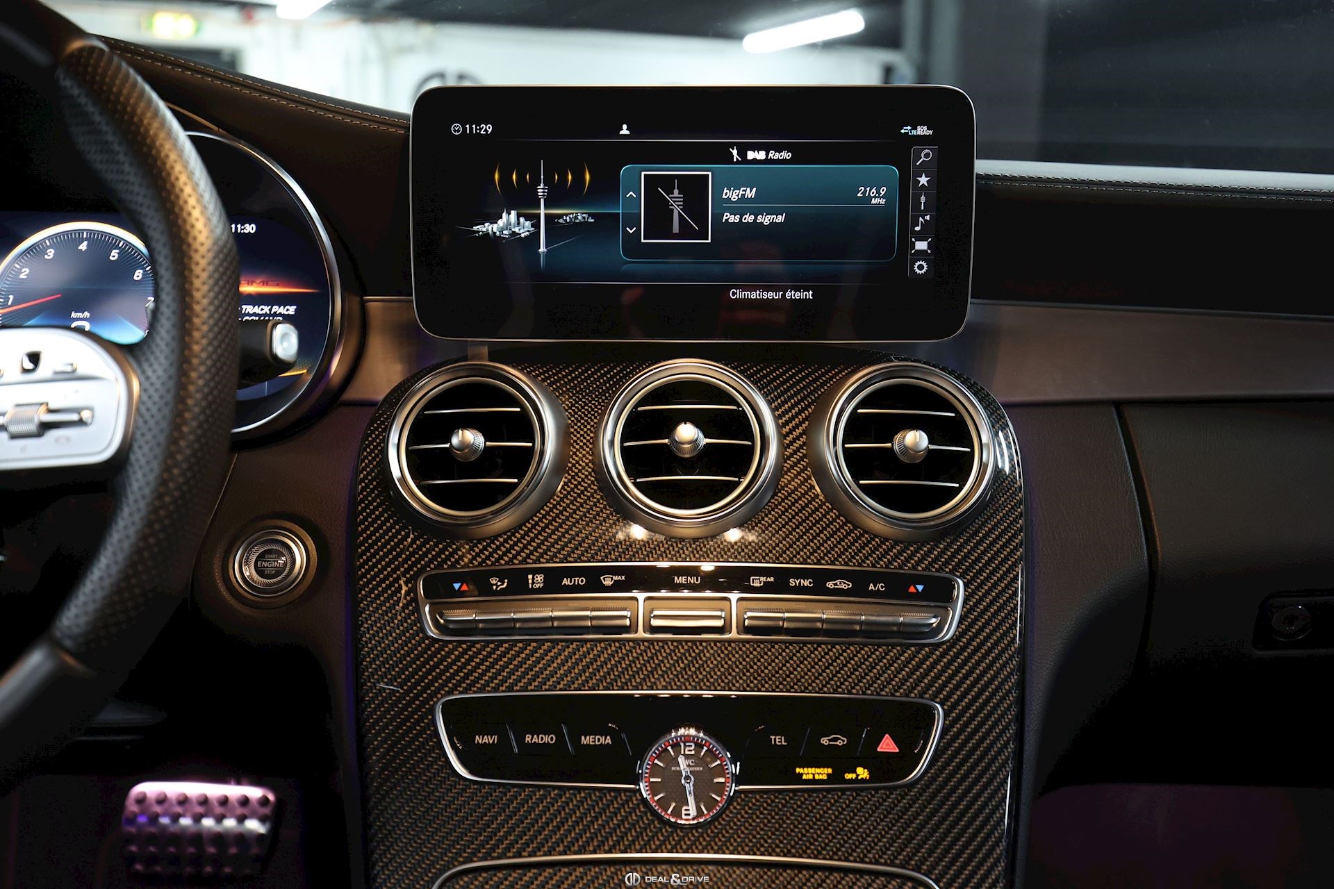 L6J Volant AMG Performance en cuir Nappa, multifonctions avec touches au volant U22 Appuie-lombaires électriques U34 Tableau de bord en similicuir Artico Nappa Noir 246 Horloge analogique ICW 580 Climatisation automatique 2 zones THERMATIC