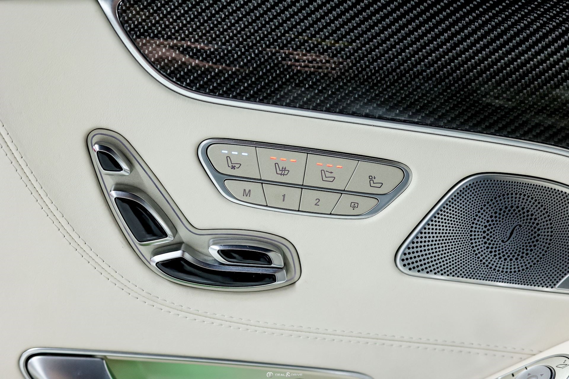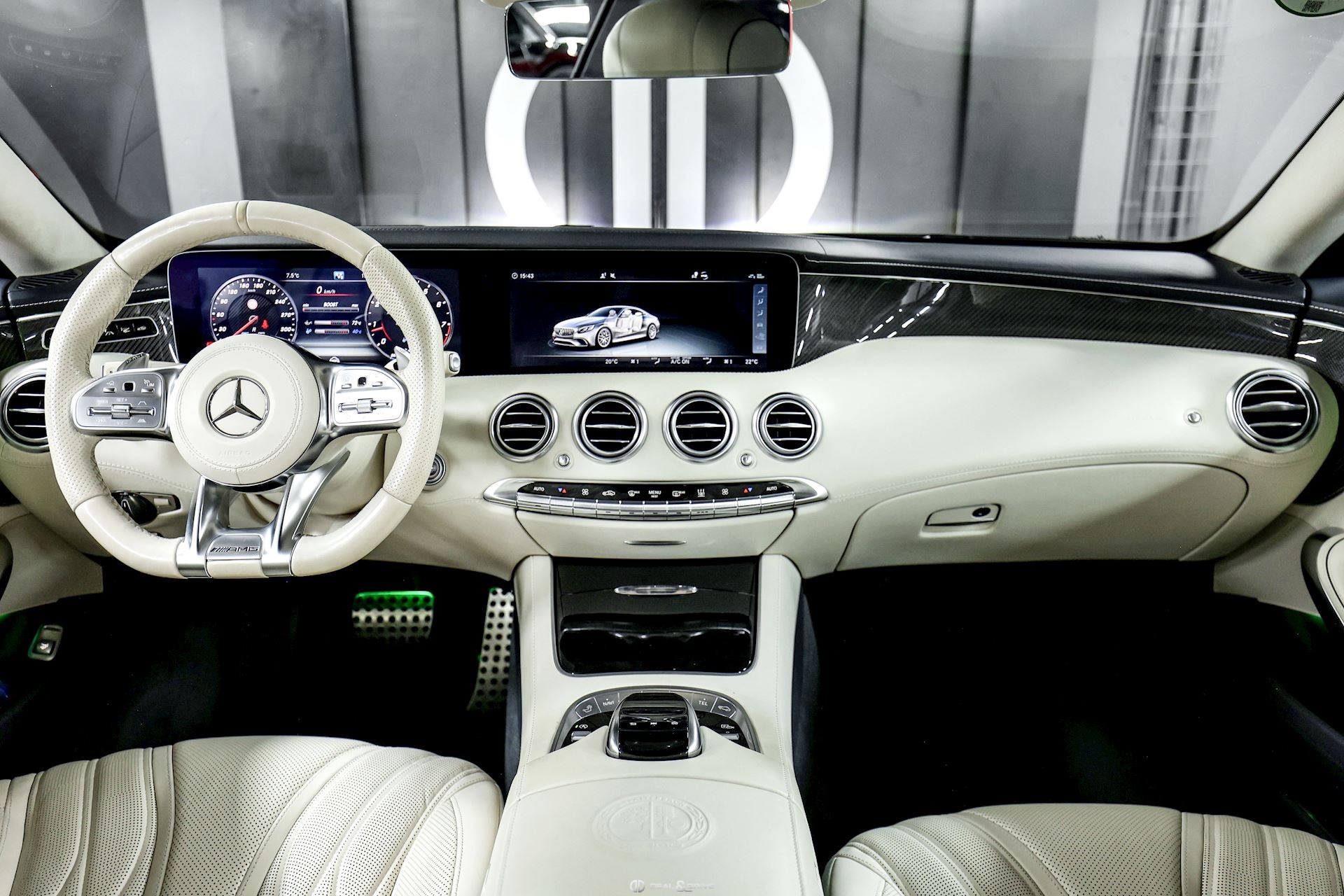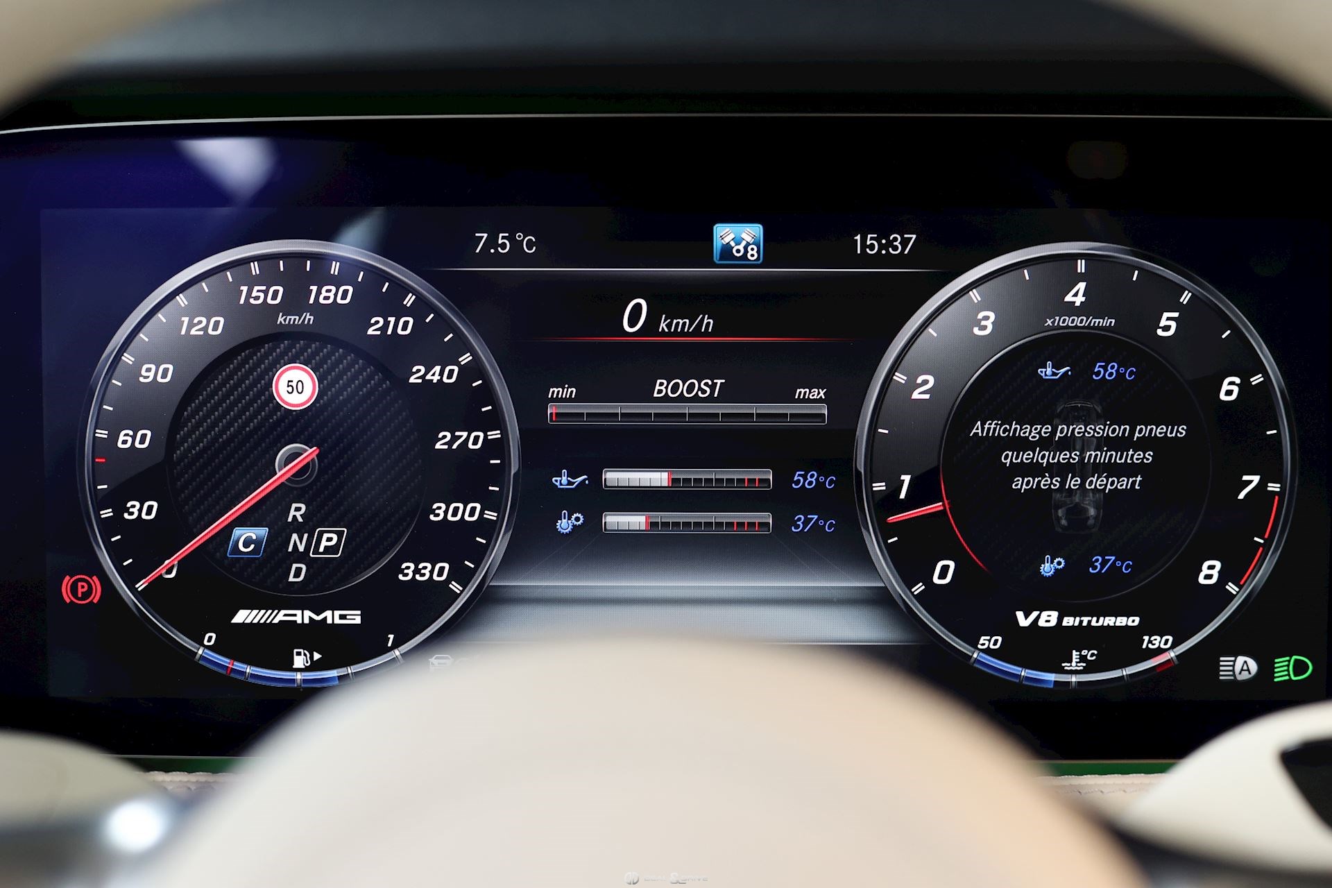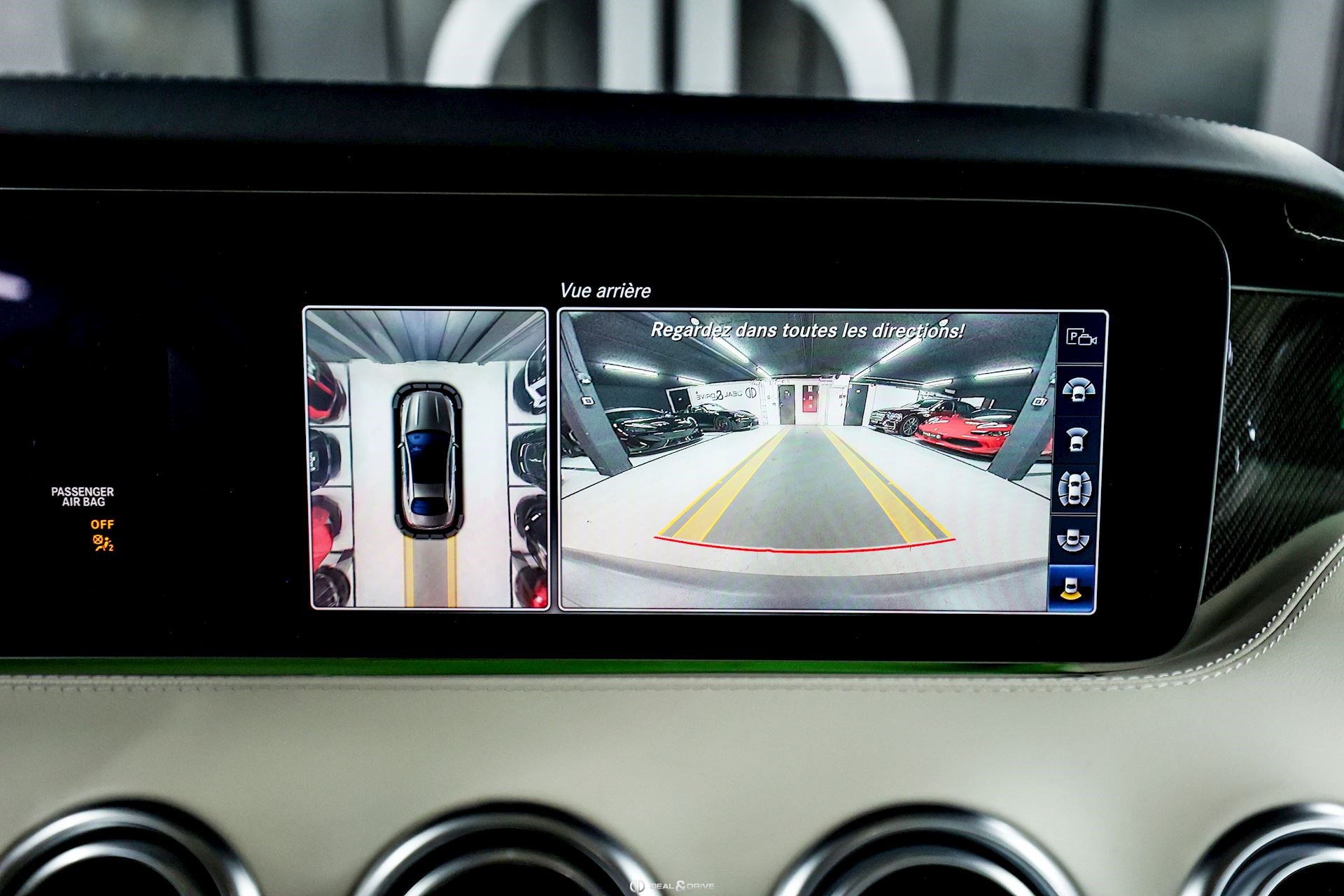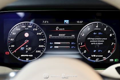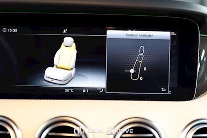 INTÉRIEUR Inserts en Carbone et Noir brillant Volant AMG Performance en cuir, multifonctions Volant réglable électriquement Rideau pare-soleil sur la lunette arrière Sièges avant Sport Sièges avant électriques Sièges arrière chauffants Sièges avant ventilés Appuie-lombaires électriques Tapis de sol AMG Exclusive Plafonnier Designo Dinamica Climatisation automatique Confort 2 zones Thermotronic Seuils de porte en Aluminium, éclairés, AMG Protection du seuil de chargement en Inox Pédalier en Acier inox Design Sport Prétensionneur de ceinture de sécurité Support à boissons avant double