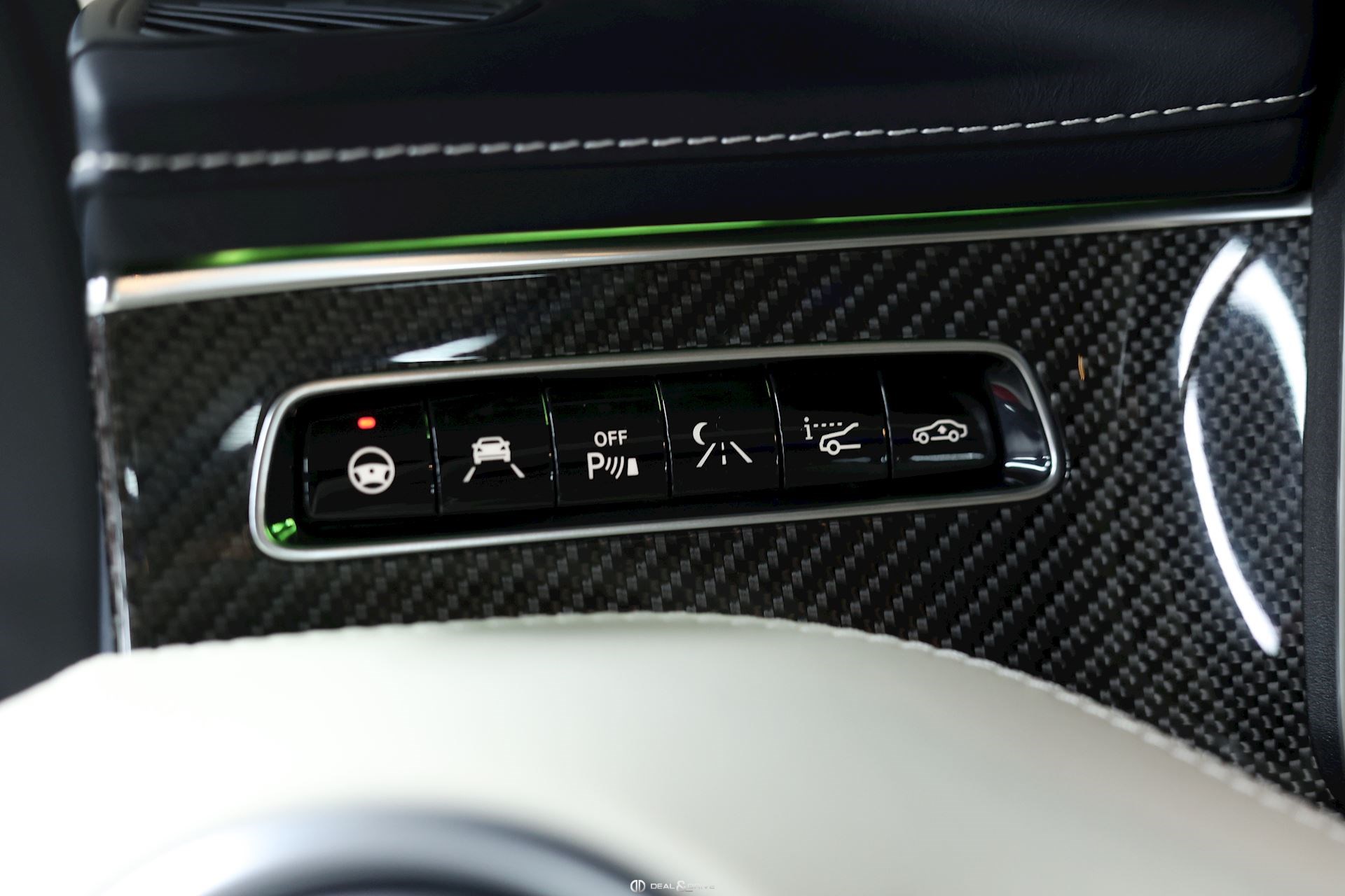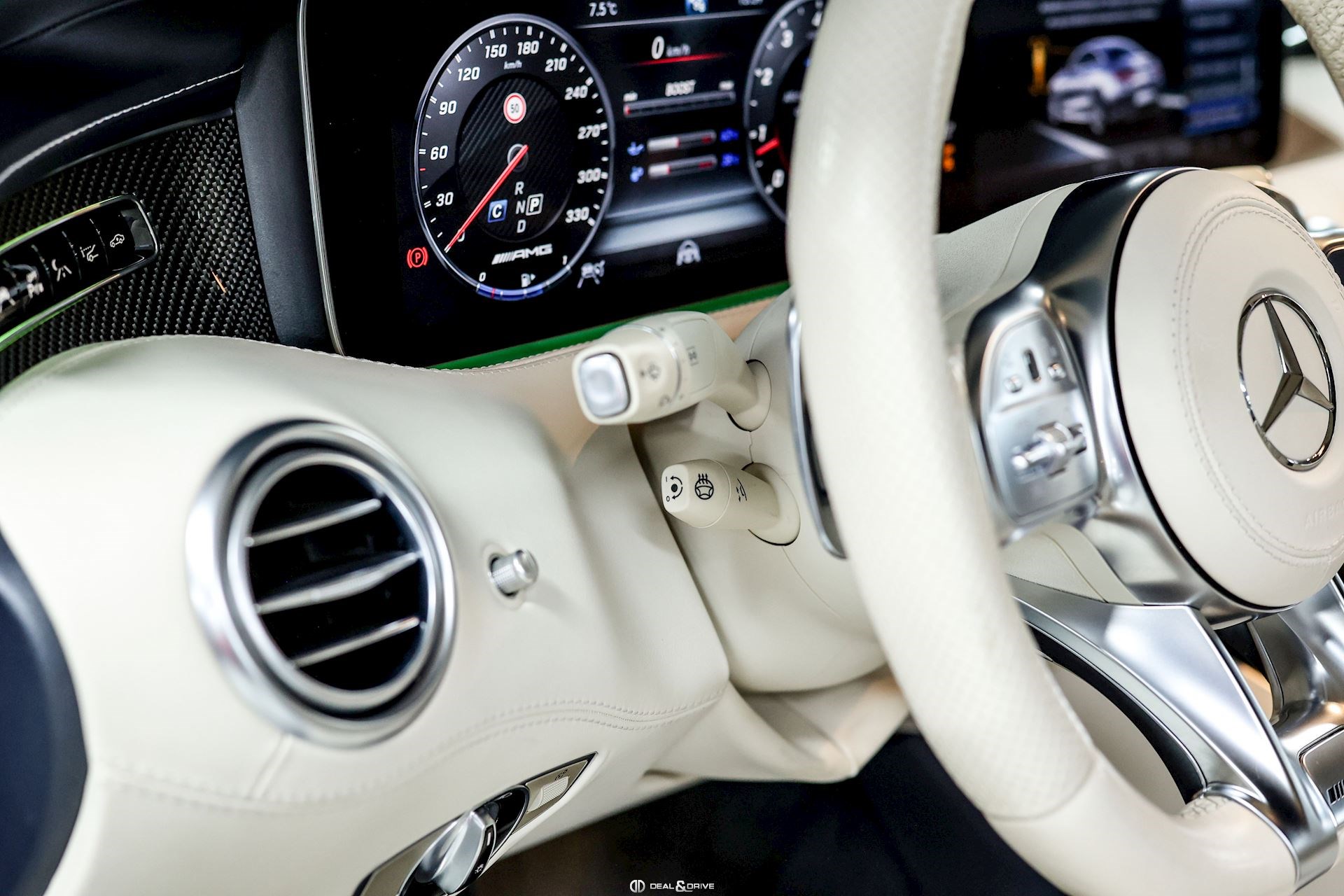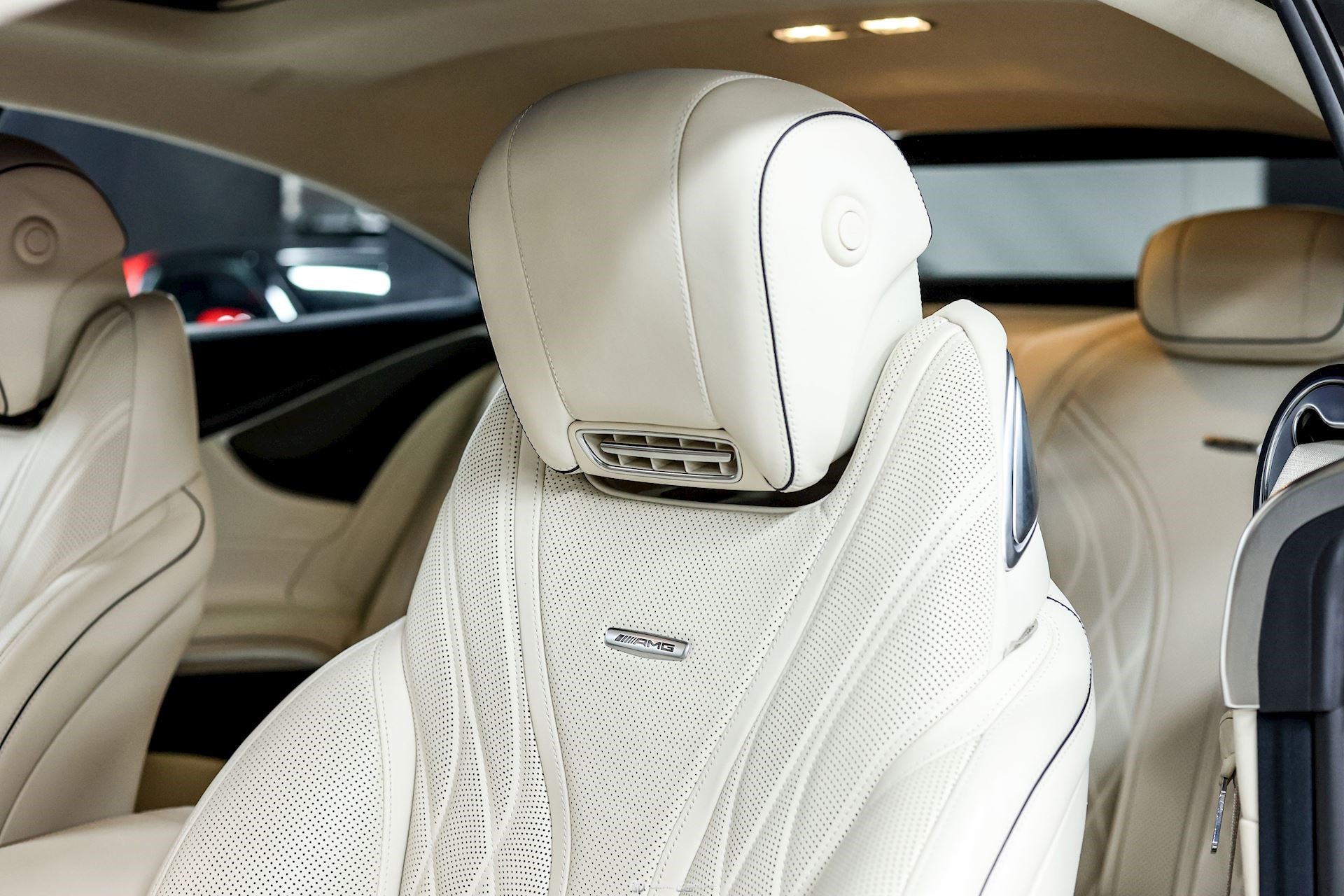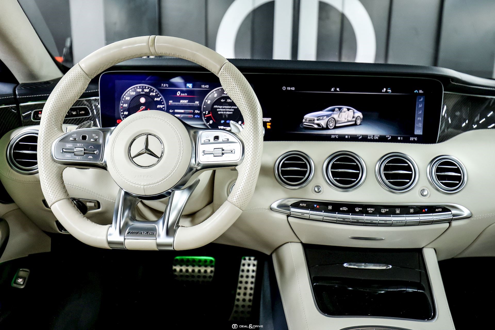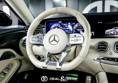 INTÉRIEUR Inserts en Carbone et Noir brillant Volant AMG Performance en cuir, multifonctions Volant réglable électriquement Rideau pare-soleil sur la lunette arrière Sièges avant Sport Sièges avant électriques Sièges arrière chauffants Sièges avant ventilés Appuie-lombaires électriques Tapis de sol AMG Exclusive Plafonnier Designo Dinamica Climatisation automatique Confort 2 zones Thermotronic Seuils de porte en Aluminium, éclairés, AMG Protection du seuil de chargement en Inox Pédalier en Acier inox Design Sport Prétensionneur de ceinture de sécurité Support à boissons avant double