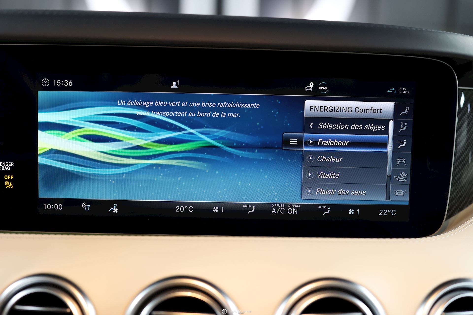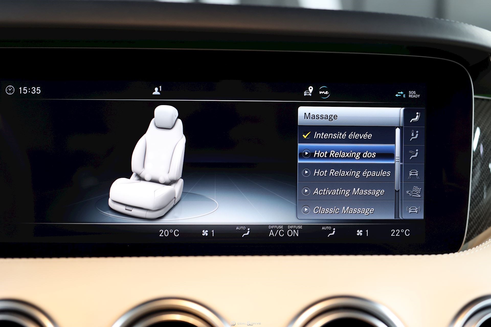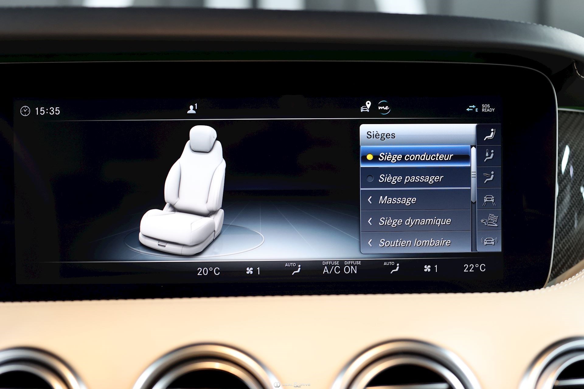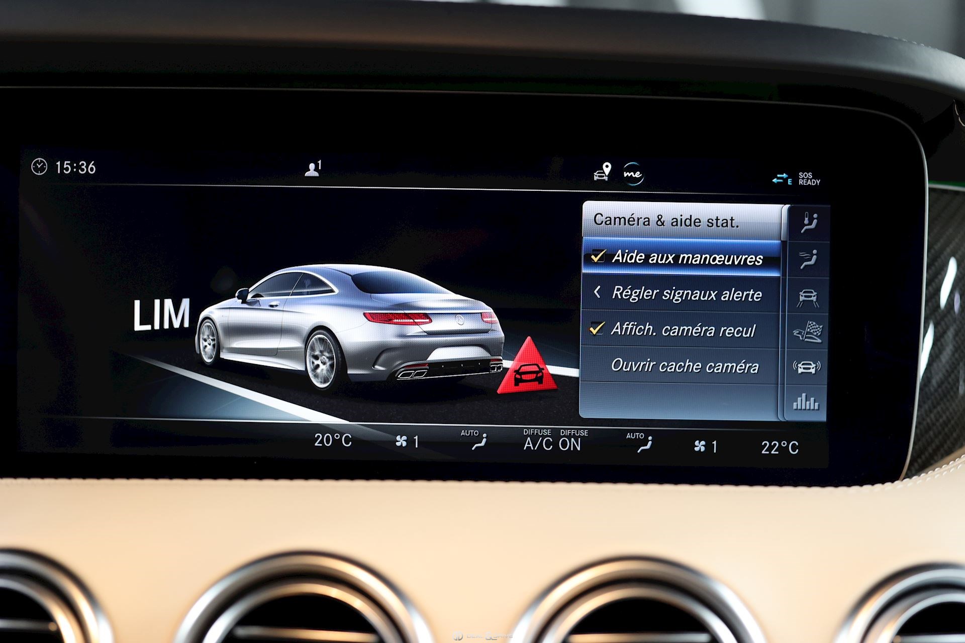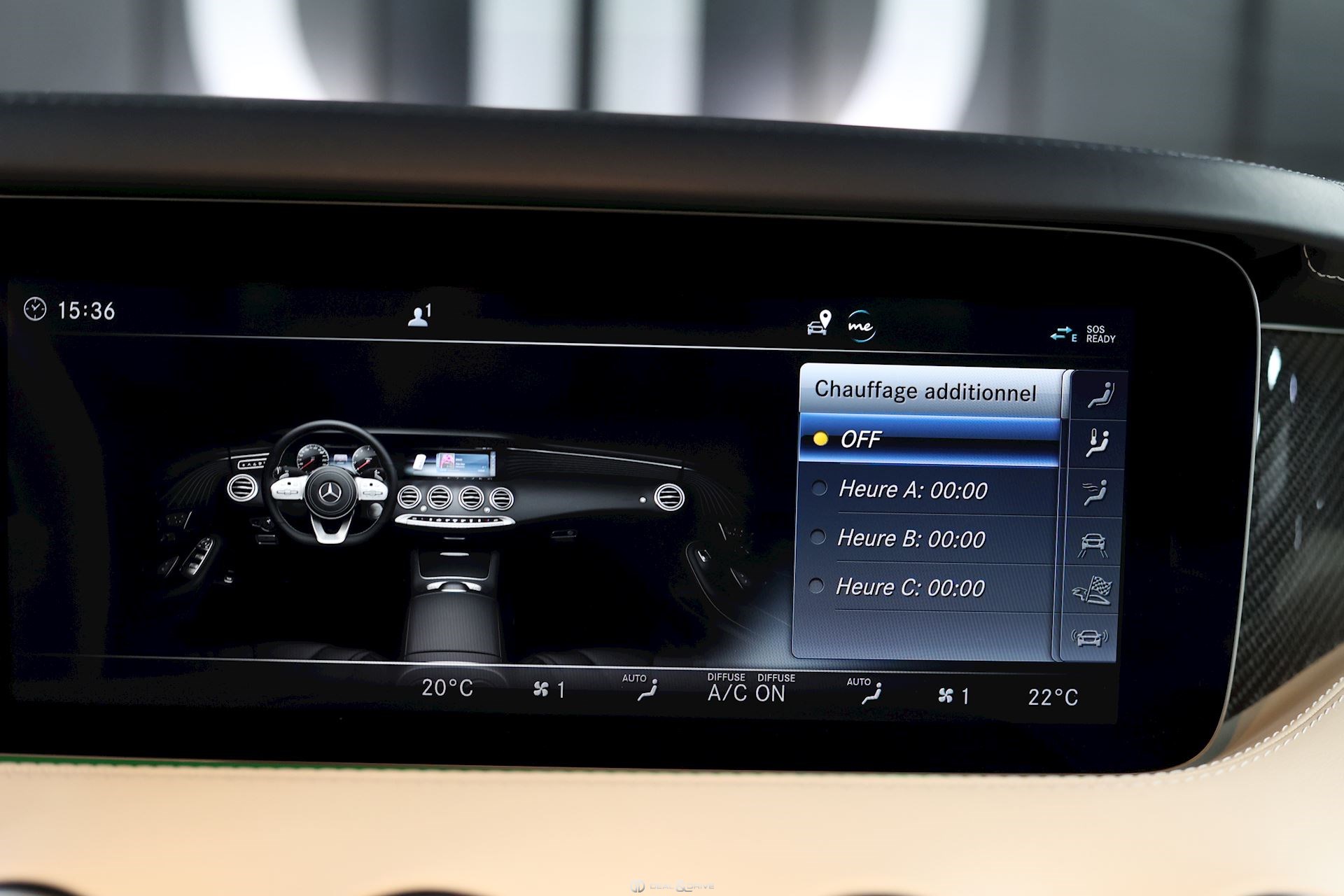 CONFORT, SYSTÈME D'ASSISTANCE Affichage tête haute Assistant de fermeture des portes Soft Close Chauffage auxiliaire Chauffage zone tête AIRSCARF Energizing commande confort Assistant de vision nocturne Night Vision Essuie-glaces adaptatifs Magic Vision Control, chauffants Système de contrôle de la pression des pneus Aide au démarrage en côte Système d'appel d'urgence Assistant de freinage Plus Capteur de somnolence Attention-Assist Système de reconnaissance des panneaux de signalisation